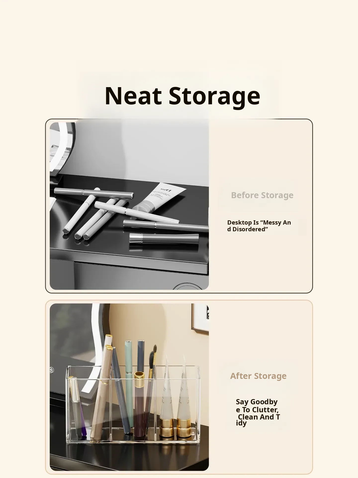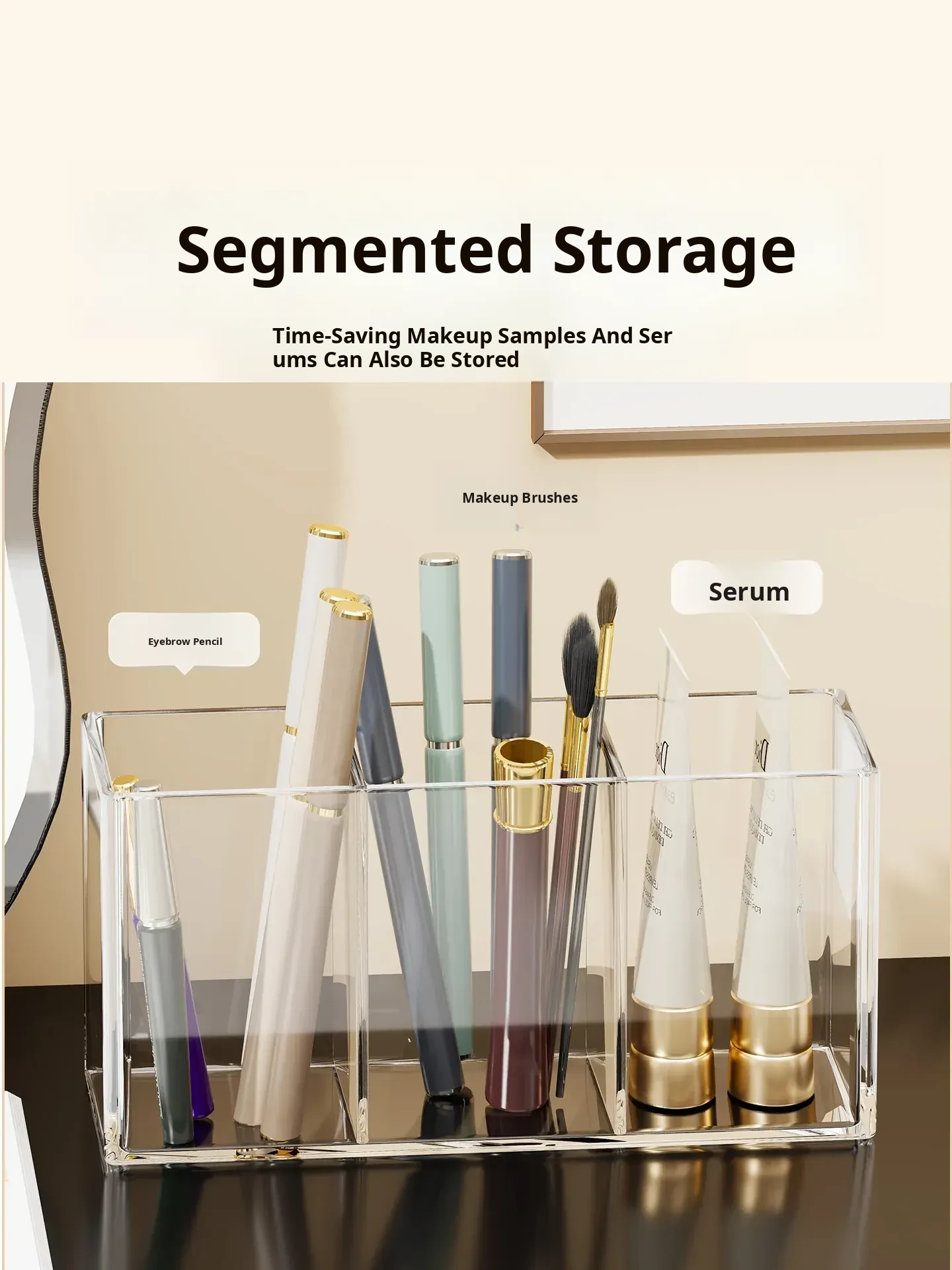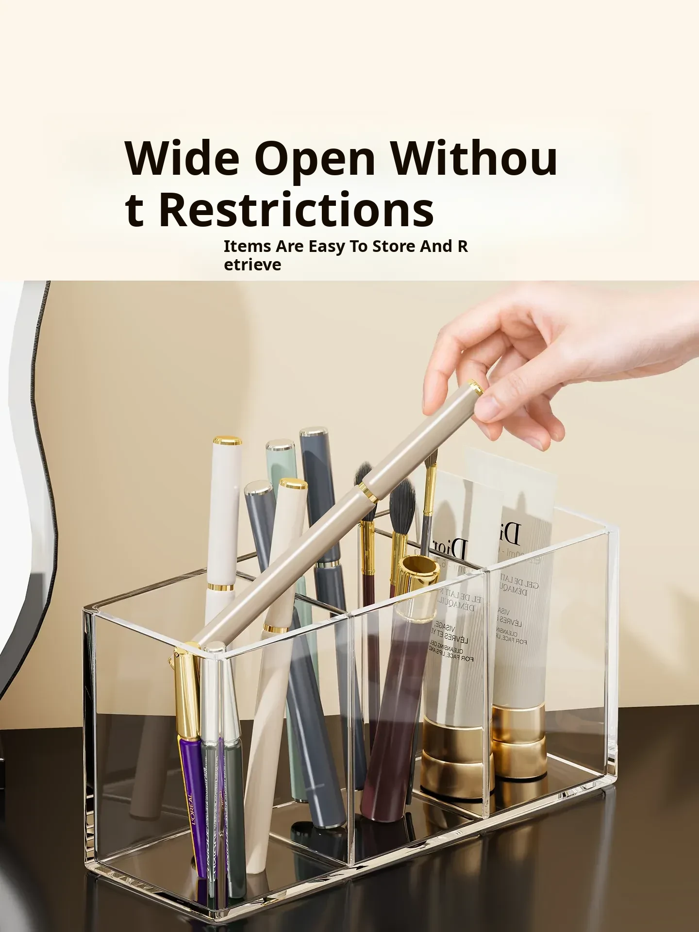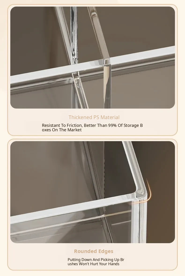 Transparent Makeup Brush Organizer with Dividers - Stylish Desktop Storage for Cosmetics, Lipsticks, Eyeliners, and Combs - Keep Your Beauty Essentials Neatly Arranged
