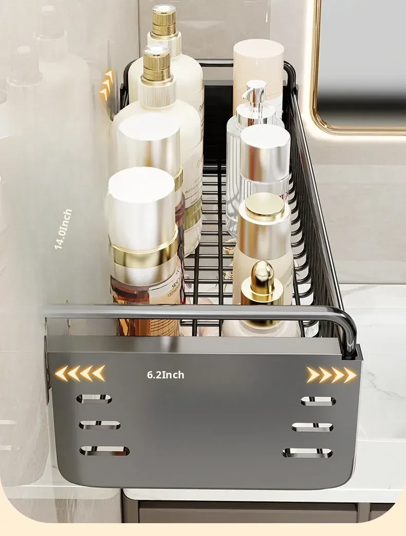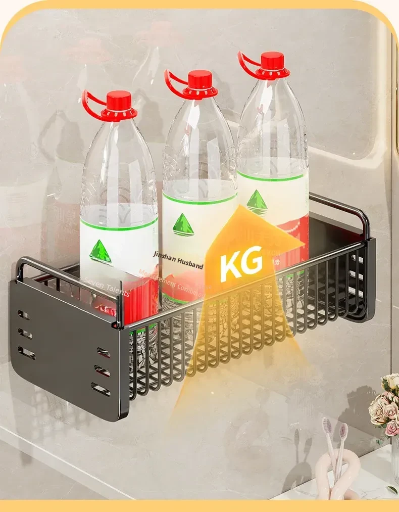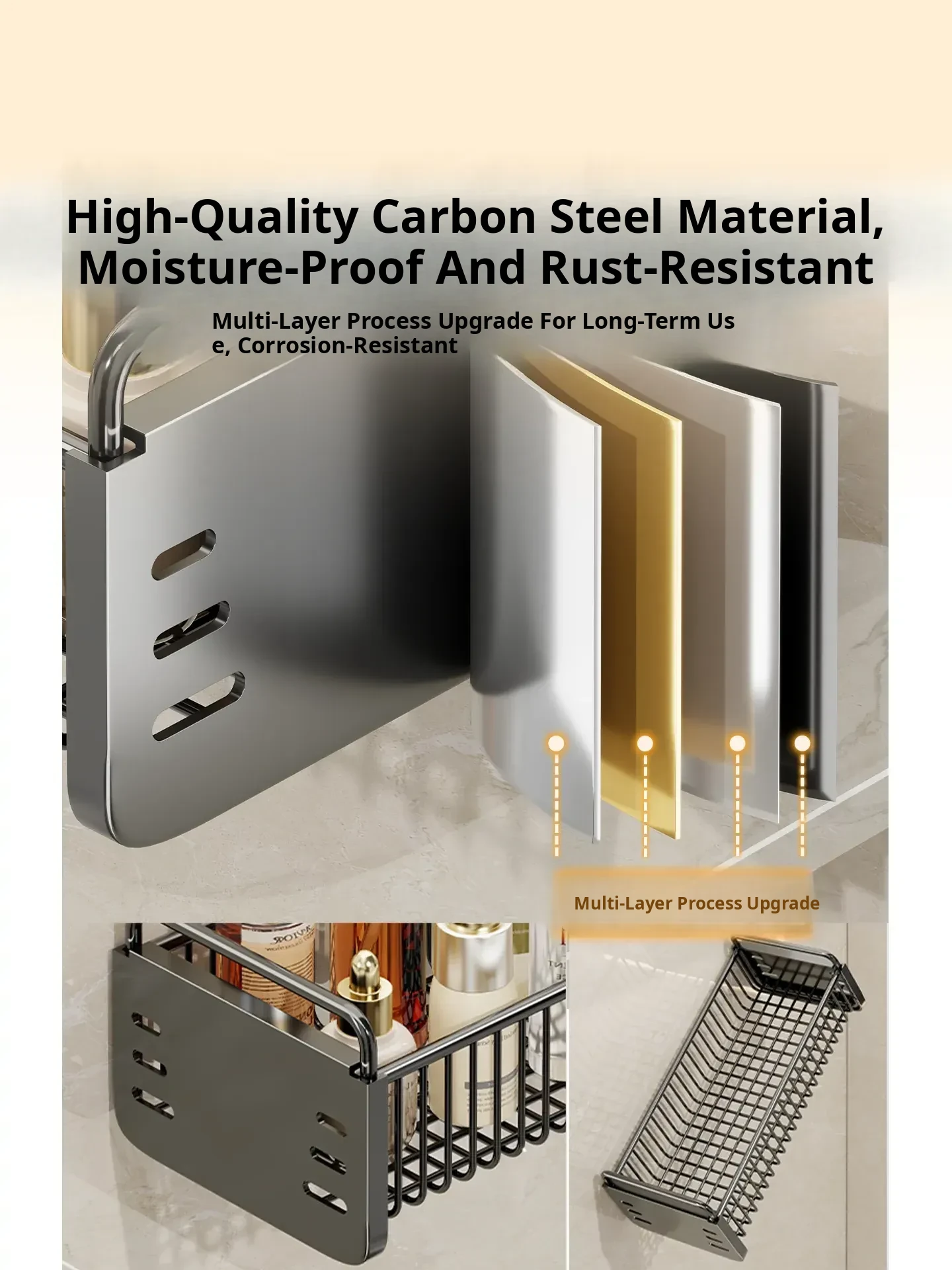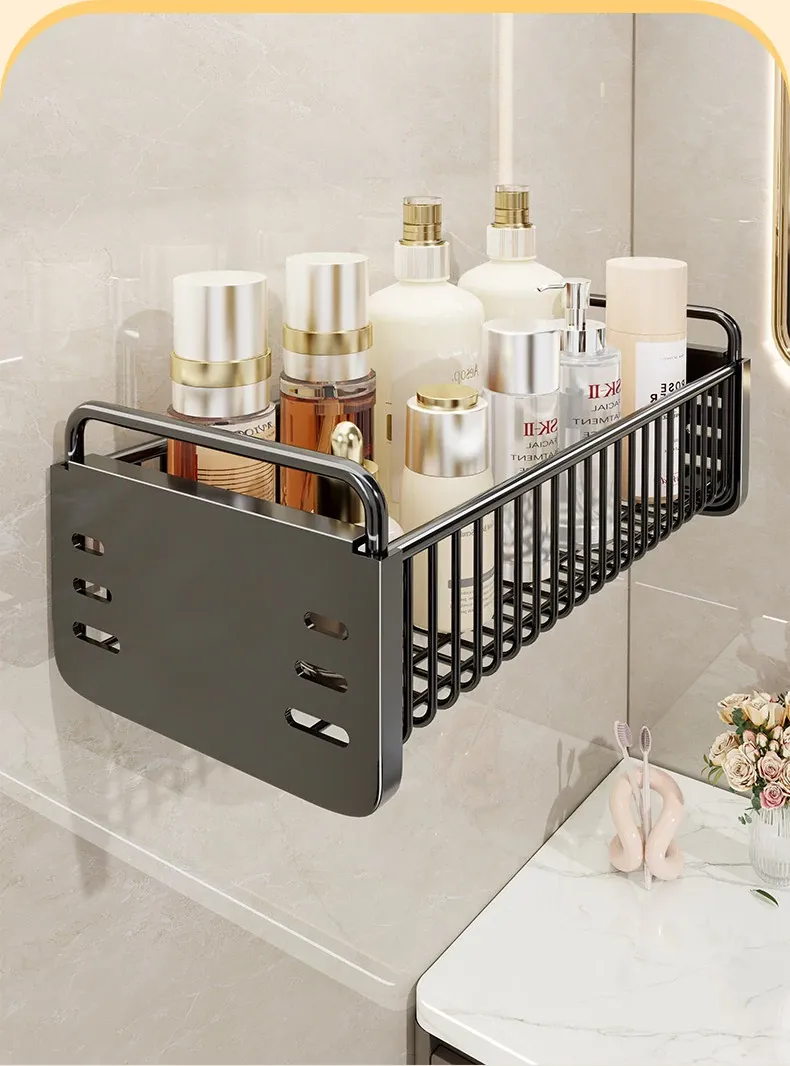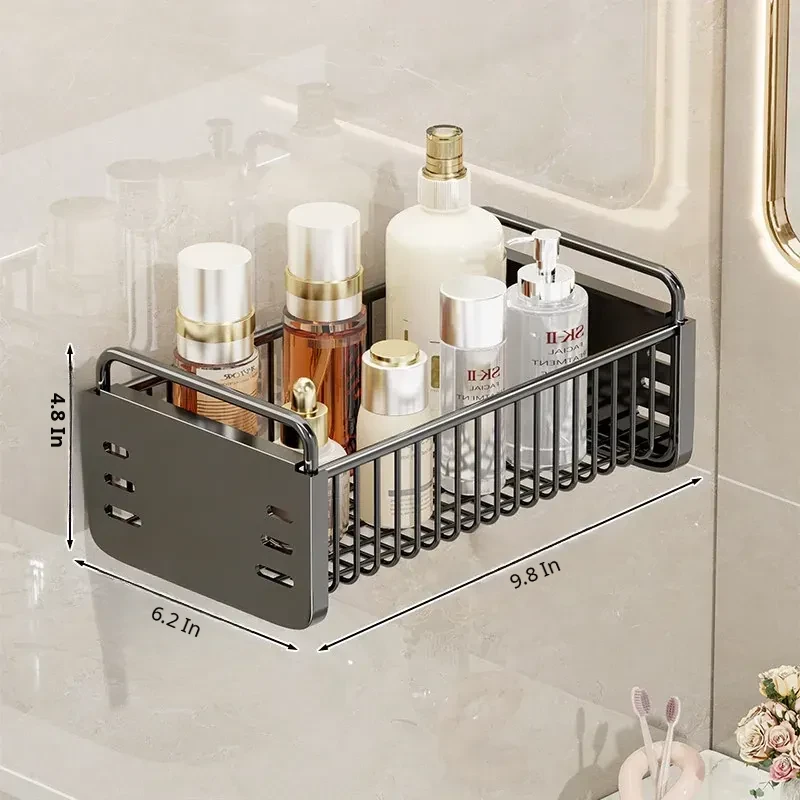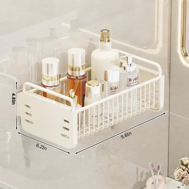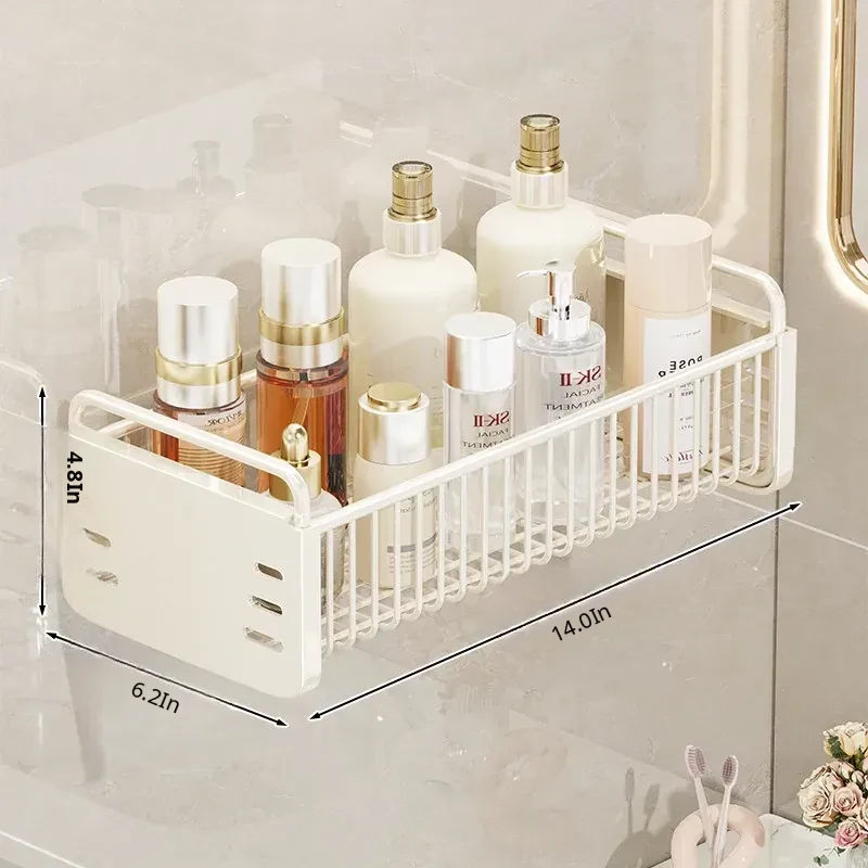 Wall-Mounted Bathroom Storage Shelf - No Drill Organizer for Sink Area, Perfect for Holding Face Wash, Masks, and Toiletries, Space-Saving Solution for Your Restroom!