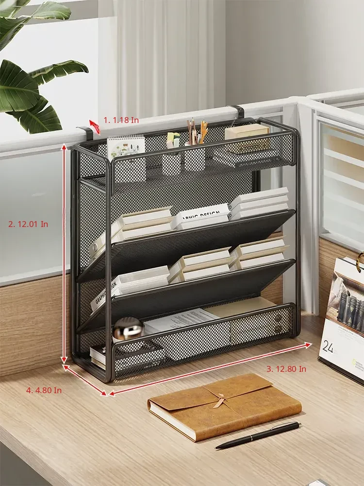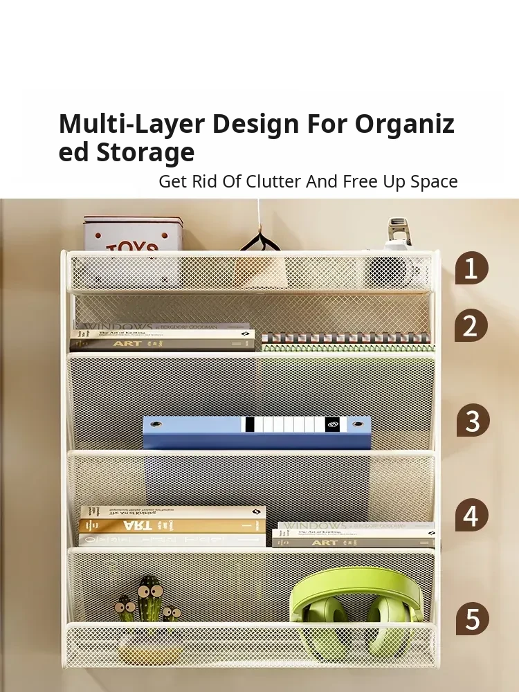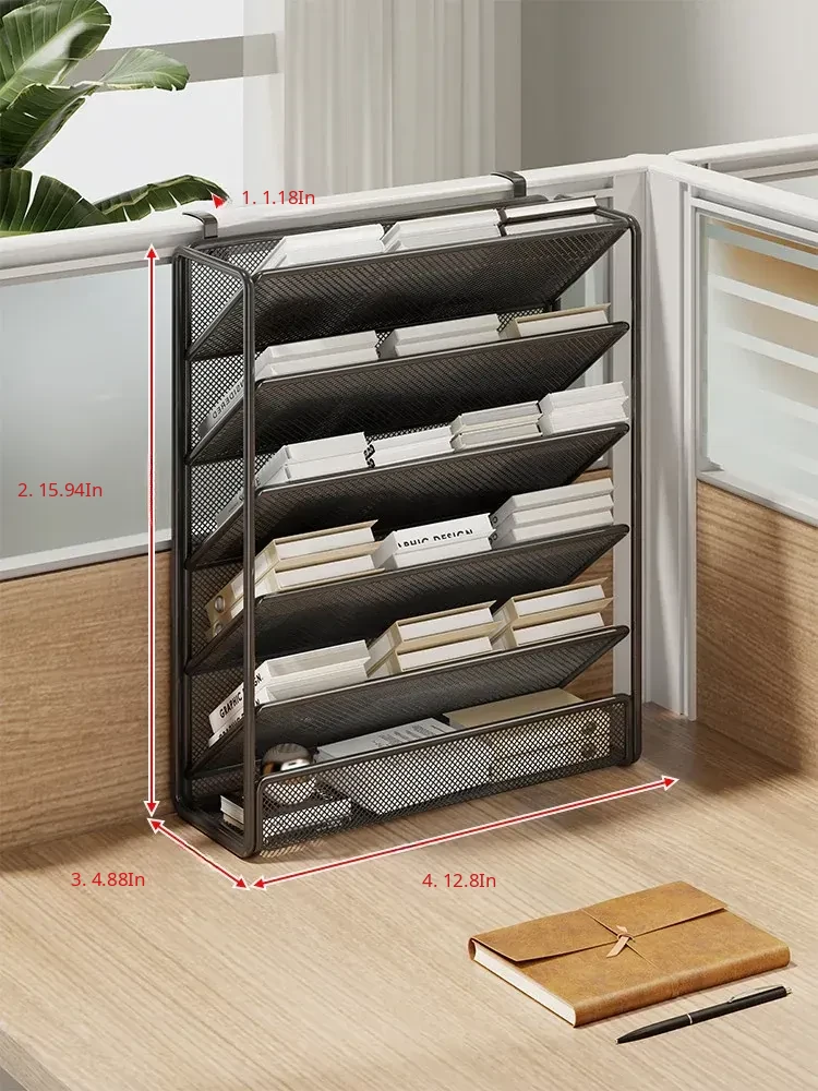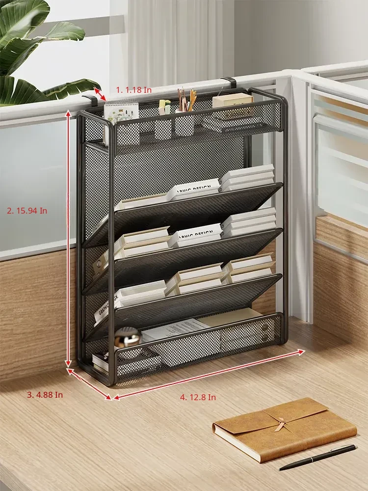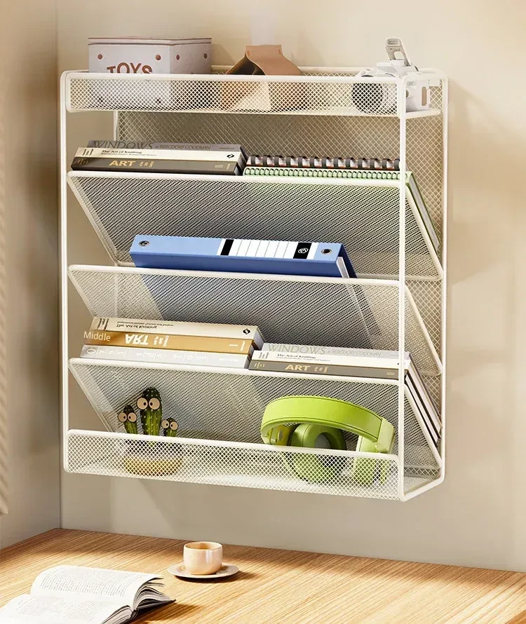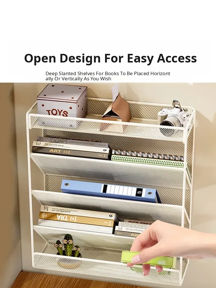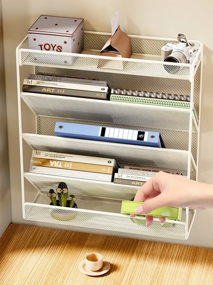 Wall-Mounted Book Storage Rack - Multi-Layer Metal A4 & A3 File Organizer for Documents and Archives - Stylish Iron Design for Efficient Space Saving