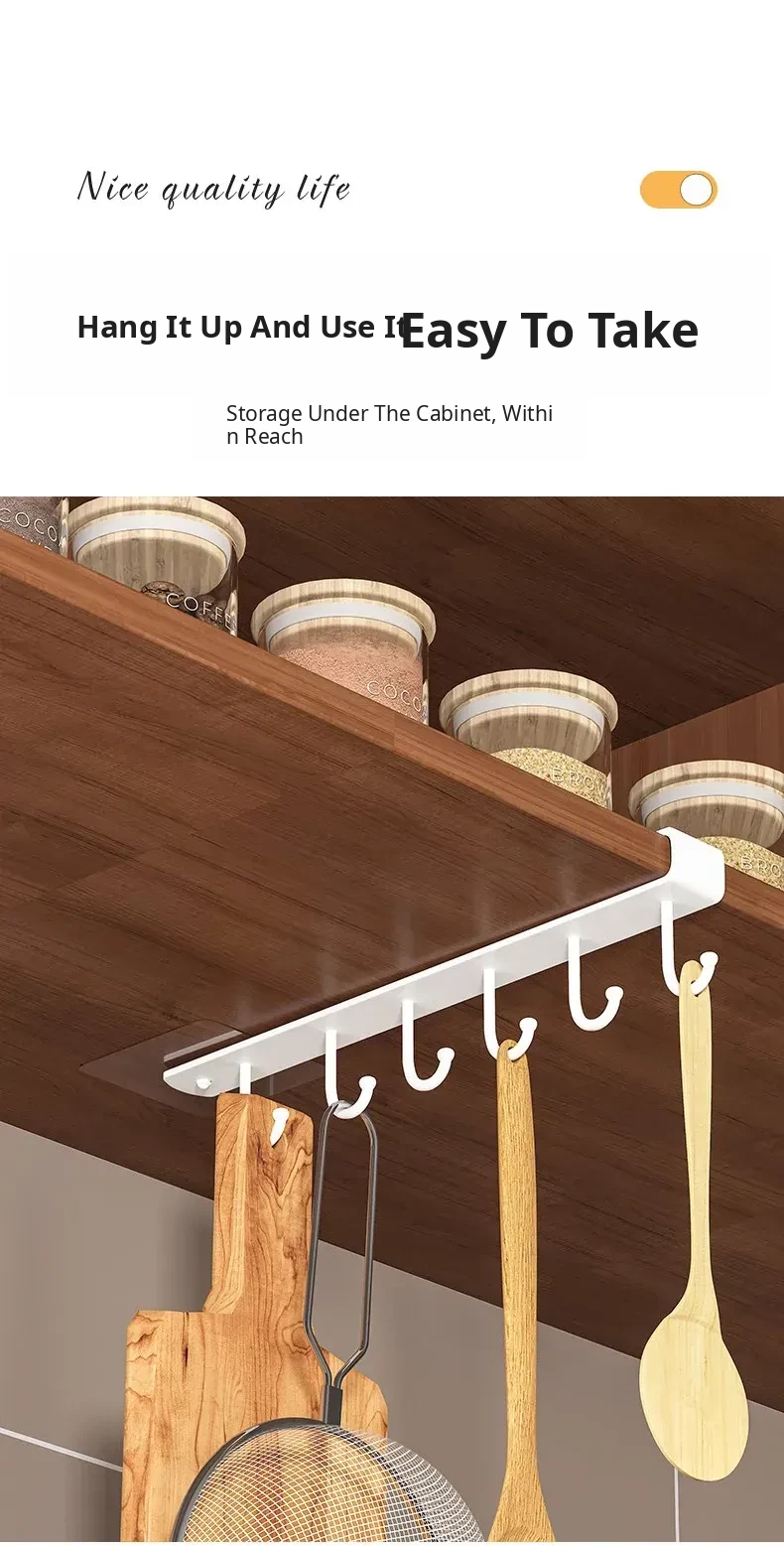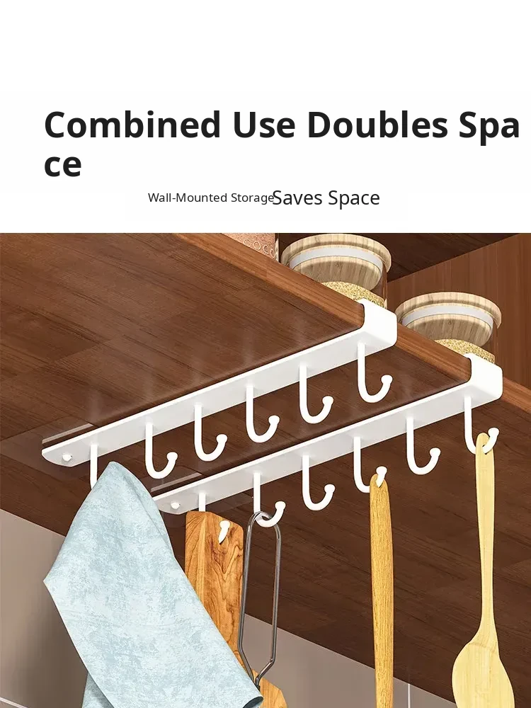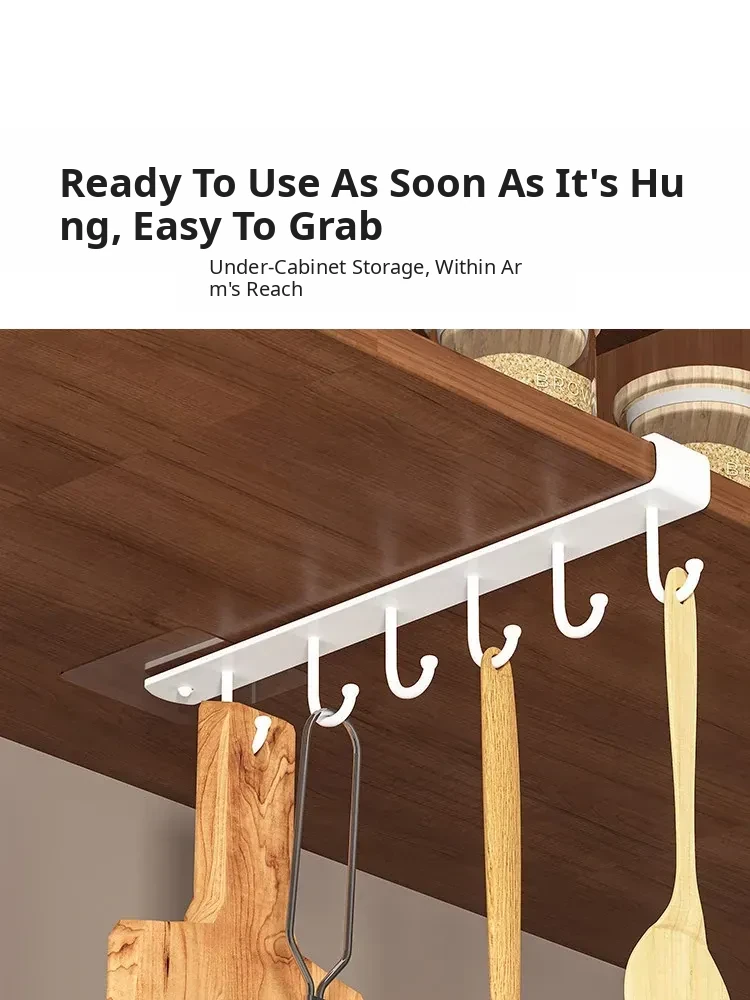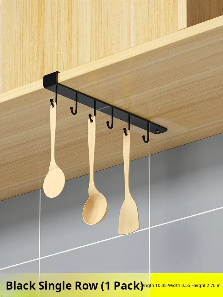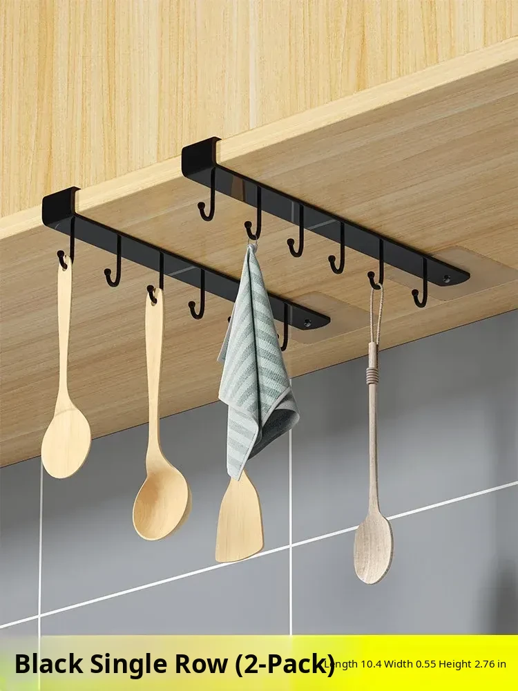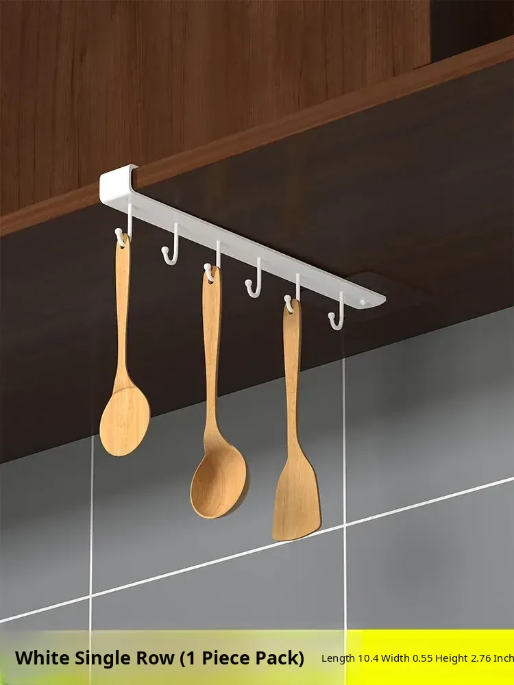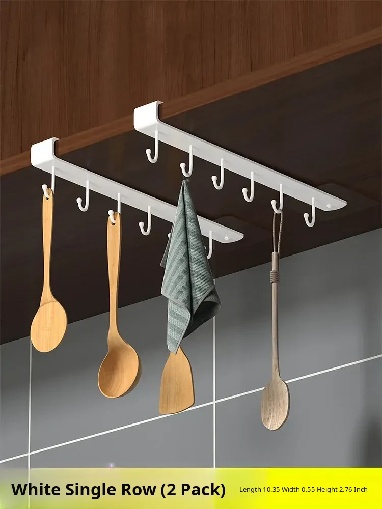 Wall-Mounted Cabinet Hooks for Kitchen Organization - No Drill Required Pot, Spatula & Spoon Rack for Door Storage Solutions