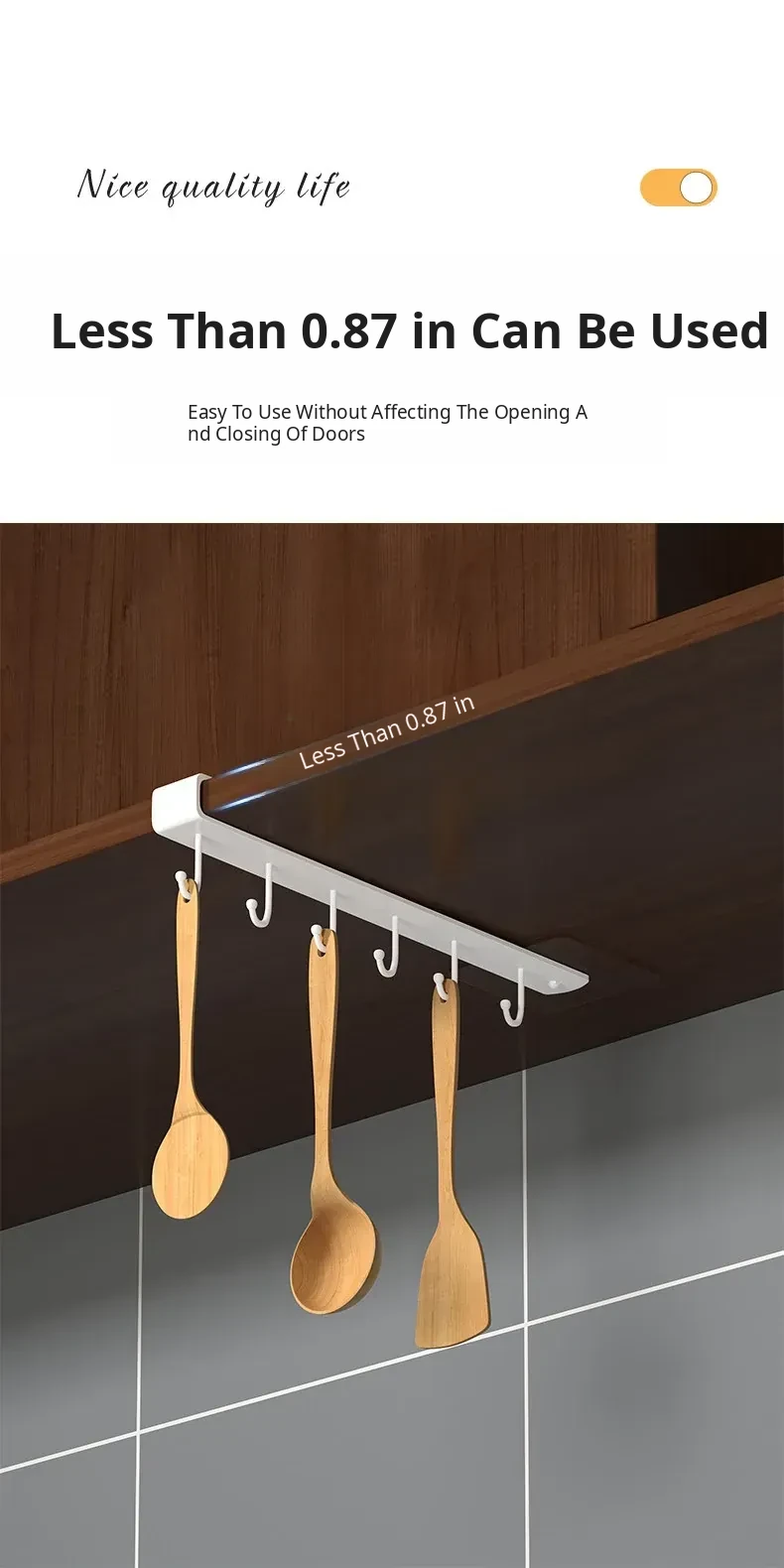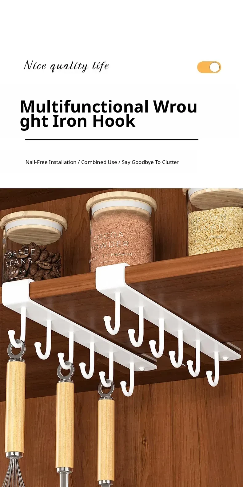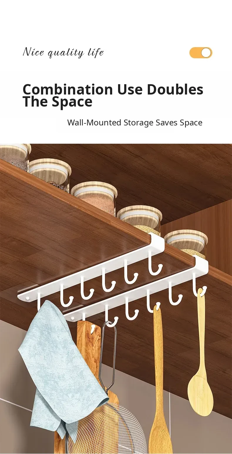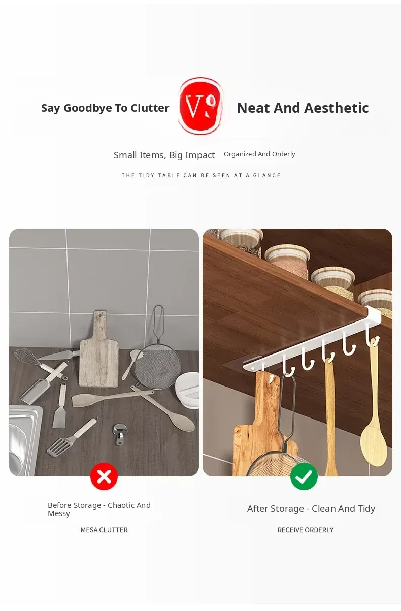 Wall-Mounted Cabinet Hooks for Kitchen Organization - No Drill Required Pot, Spatula & Spoon Rack for Door Storage Solutions