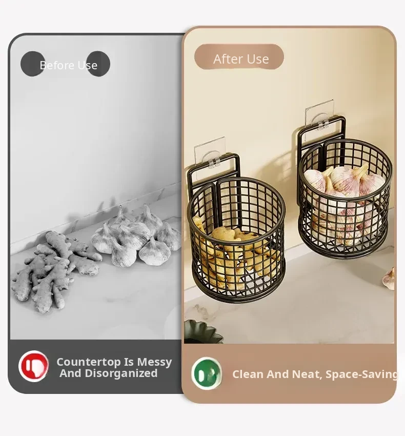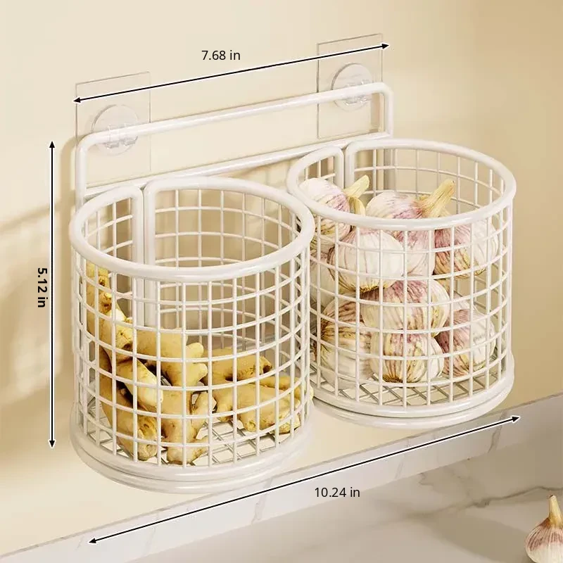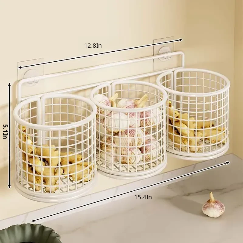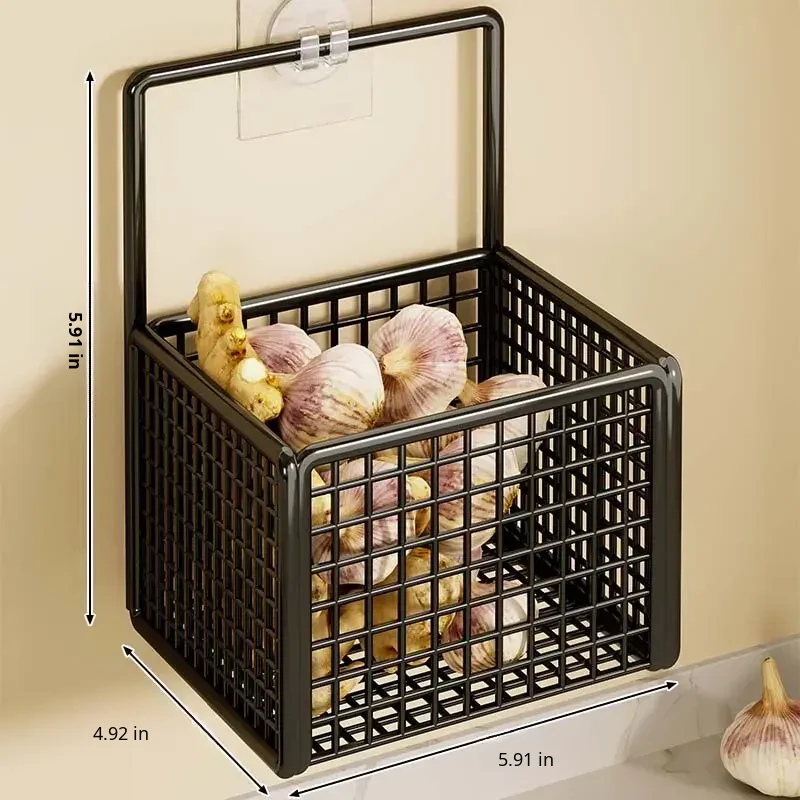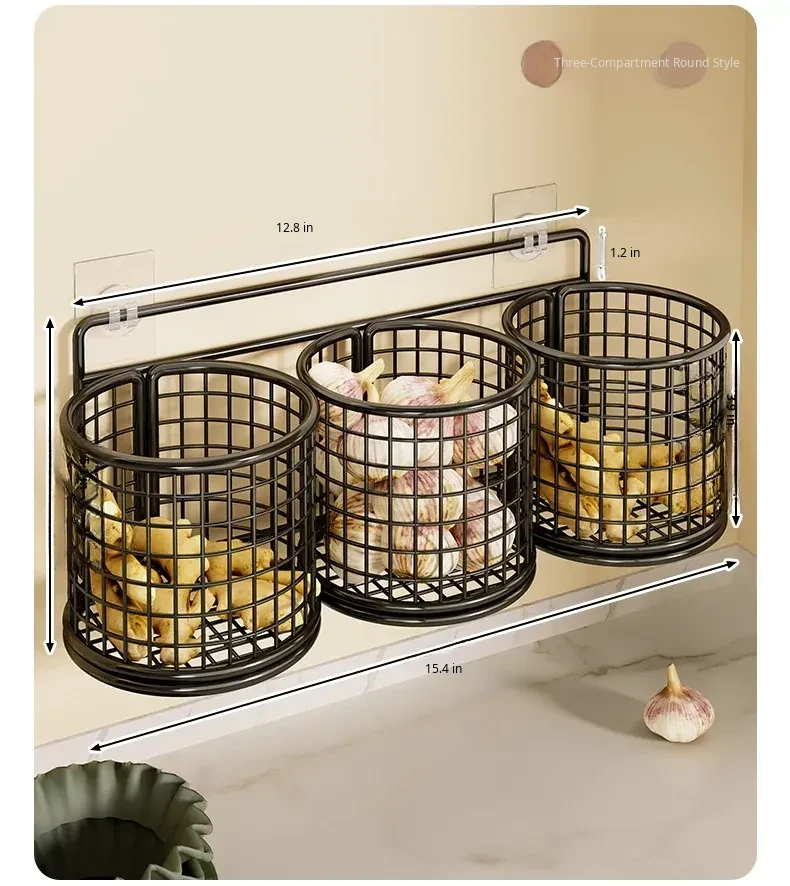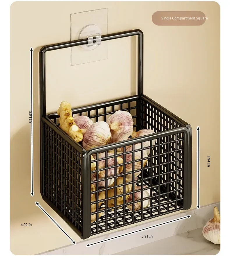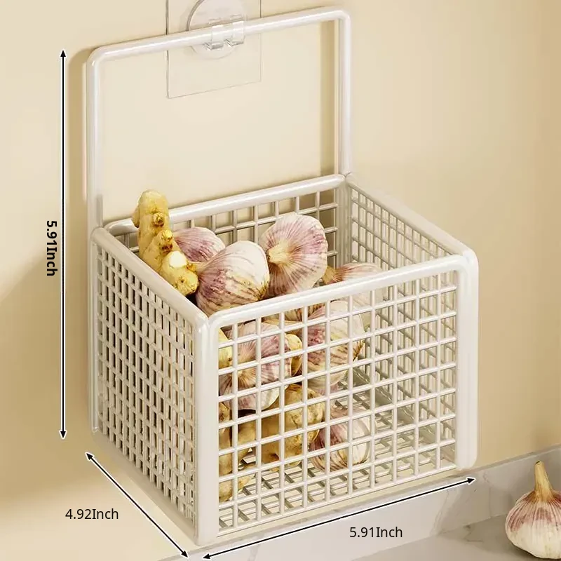 Wall-Mounted Garlic, Ginger, and Scallion Storage Box - No Drilling Required! Versatile Hanging Rack for Chili Peppers and Kitchen Organization