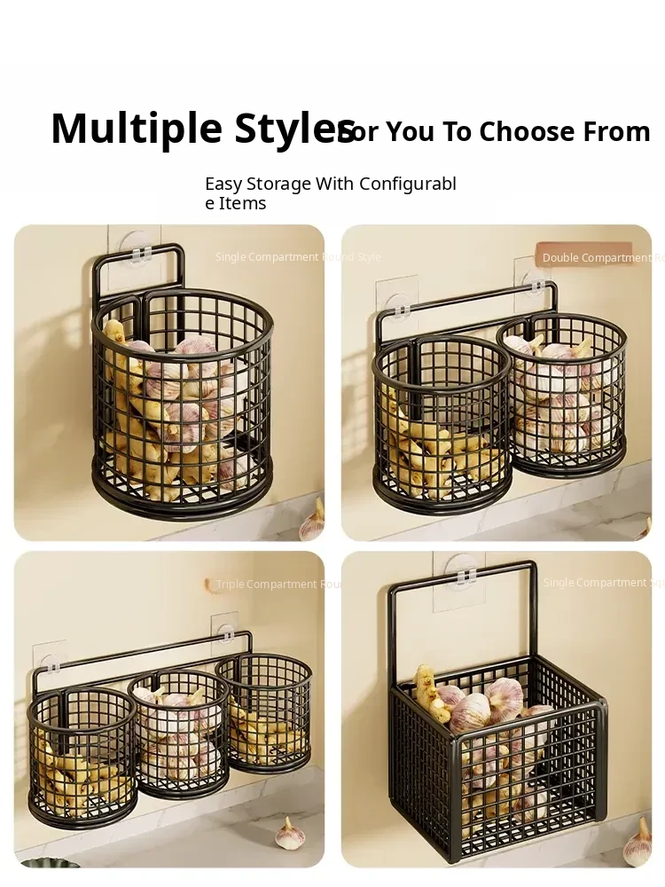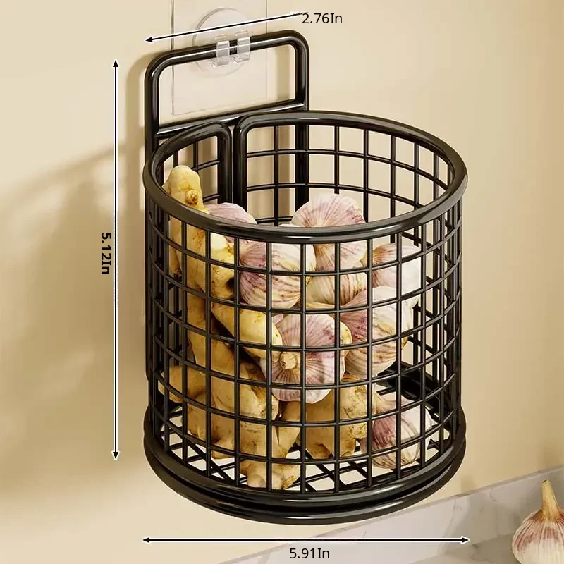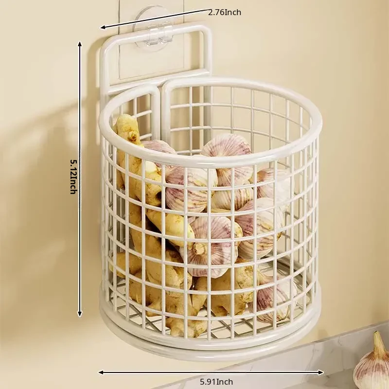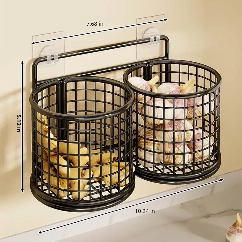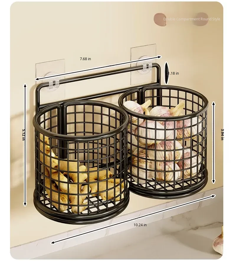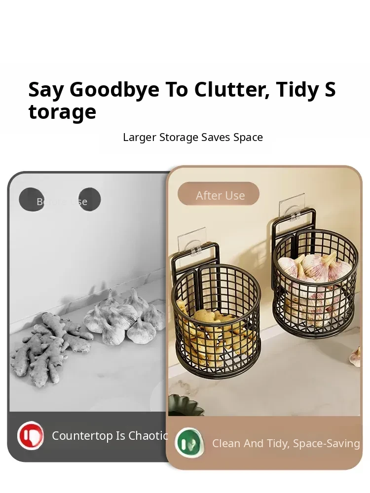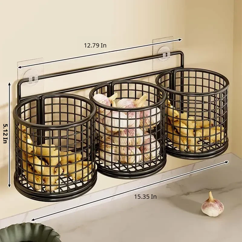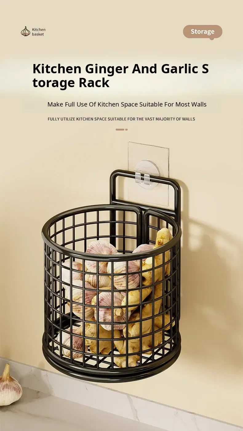 Wall-Mounted Garlic, Ginger, and Scallion Storage Box - No Drilling Required! Versatile Hanging Rack for Chili Peppers and Kitchen Organization