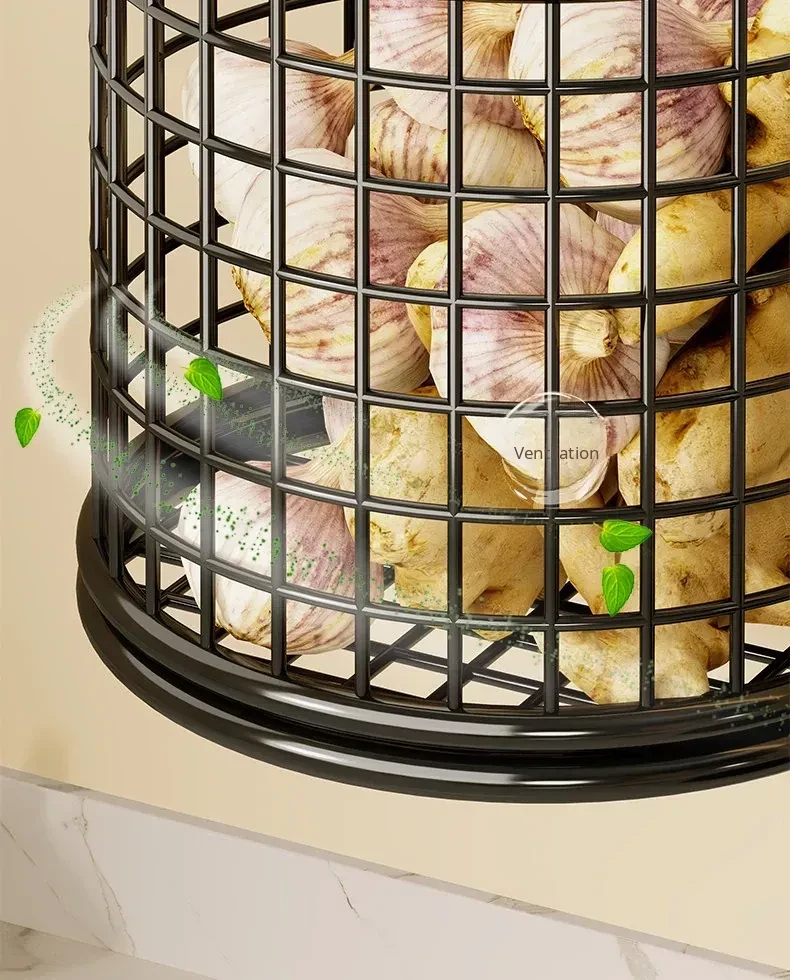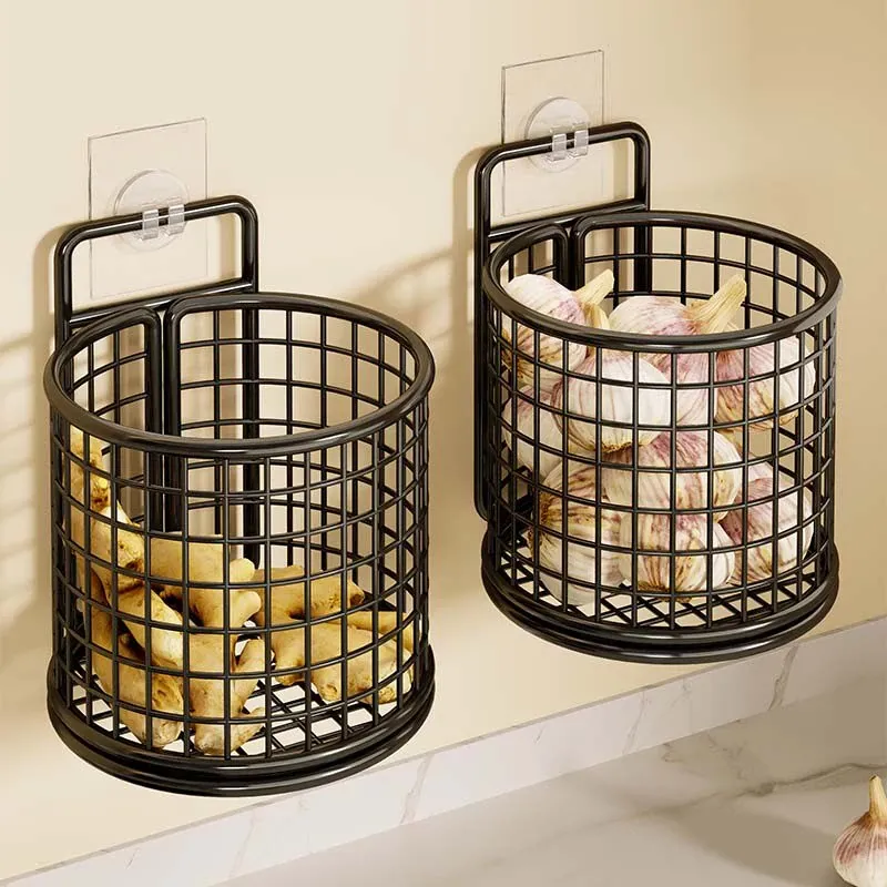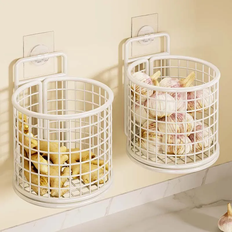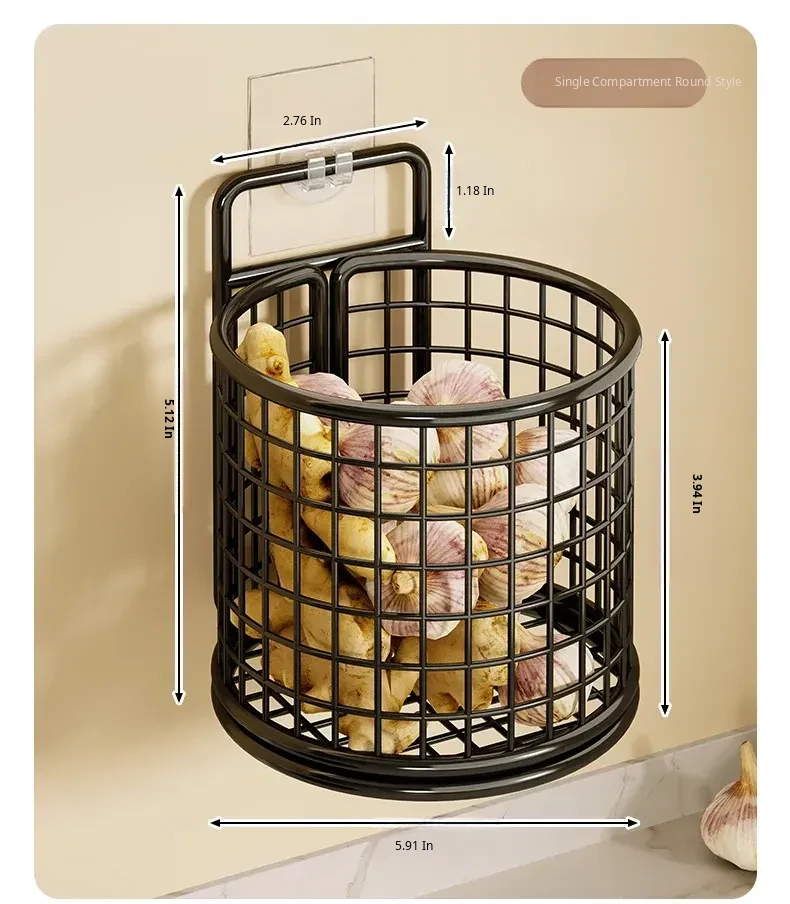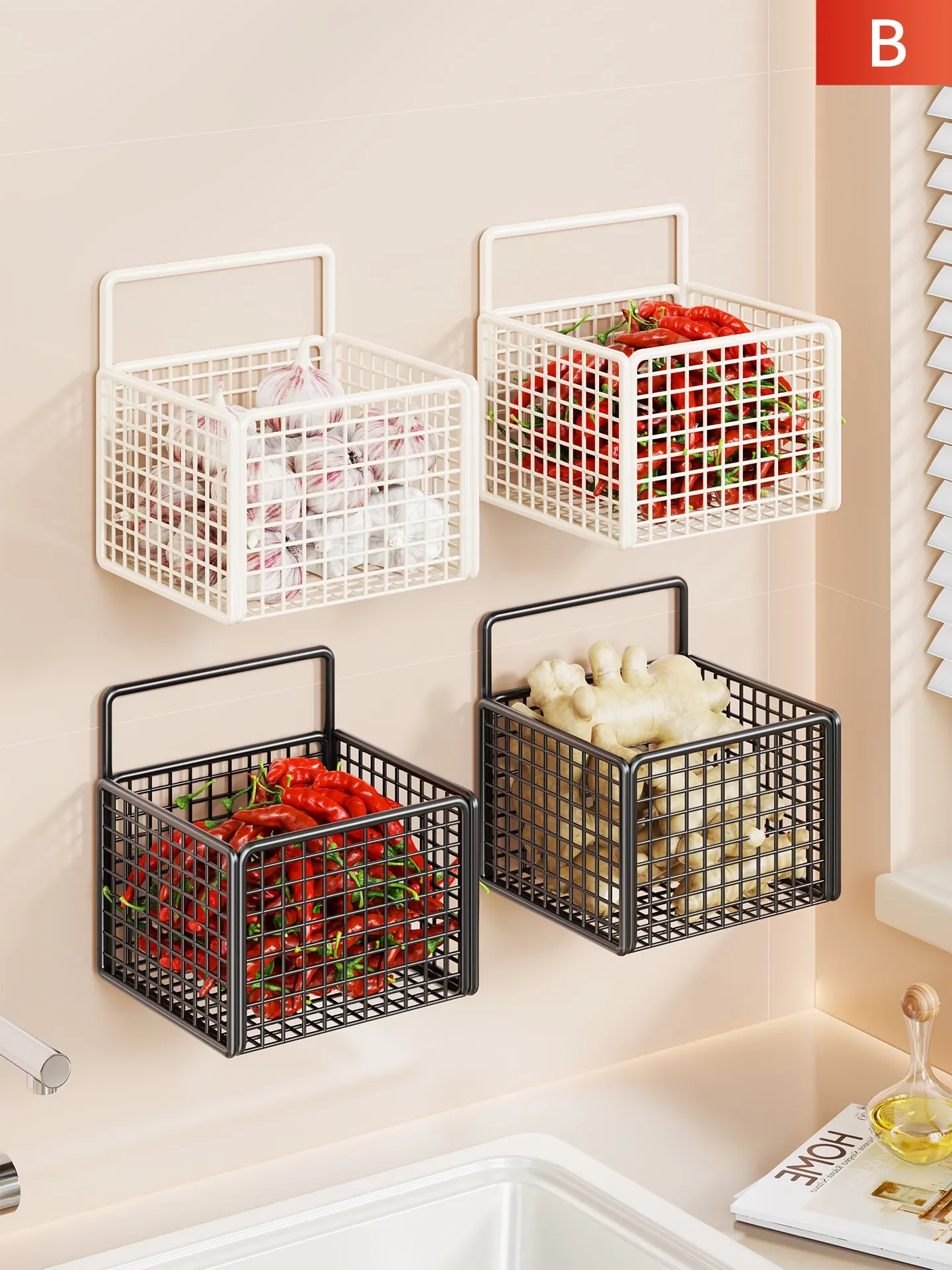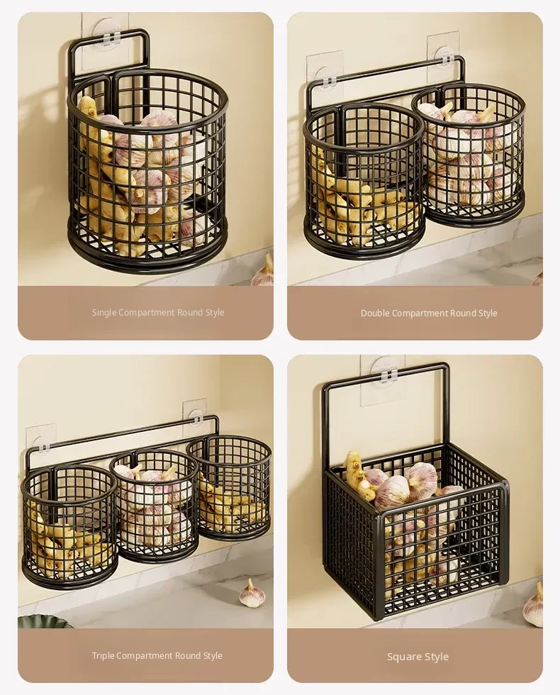 Wall-Mounted Garlic, Ginger, and Scallion Storage Box - No Drilling Required! Versatile Hanging Rack for Chili Peppers and Kitchen Organization