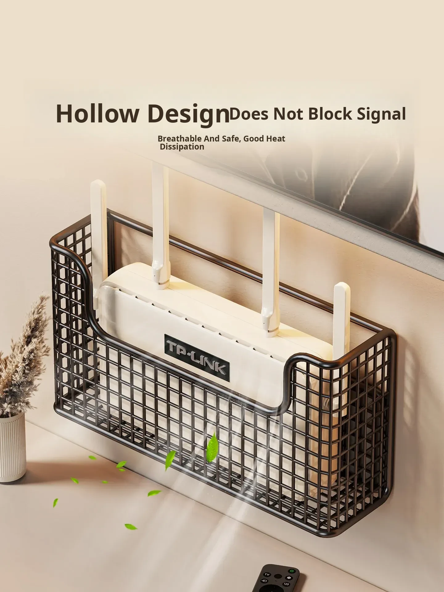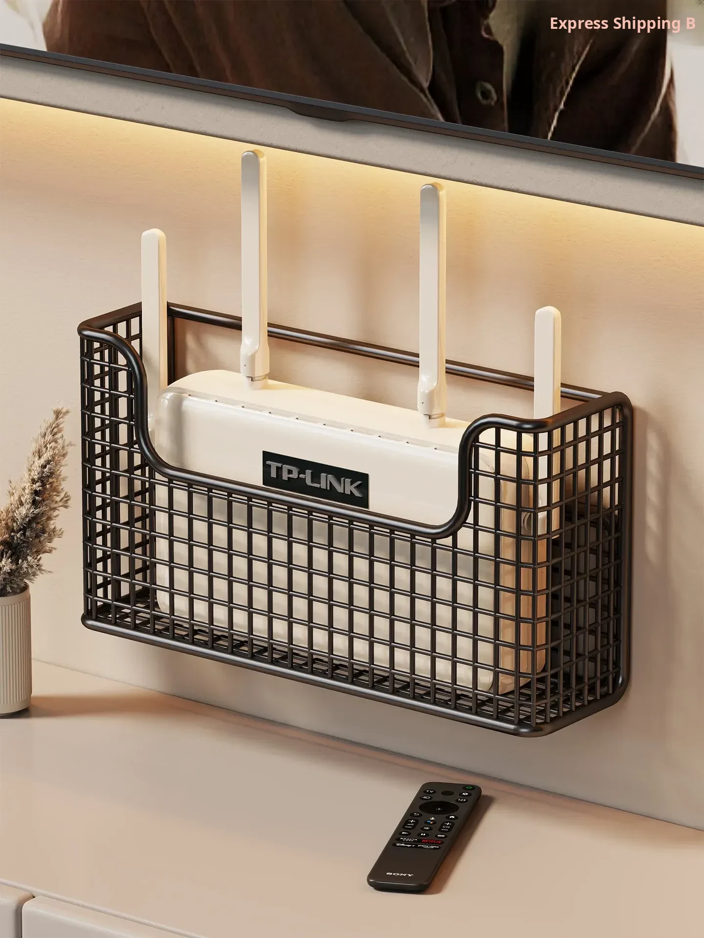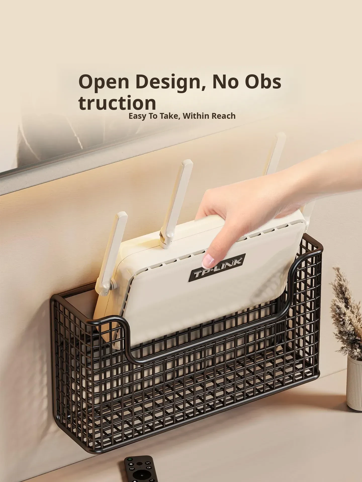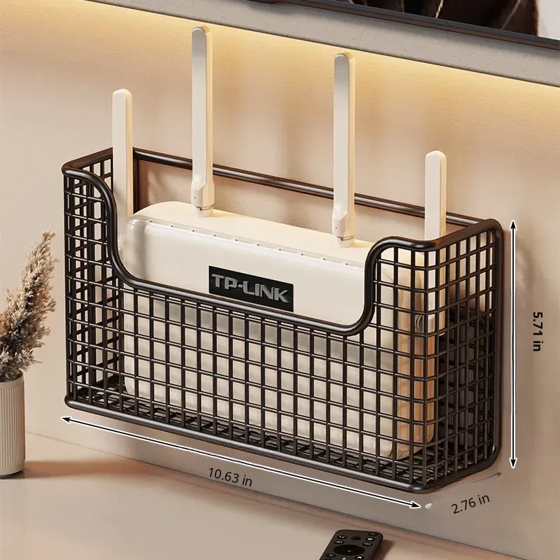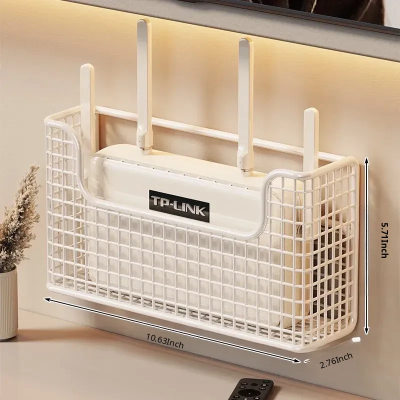 Wall-Mounted Router Organizer with No Drilling, Cable Management Box, WiFi Fixator, Fiber Optic Modem & Set-Top Box Holder, Perfect for Living Room Storage
