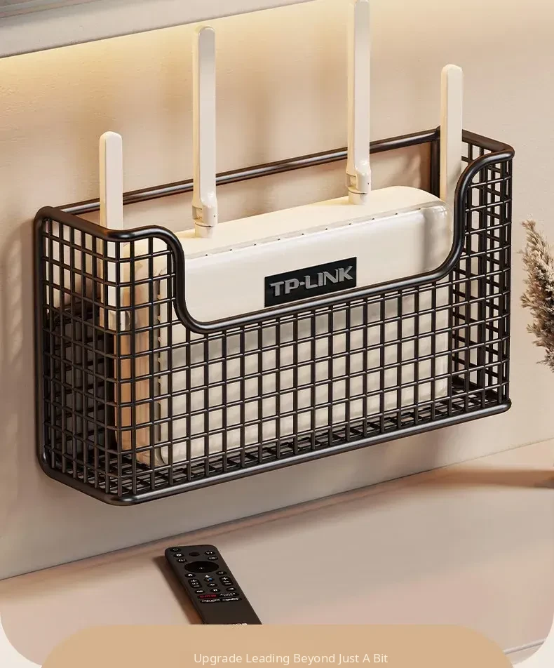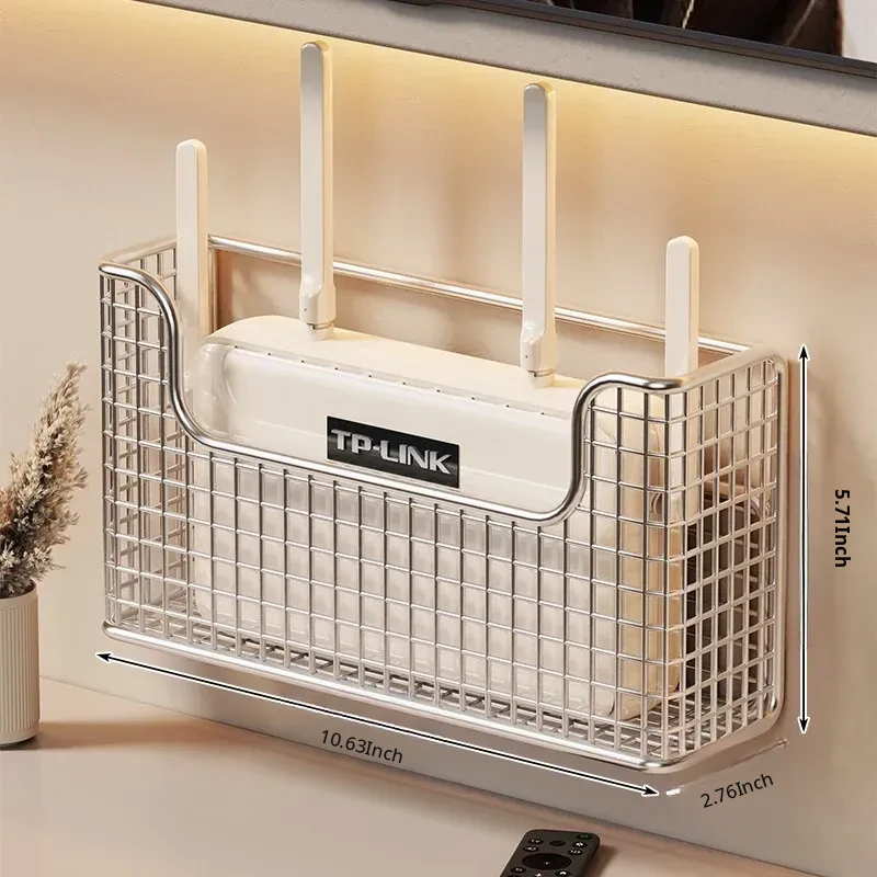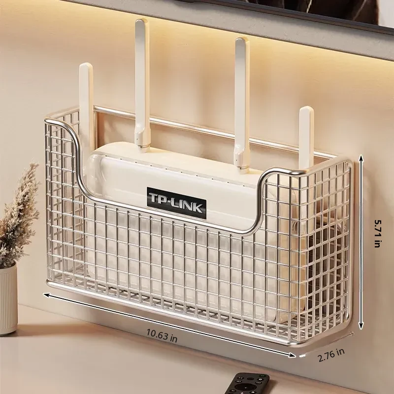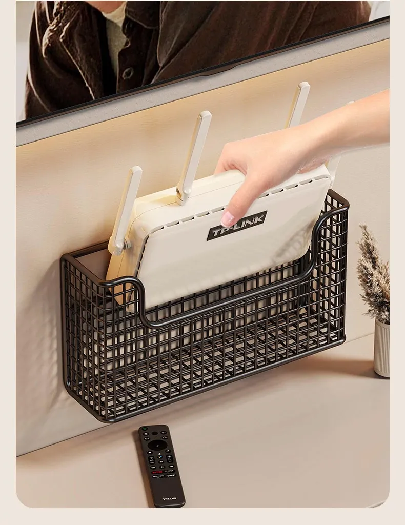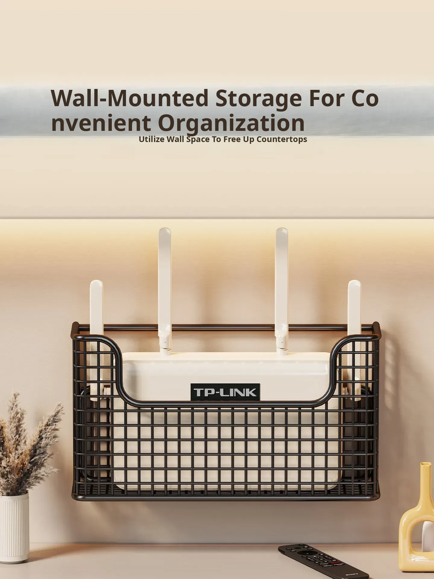 Wall-Mounted Router Organizer with No Drilling, Cable Management Box, WiFi Fixator, Fiber Optic Modem & Set-Top Box Holder, Perfect for Living Room Storage