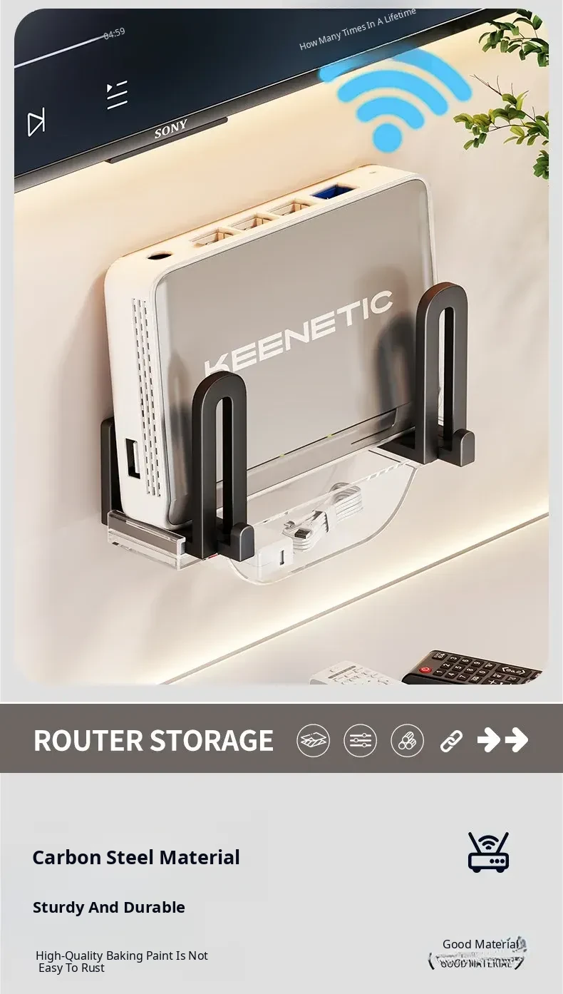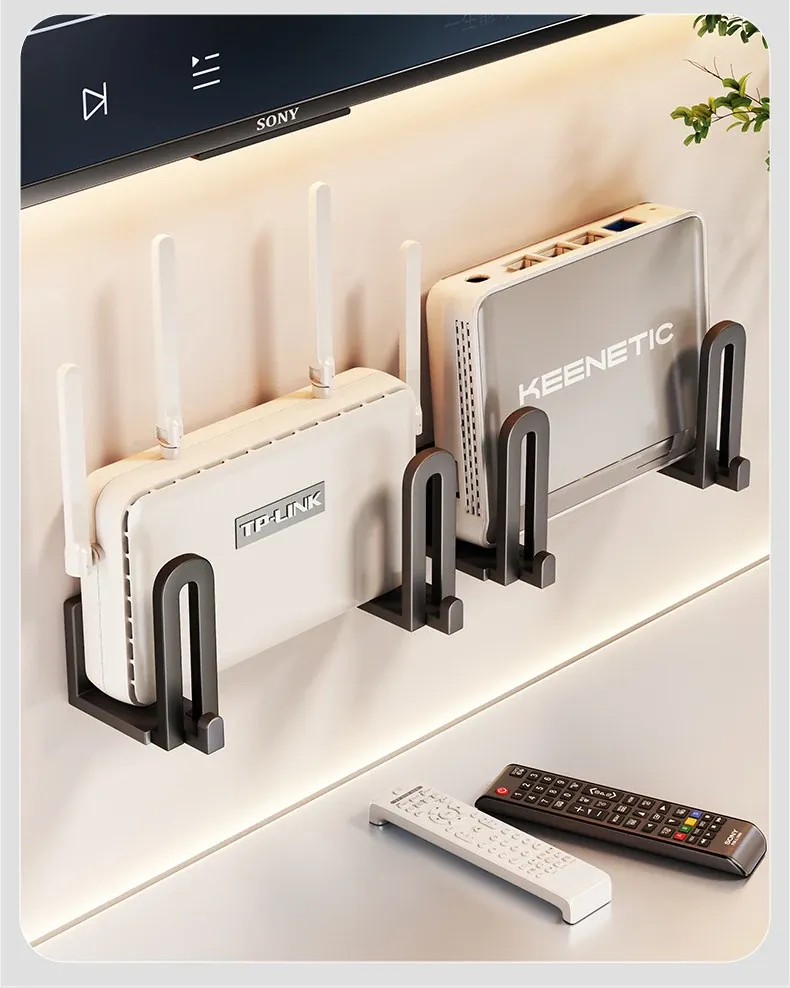 Wall-Mounted Router Storage Shelf - No Drill, Adhesive Design for Cable Boxes and Modems - Stylish WiFi Organizer Rack for a Clutter-Free Space
