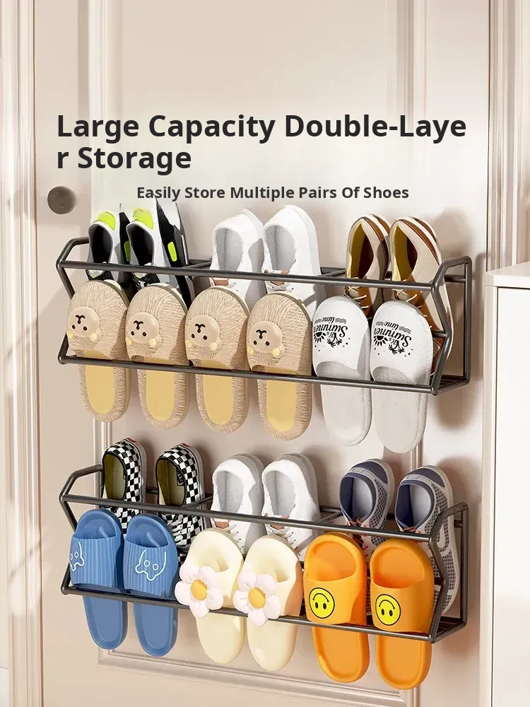 Wall-Mounted Shoe Rack for Door - No Drill, Easy Storage Solution for Dorms and Bathrooms - Perfect for Organizing Shoes and Essentials at Home!