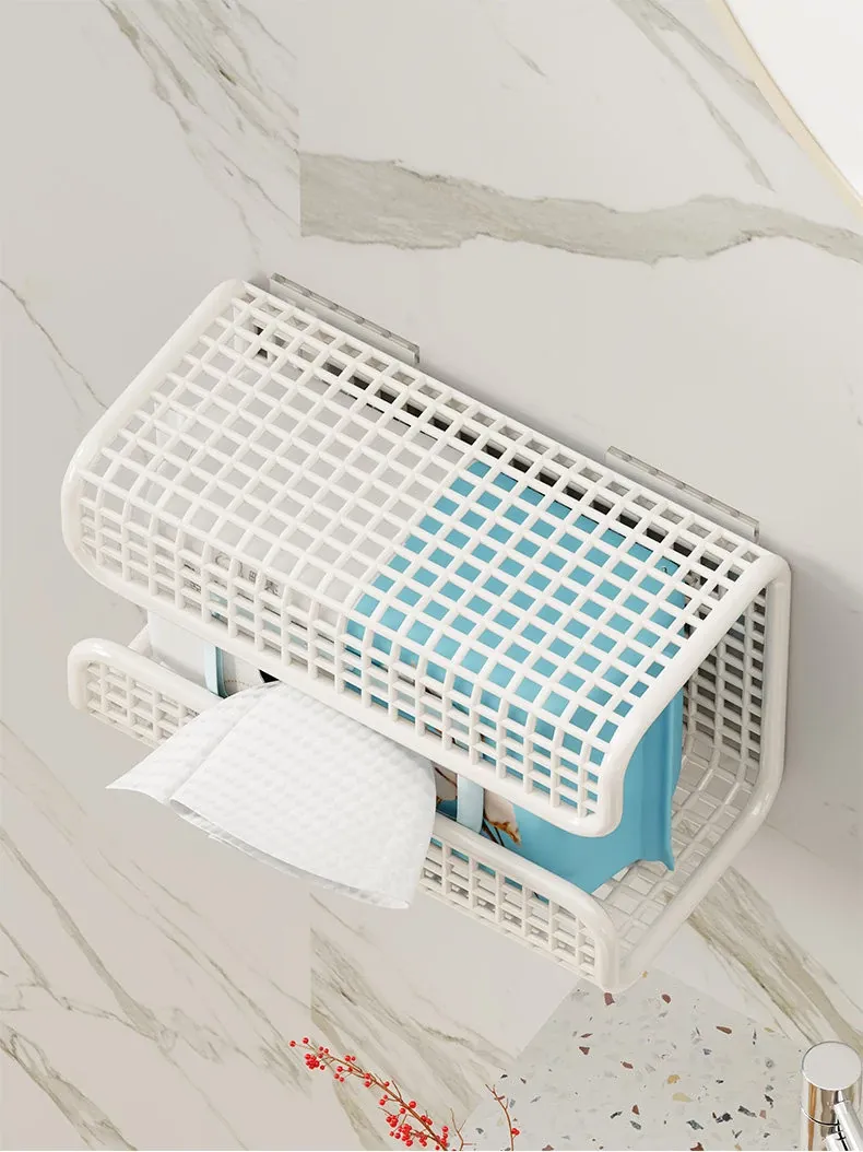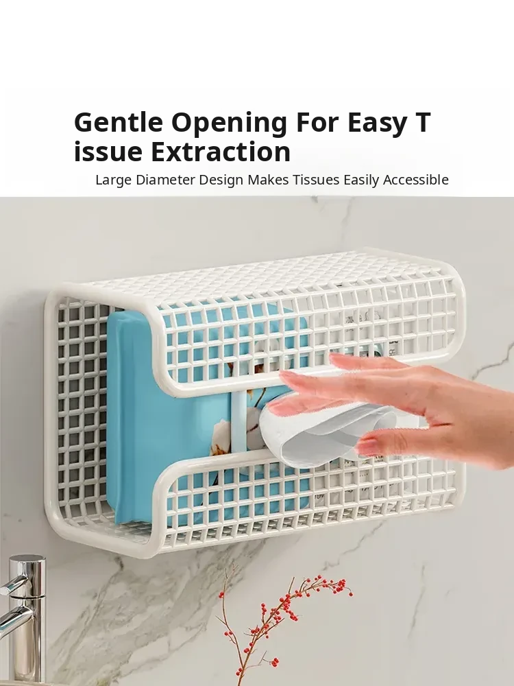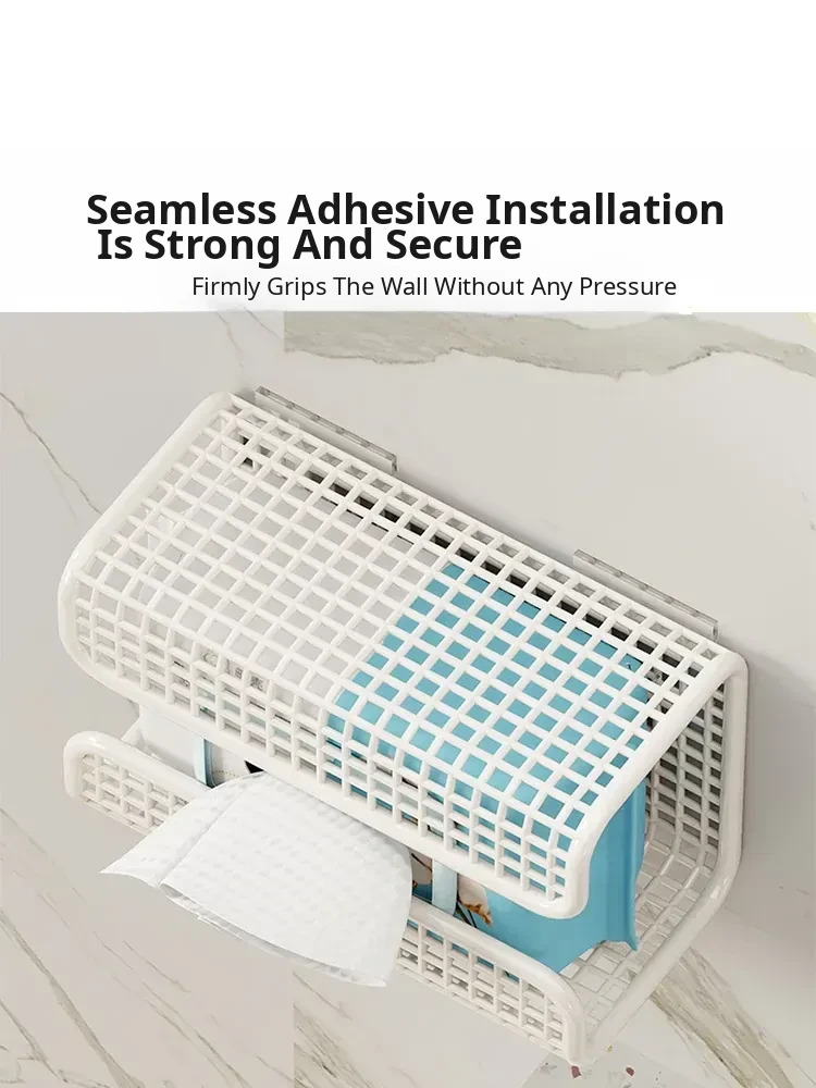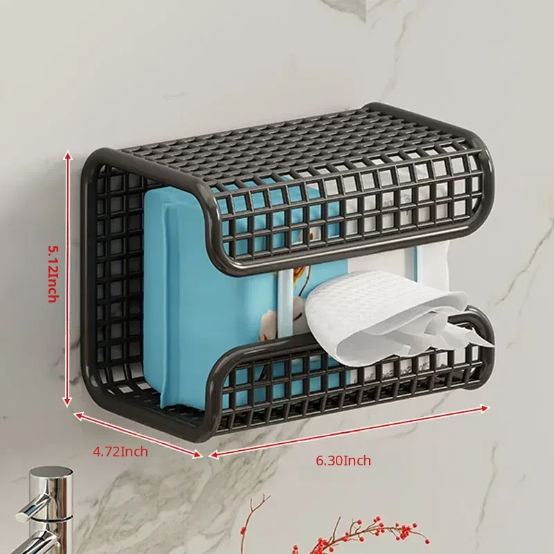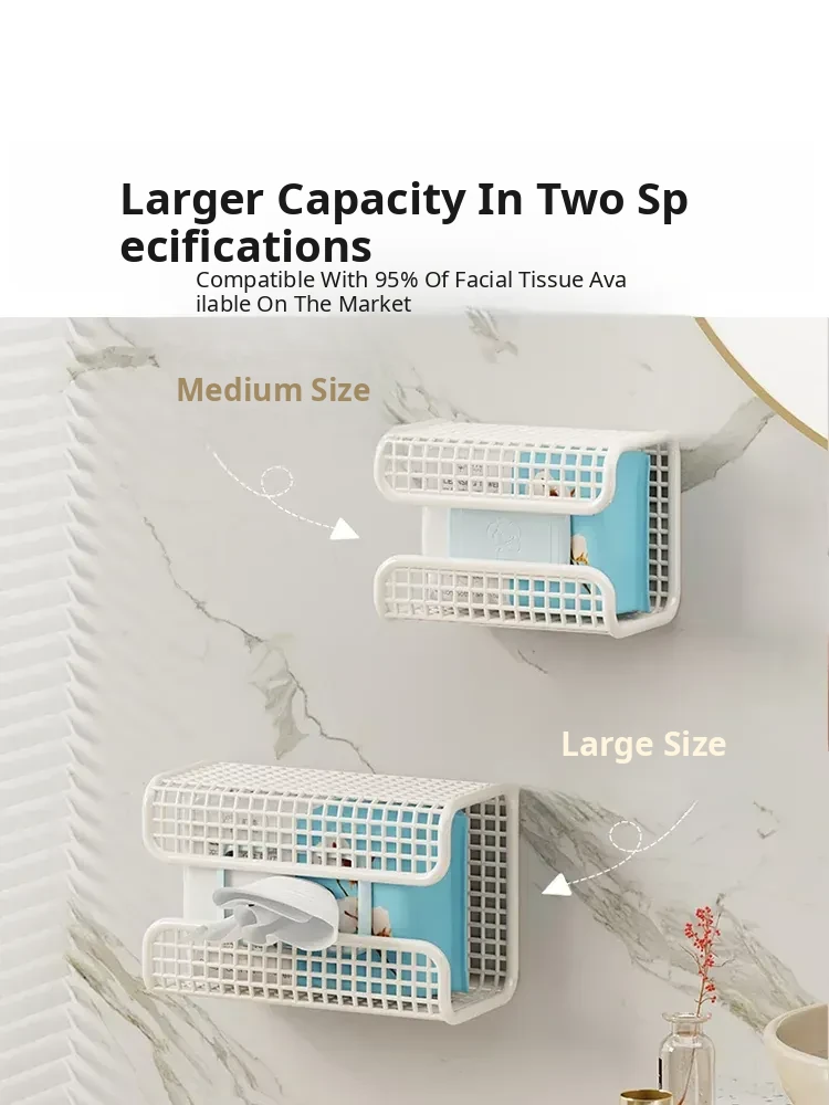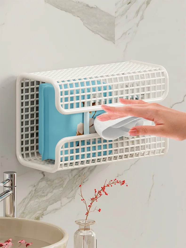 Wall-Mounted Tissue Box for Face Towels – No Drilling Required, Perfect for Home Bathrooms, Holds Disposable Facial Tissues, Convenient Flip-Down Design