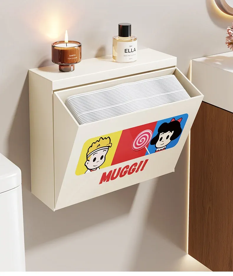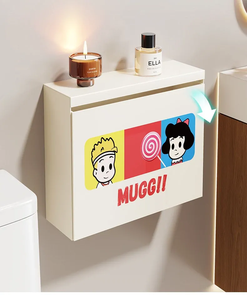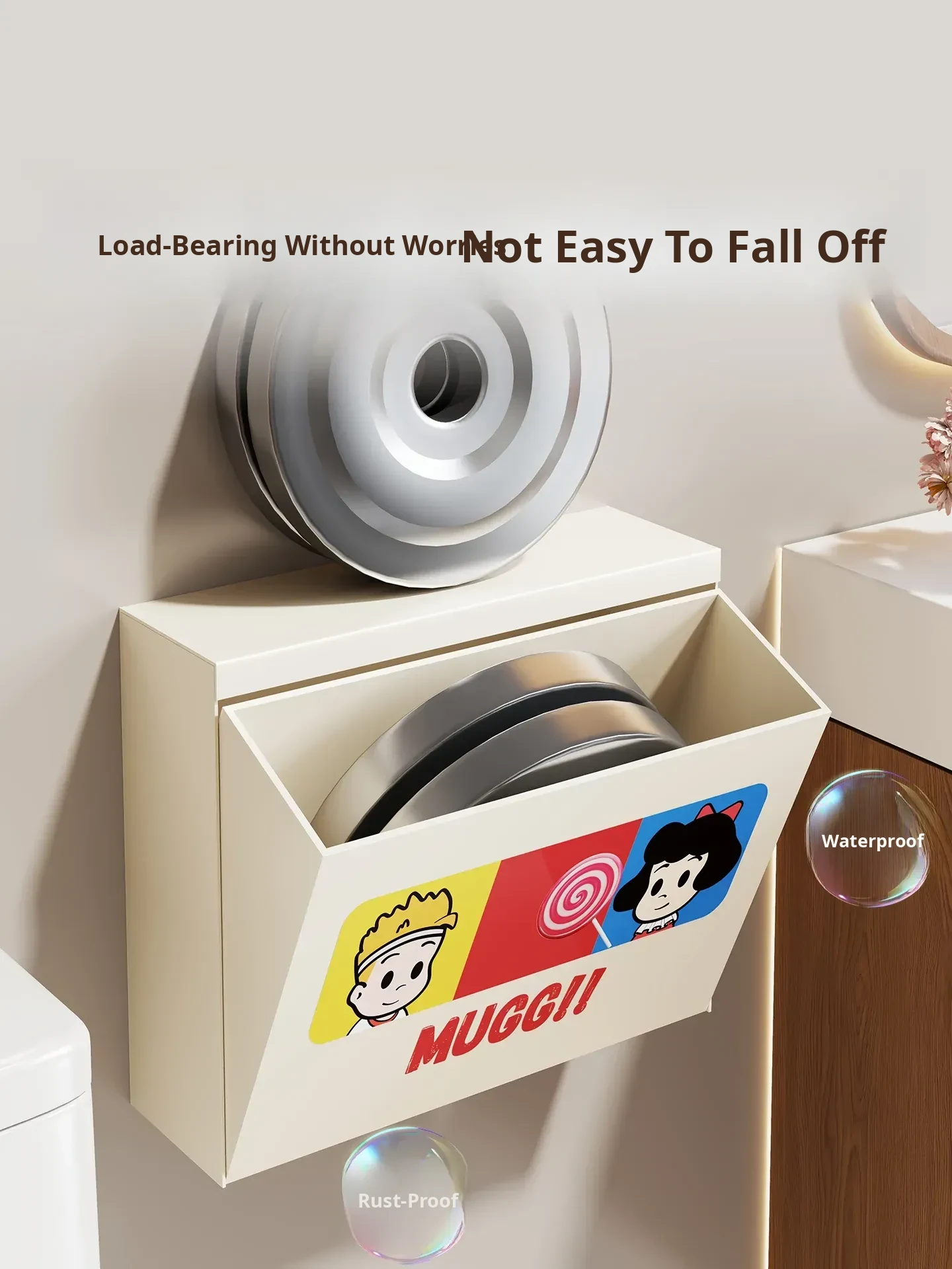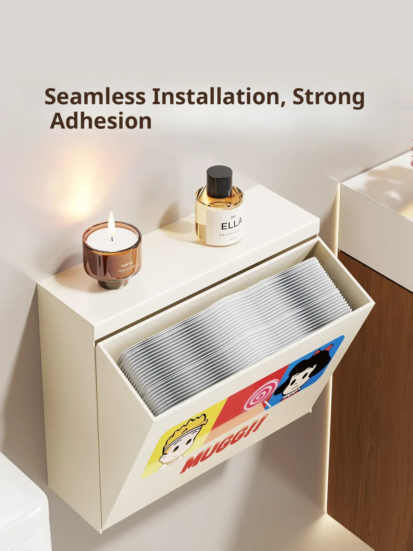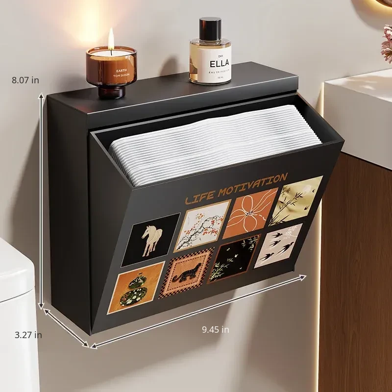 Wall-Mounted Toilet Paper Holder with Storage Shelf - No Drill, Convenient Flip-Top Design for Bathroom Tissue Dispenser and Tissue Box