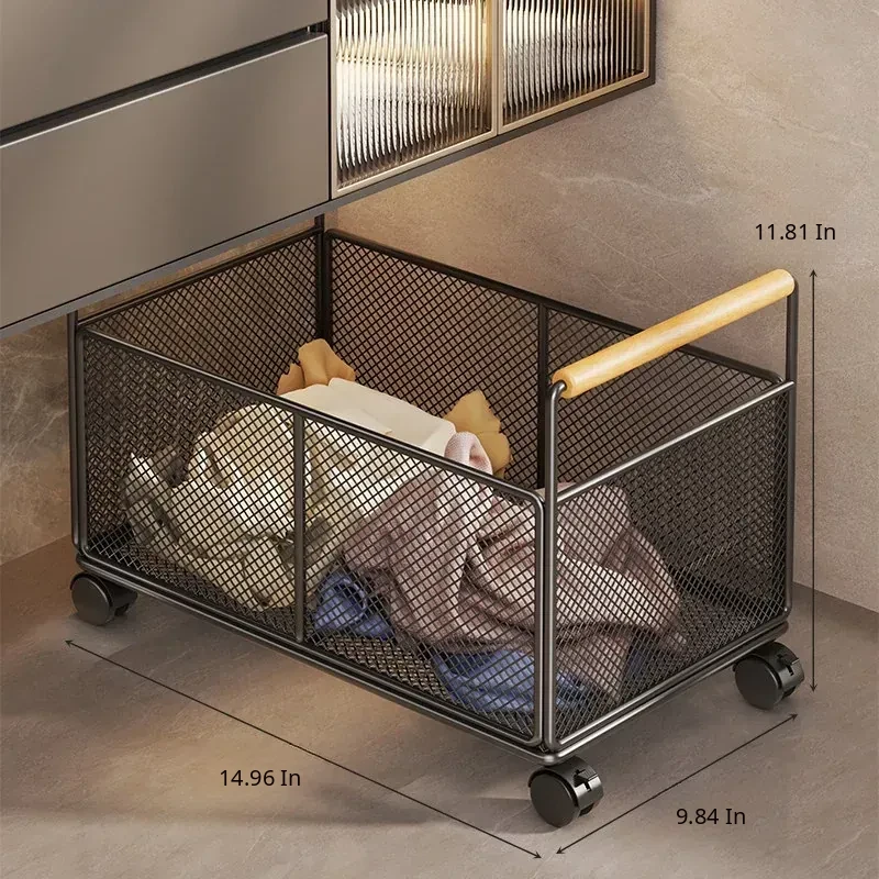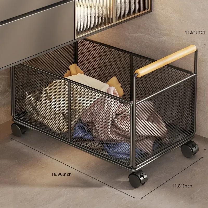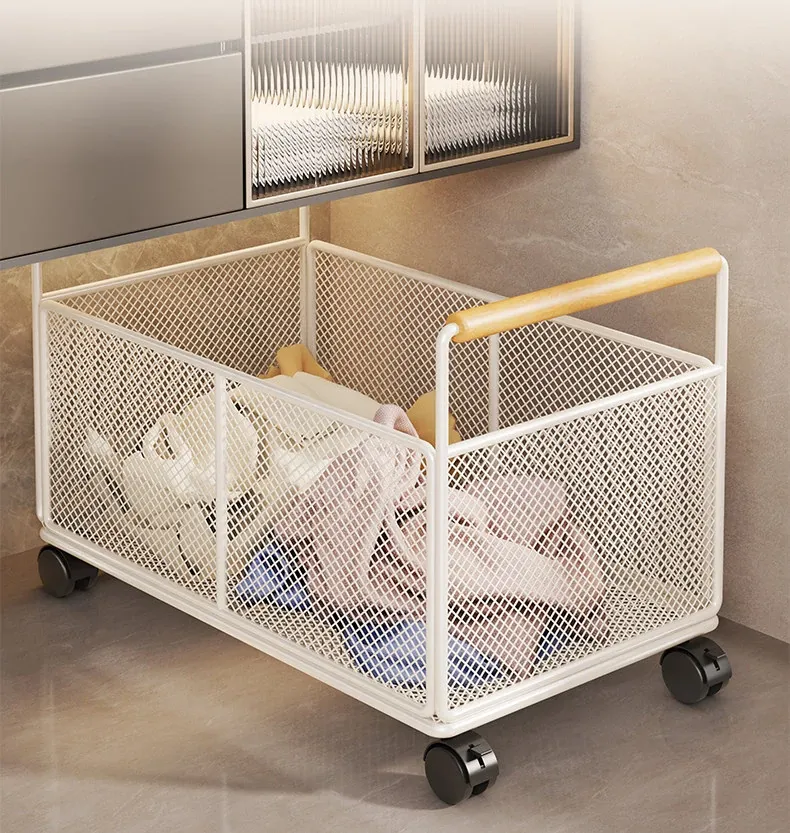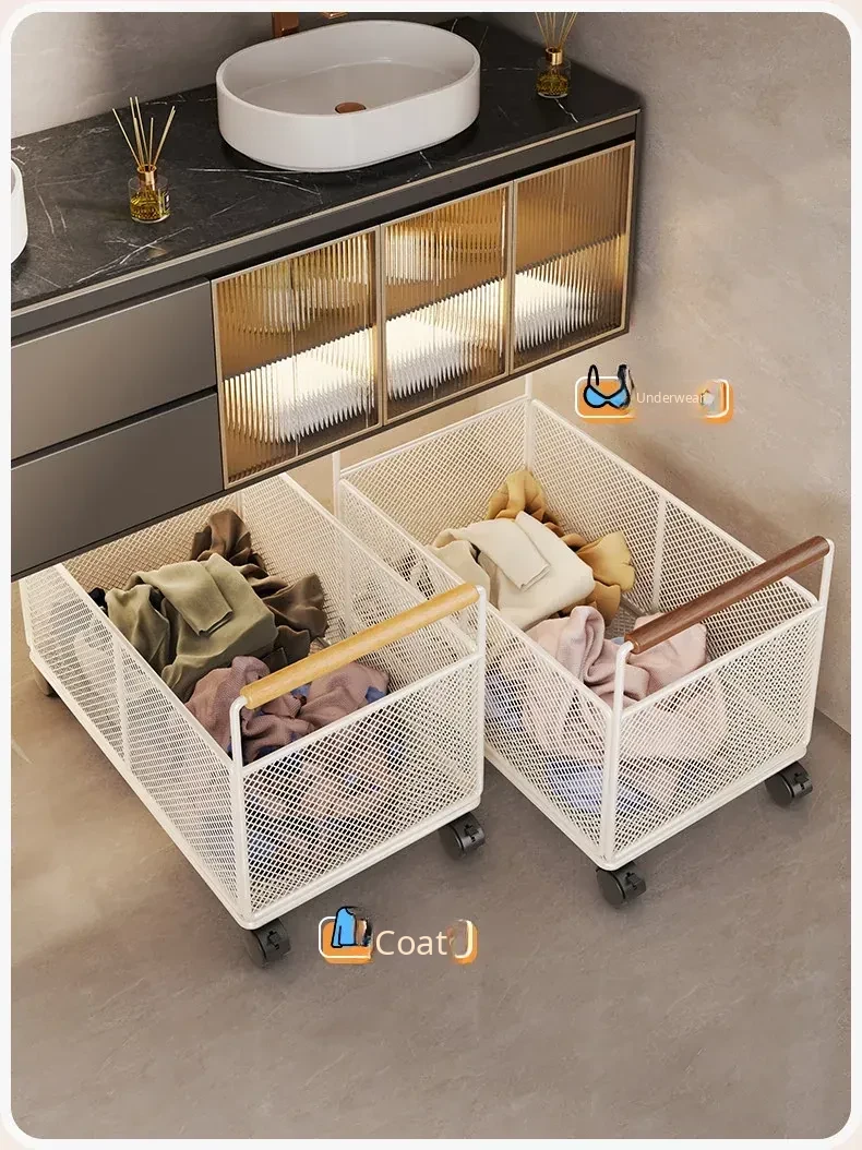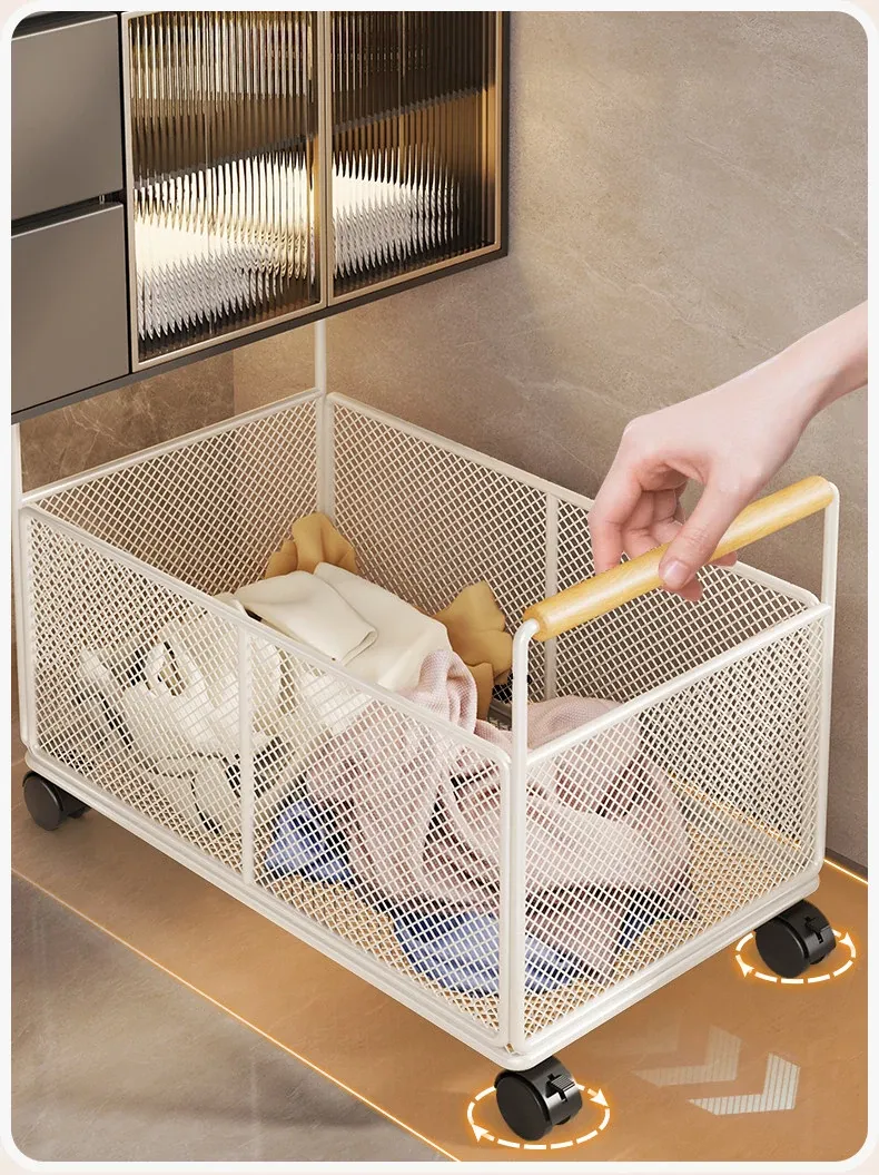 Waterproof Laundry Basket with Wheels - Stylish Bathroom Cabinet Storage Cart for Dirty Clothes Organizer, Perfect for Home and Bathroom Use, Laundry Room Essentials
