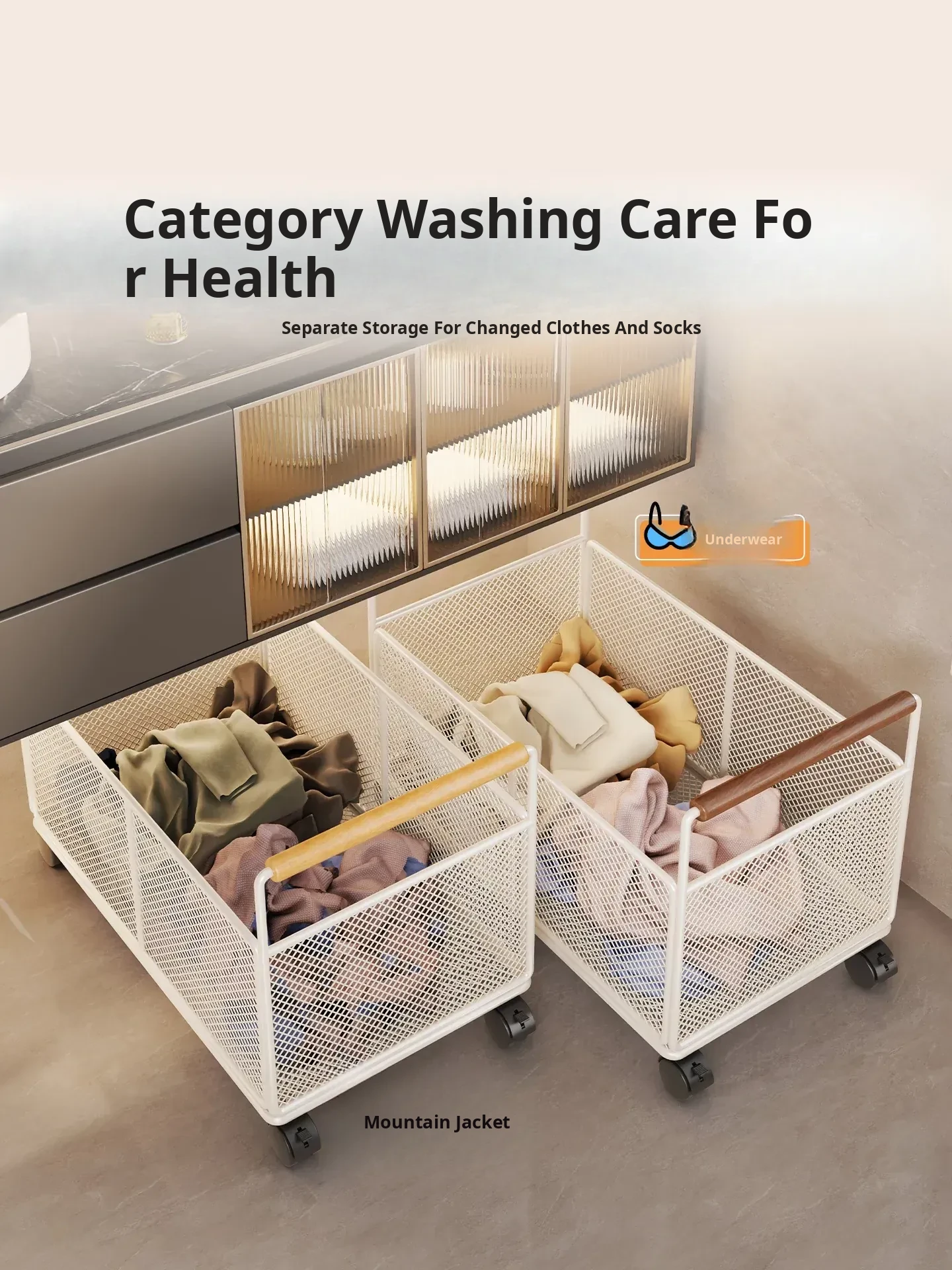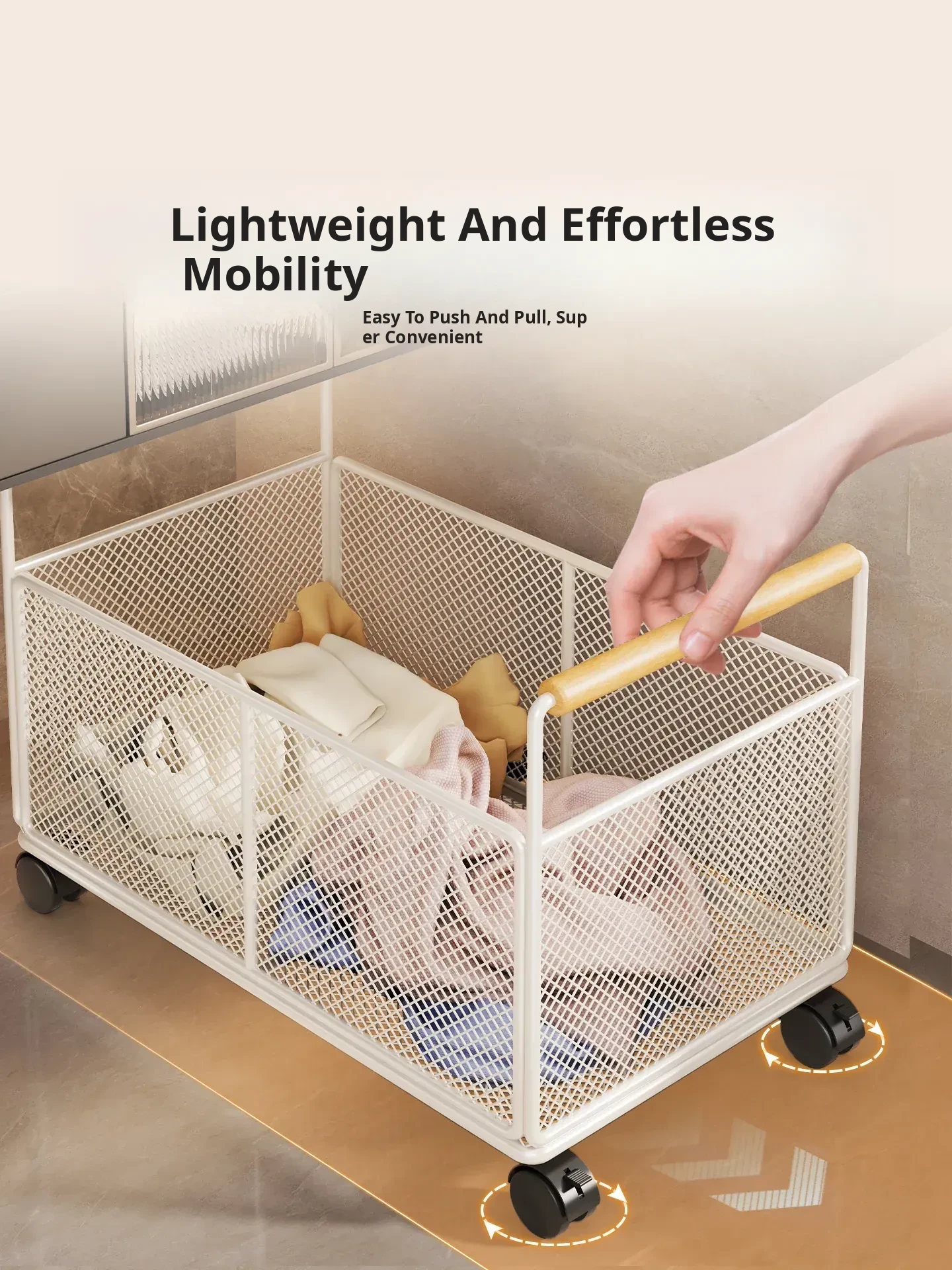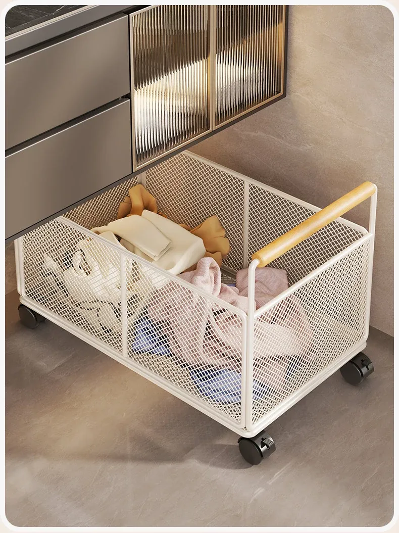 Waterproof Laundry Basket with Wheels - Stylish Bathroom Cabinet Storage Cart for Dirty Clothes Organizer, Perfect for Home and Bathroom Use, Laundry Room Essentials