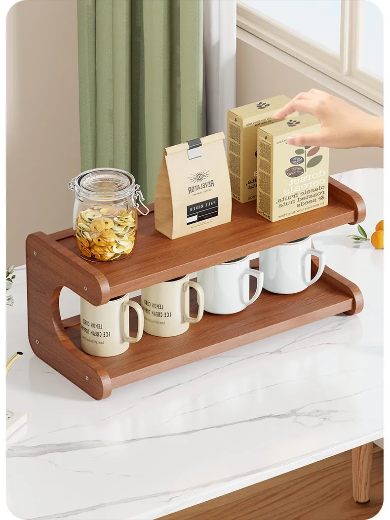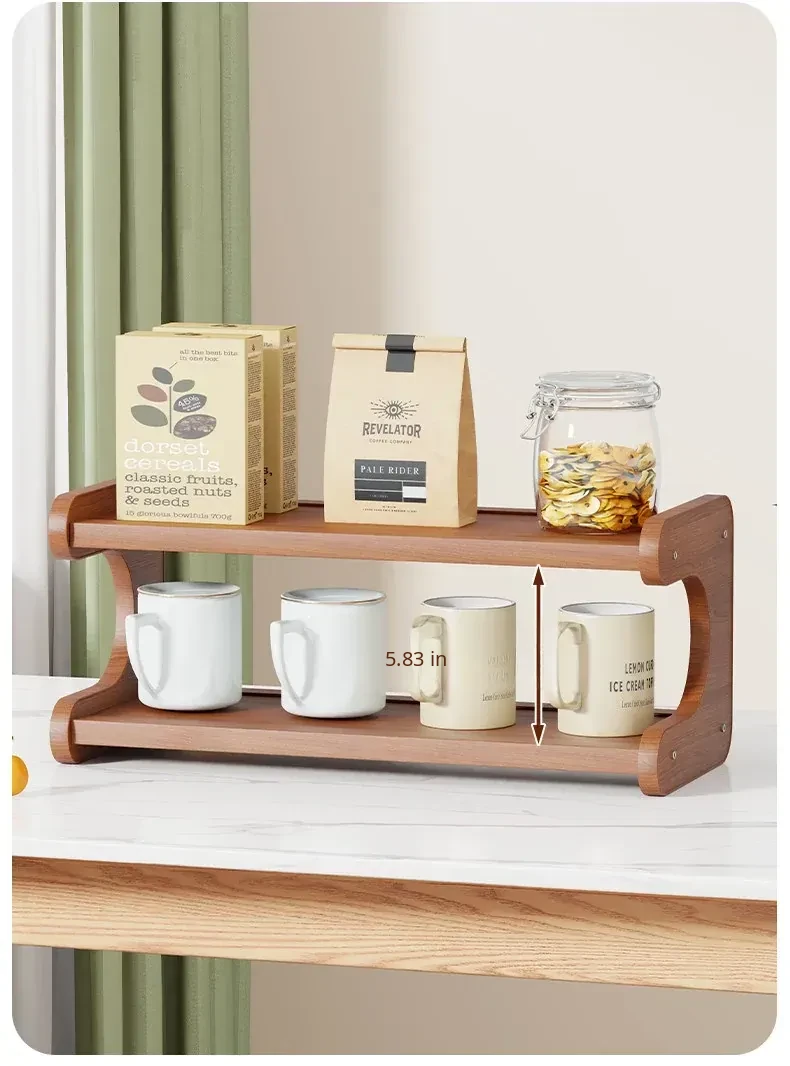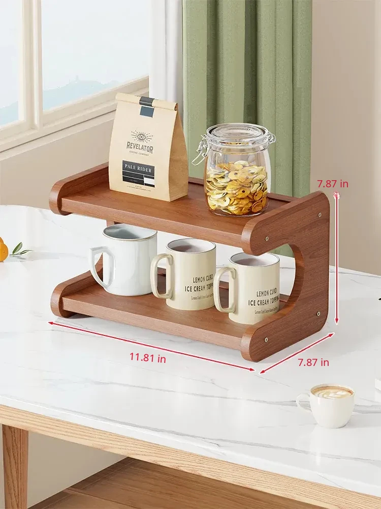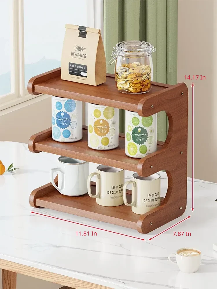 Wooden Desktop Storage Rack - Multi-Tier Organizer for Home Use, Ideal for Displaying Tea, Coffee Mugs, and Organizing Kitchen Spices on Your Dining Table