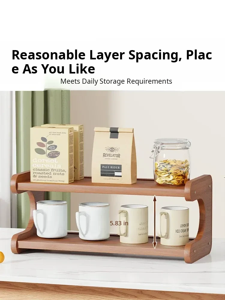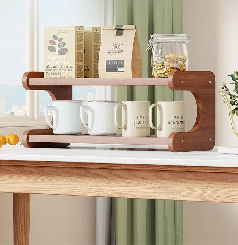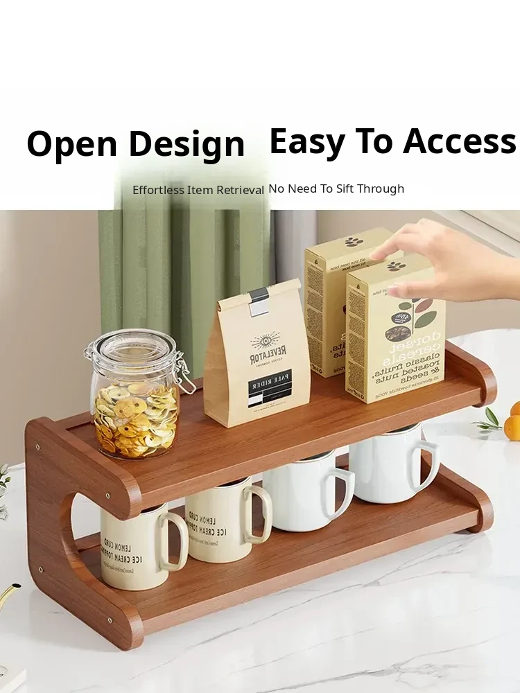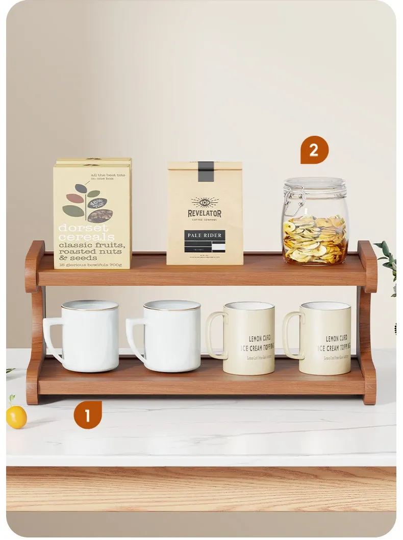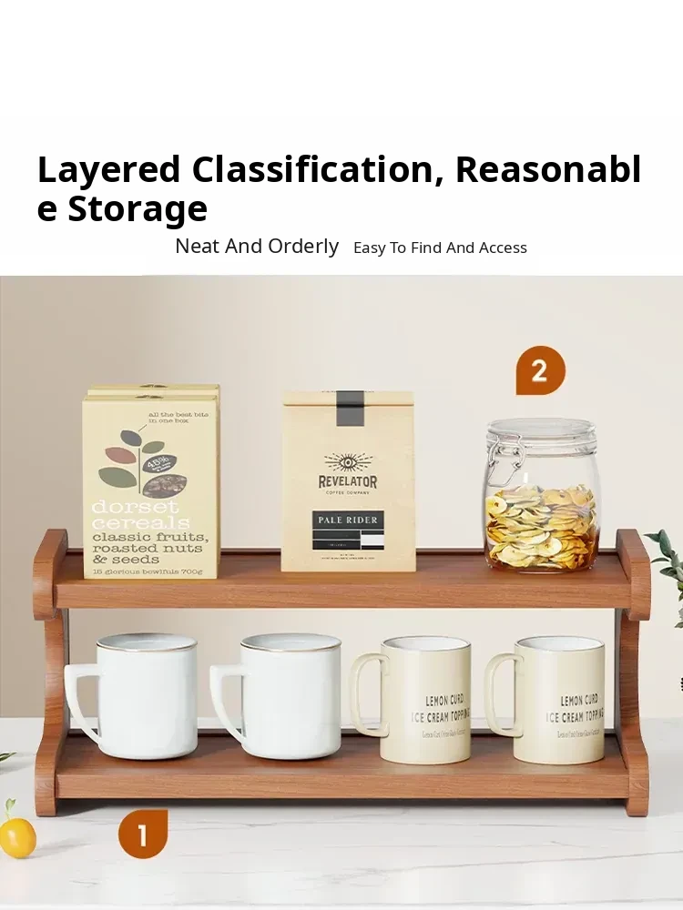 Wooden Desktop Storage Rack - Multi-Tier Organizer for Home Use, Ideal for Displaying Tea, Coffee Mugs, and Organizing Kitchen Spices on Your Dining Table