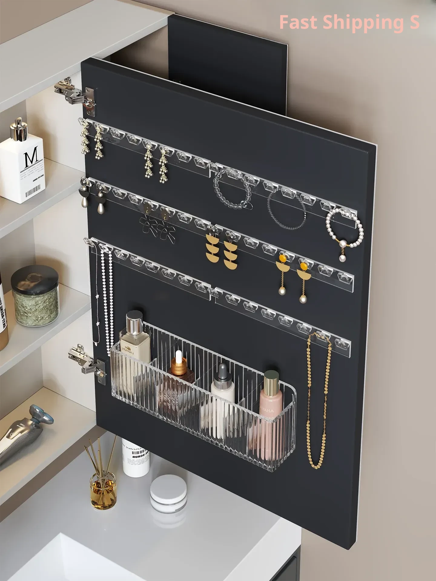 Wall-Mounted Jewelry Organizer: Versatile Necklace and Bracelet Rack with Earring Hooks - Perfect for Bathroom Storage and Elegant Display of Your Accessories!