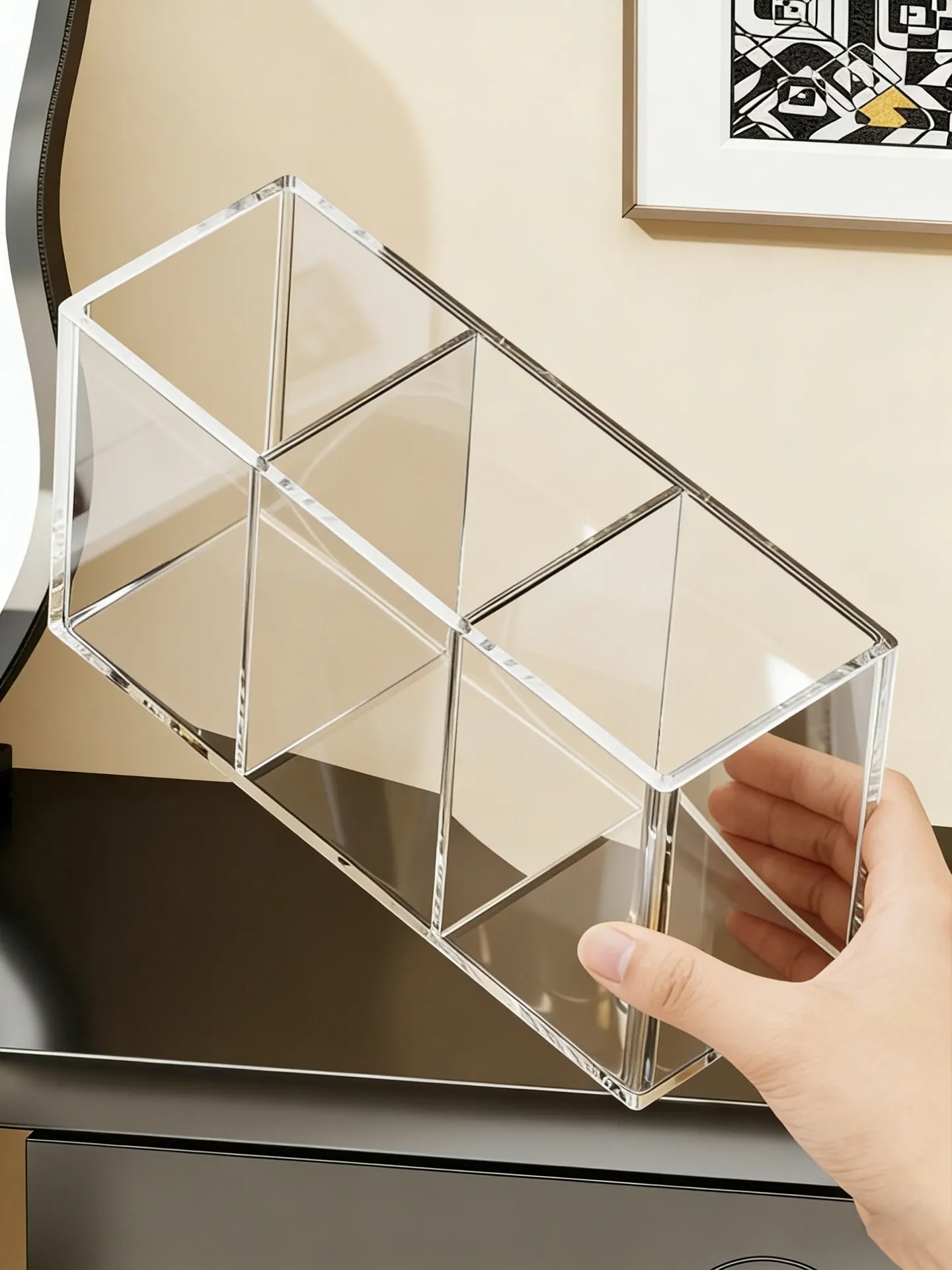 Transparent Makeup Brush Organizer with Dividers - Stylish Desktop Storage for Cosmetics, Lipsticks, Eyeliners, and Combs - Keep Your Beauty Essentials Neatly Arranged