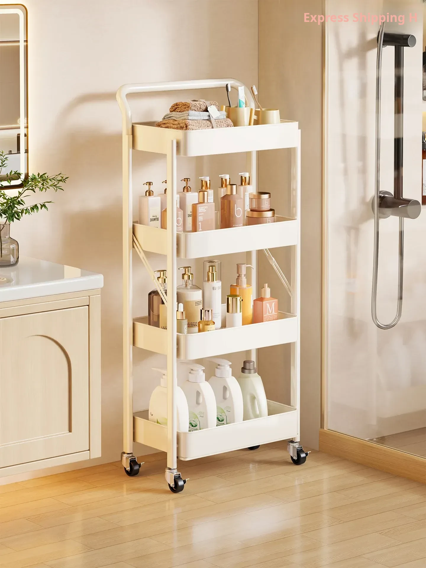 Foldable Corner Storage Rack for Bathroom - Multi-Layer Movable Trolley Shelf for Living Room - Perfect Organizer for Small Spaces!