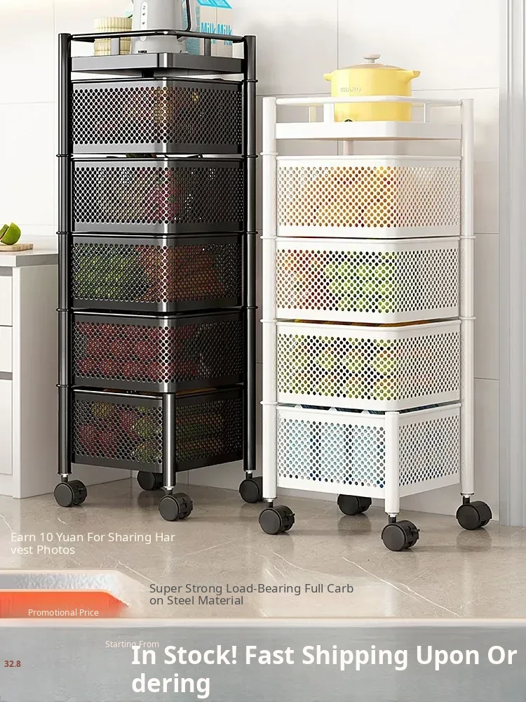 Multi-Layered Kitchen Rolling Storage Cart - Perfect for Snacks, Toys, and Fruits & Vegetables - Versatile Floor Stand Organizer for Home and Living Room