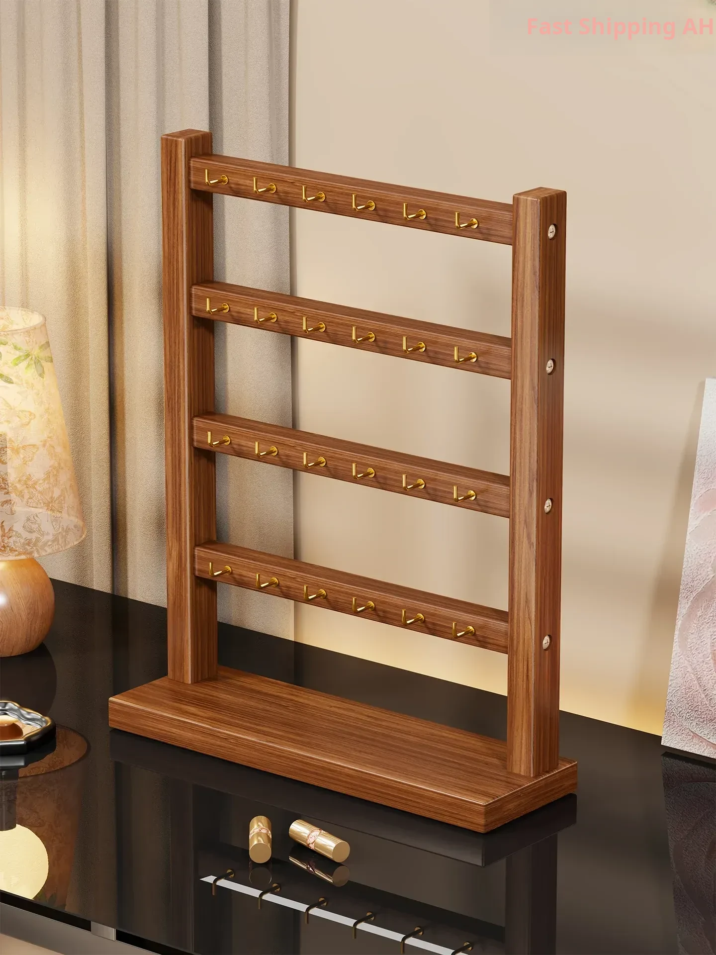Solid Wood Jewelry Organizer - Multi-functional Display Rack for Hair Ties, Keychains, Bracelets, Necklaces, and Beads - Stylish Storage Solution for Your Accessories
