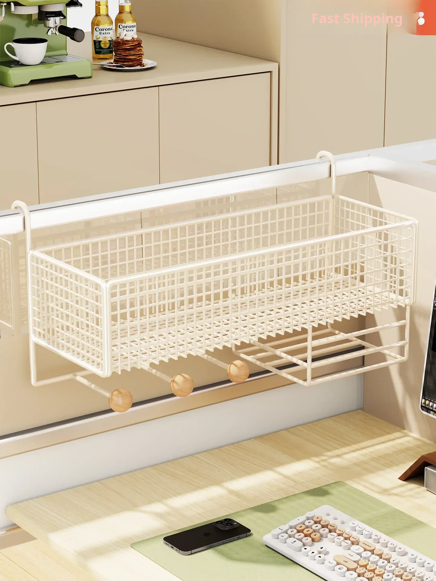 Adjustable Hanging Desk Organizer - Office Storage Rack with Baskets for Efficient Workspace Management, Perfect for Maximizing Desk Space and Keeping Your Essentials Within Reach!