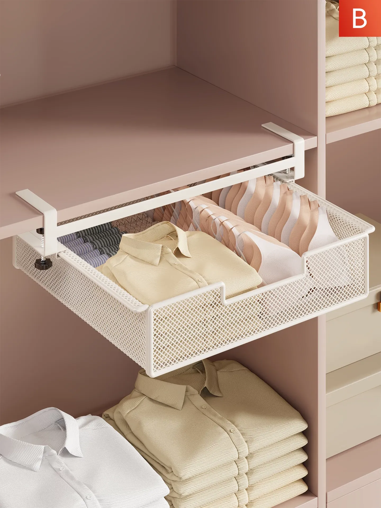 Pull-Out Closet Shelf Organizer - No Installation Required, Drawer Style for Underwear and Clothing Storage, Multi-Layer Clothing Rack with Hanging Baskets for Efficient Organization