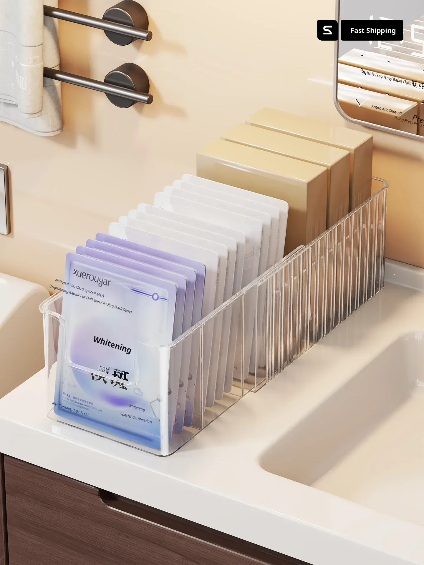 Expandable Transparent Desktop Mask Storage Box with Dividers - Large Capacity Cosmetic Organizer for Skincare Products