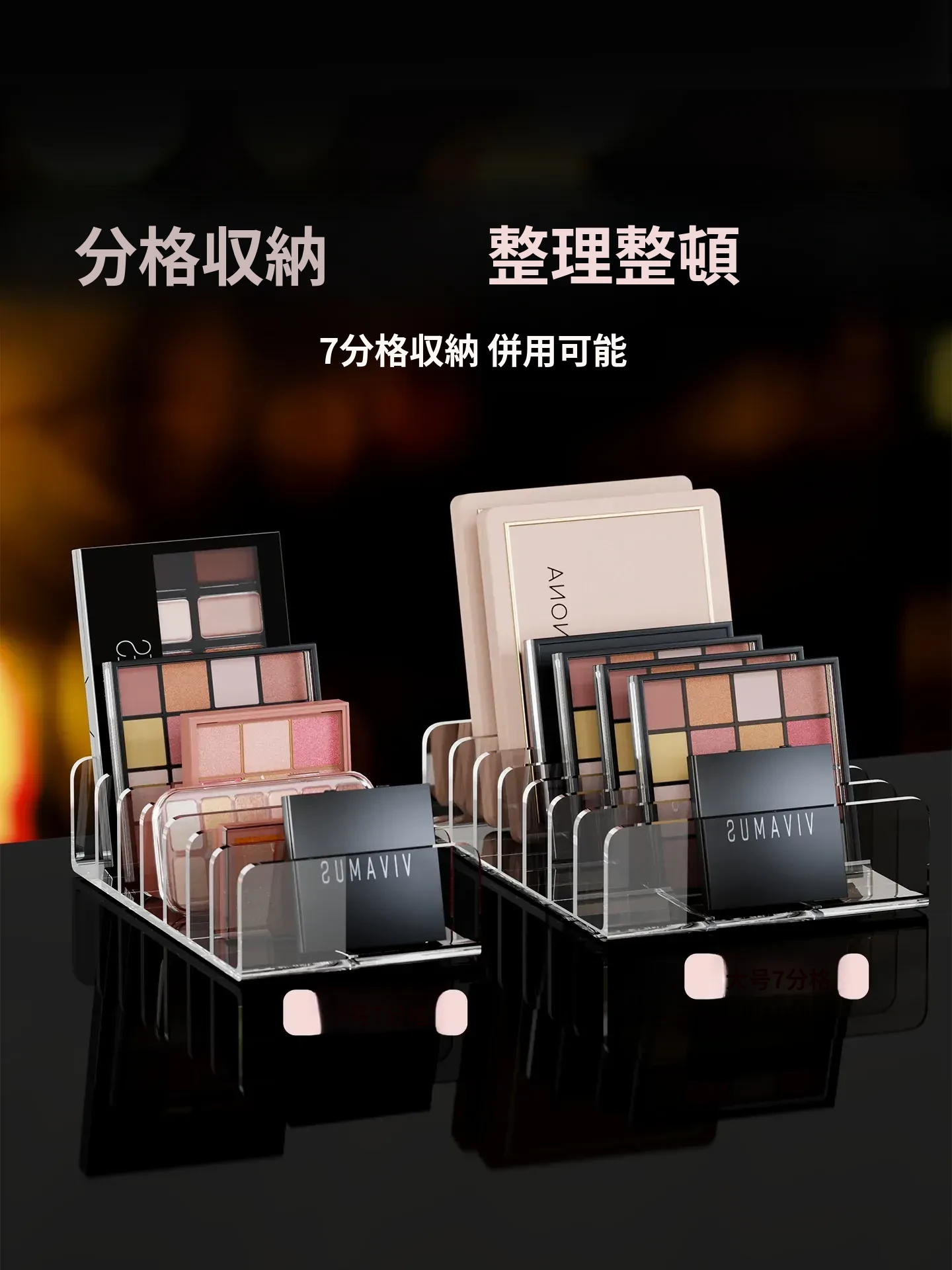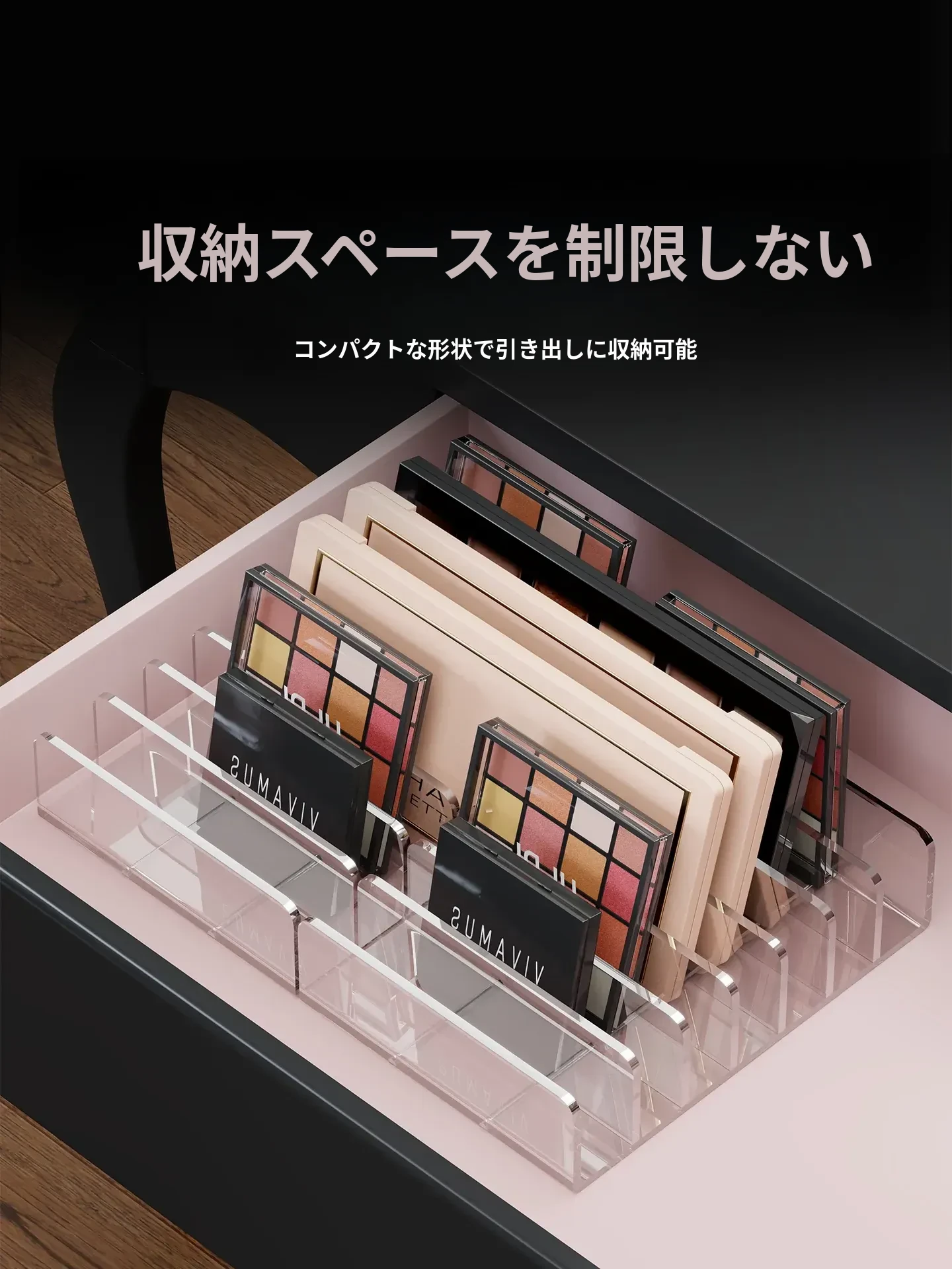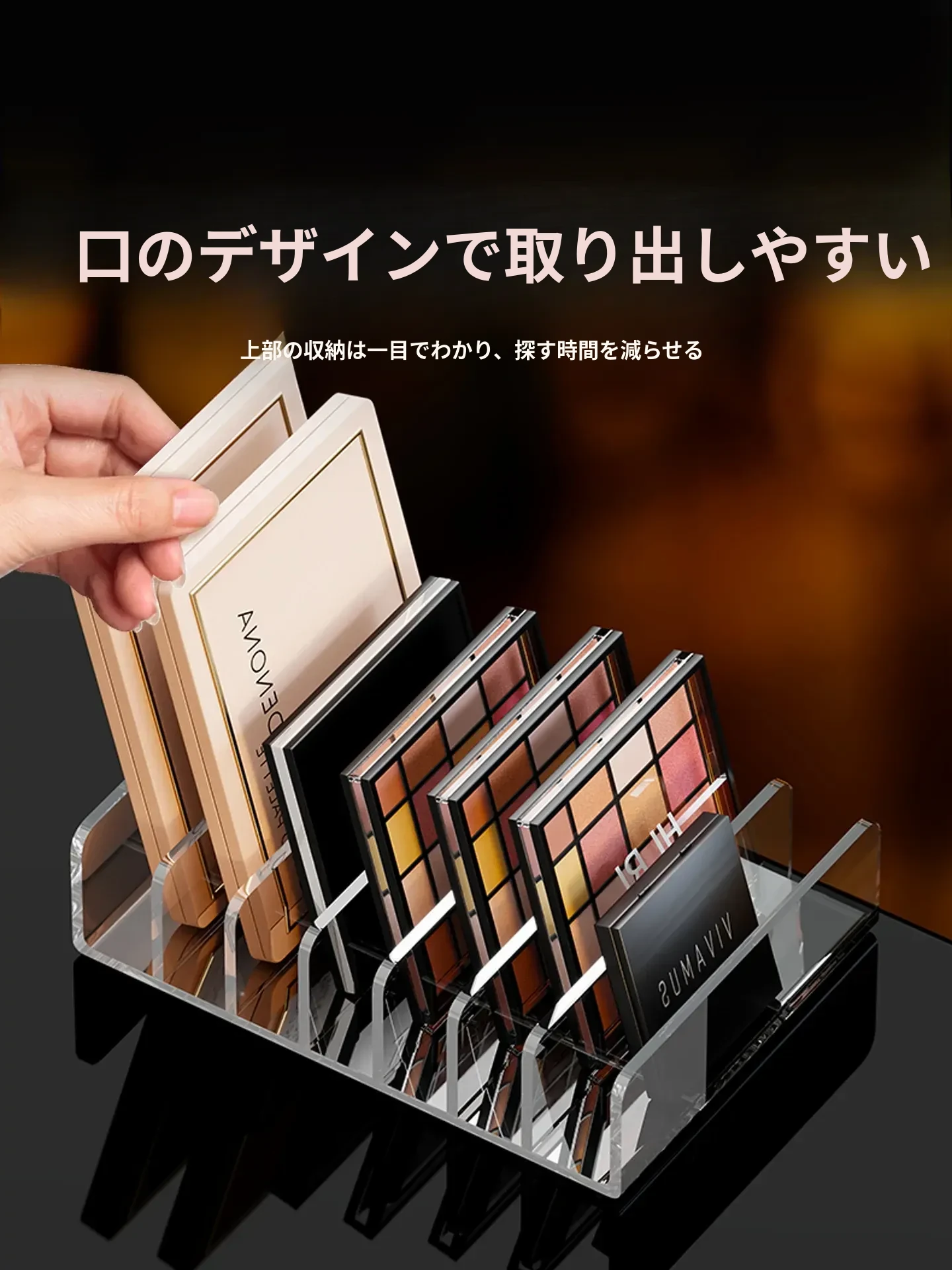 デスクトップ化粧品収納ラック 透明アクリル製アイシャドウパレット仕切りボックス メイクアップ展示の必需品!おしゃれで機能的、あなたのビューティーアイテムを美しく整理整頓!