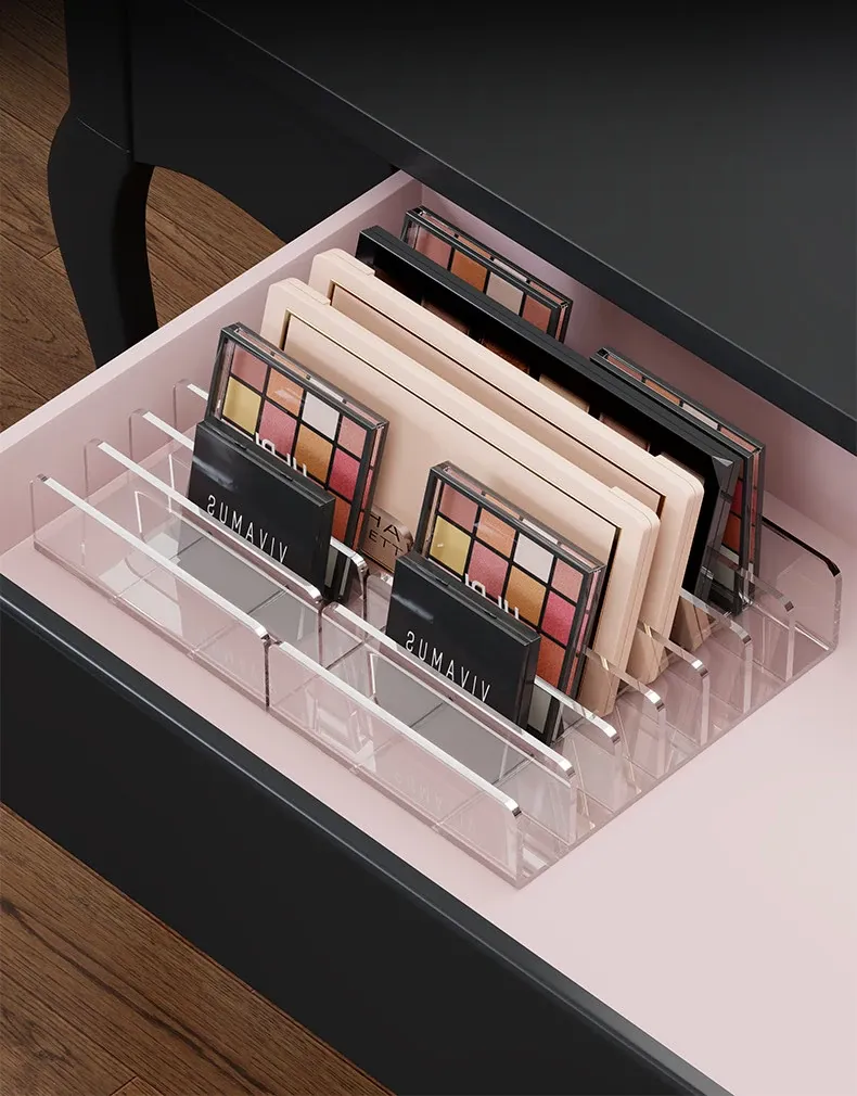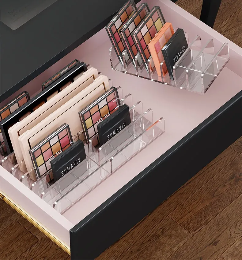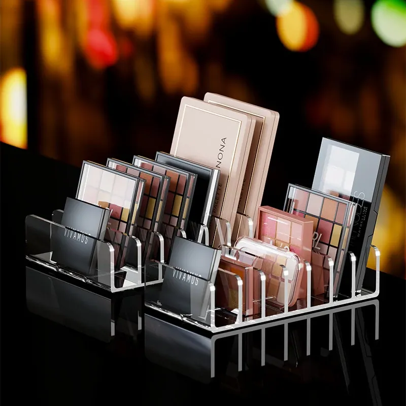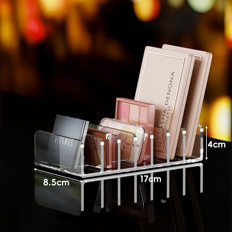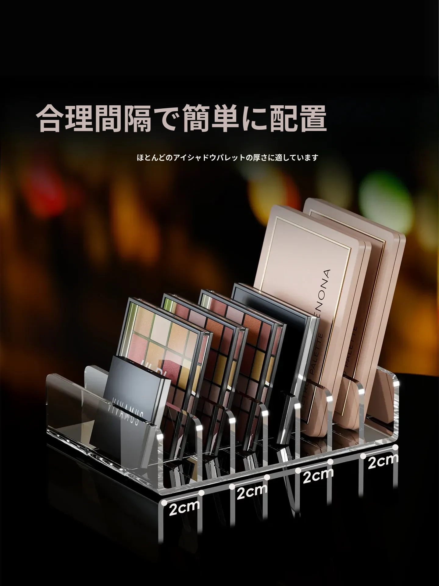 デスクトップ化粧品収納ラック 透明アクリル製アイシャドウパレット仕切りボックス メイクアップ展示の必需品!おしゃれで機能的、あなたのビューティーアイテムを美しく整理整頓!