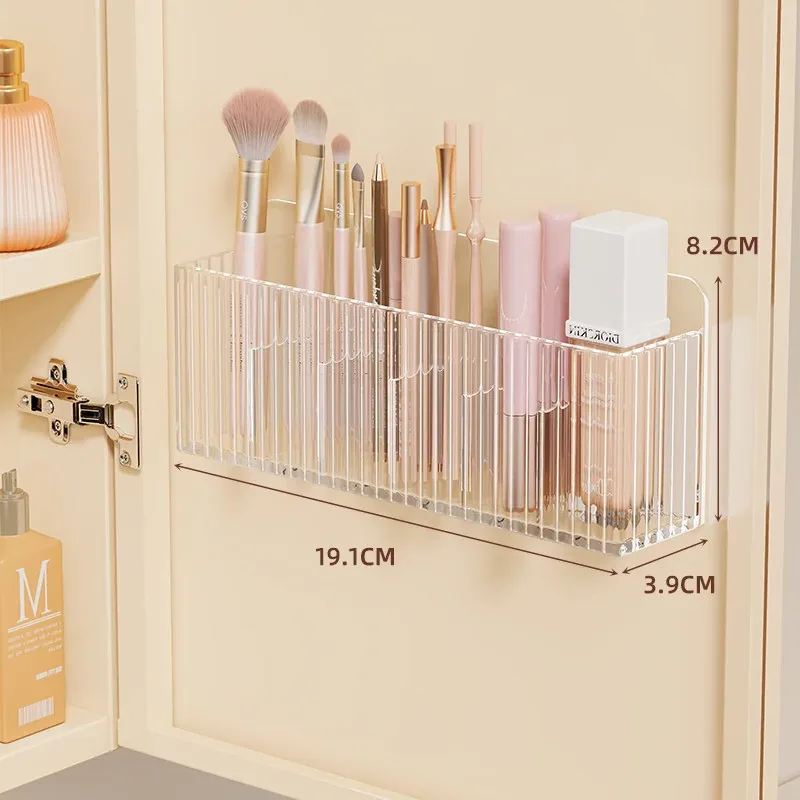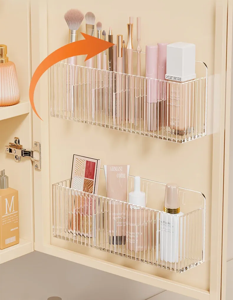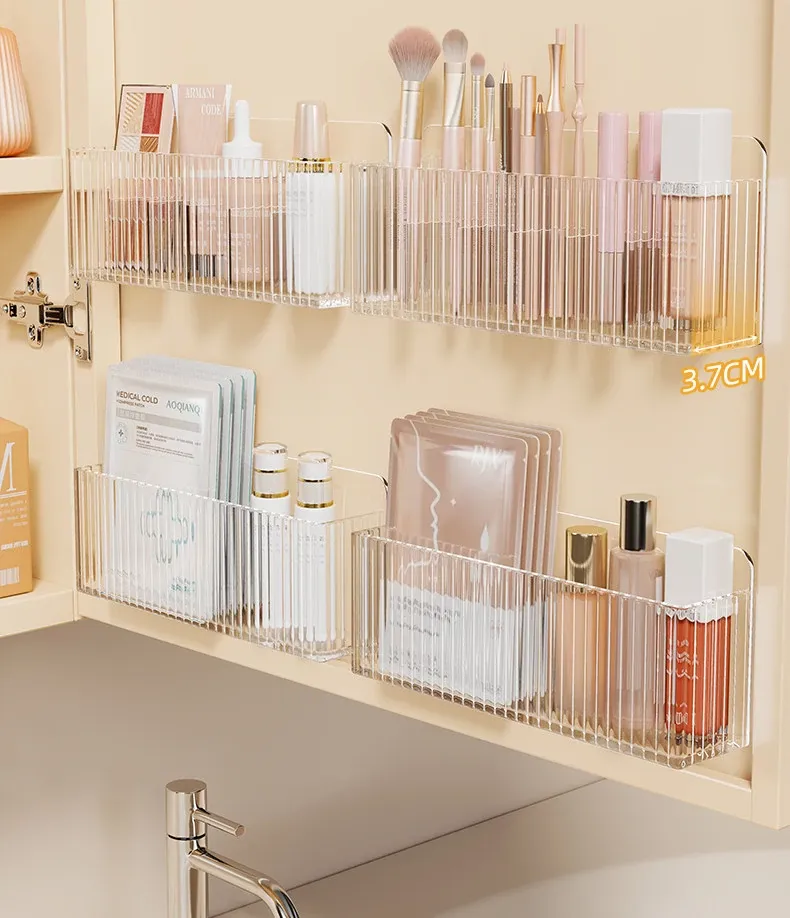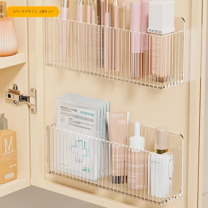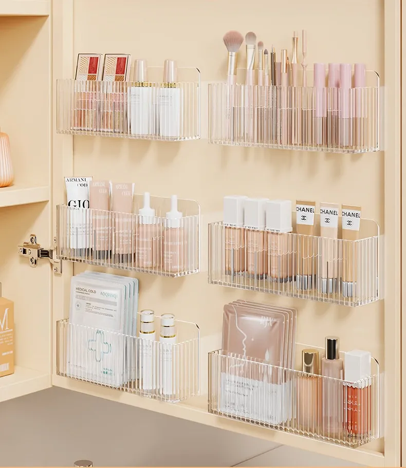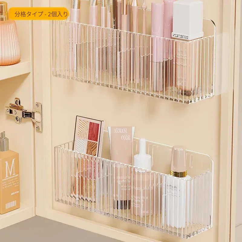 鏡台収納ボックス - アクリル製で水切れ抜群!化粧品やスキンケア用品を整理整頓。多機能で、壁掛け可能なデザインでバスルームをスッキリ!あなたの美容空間を華やかに演出します。