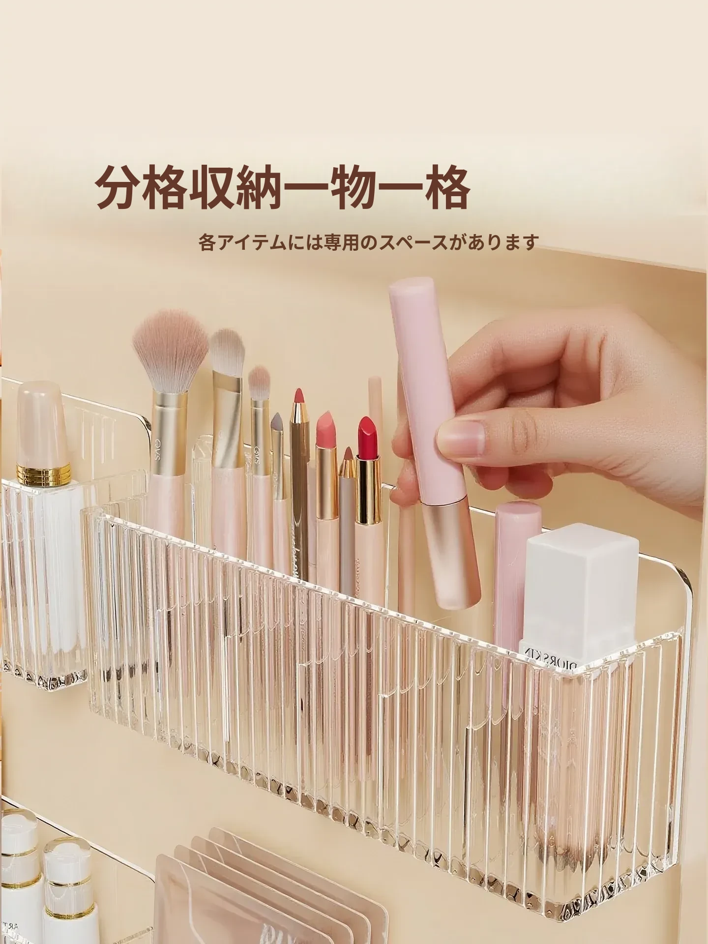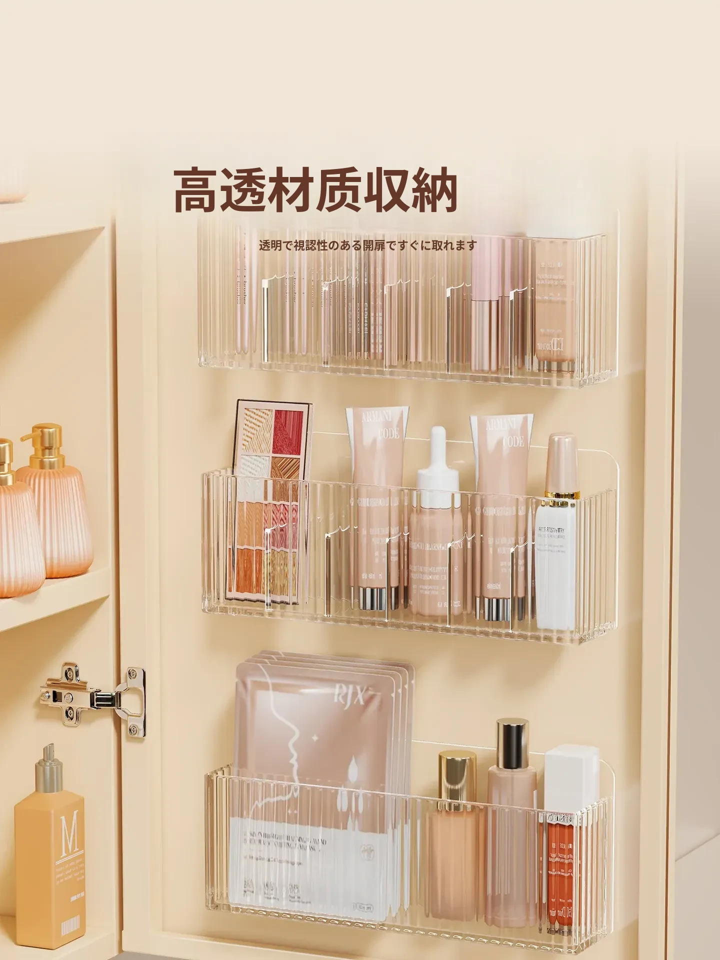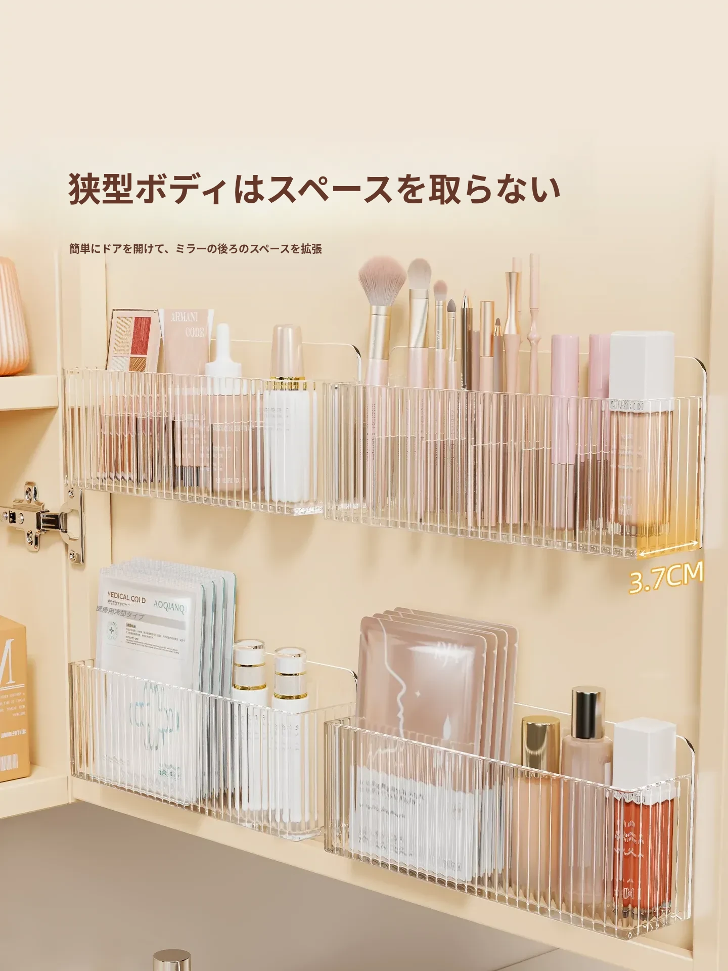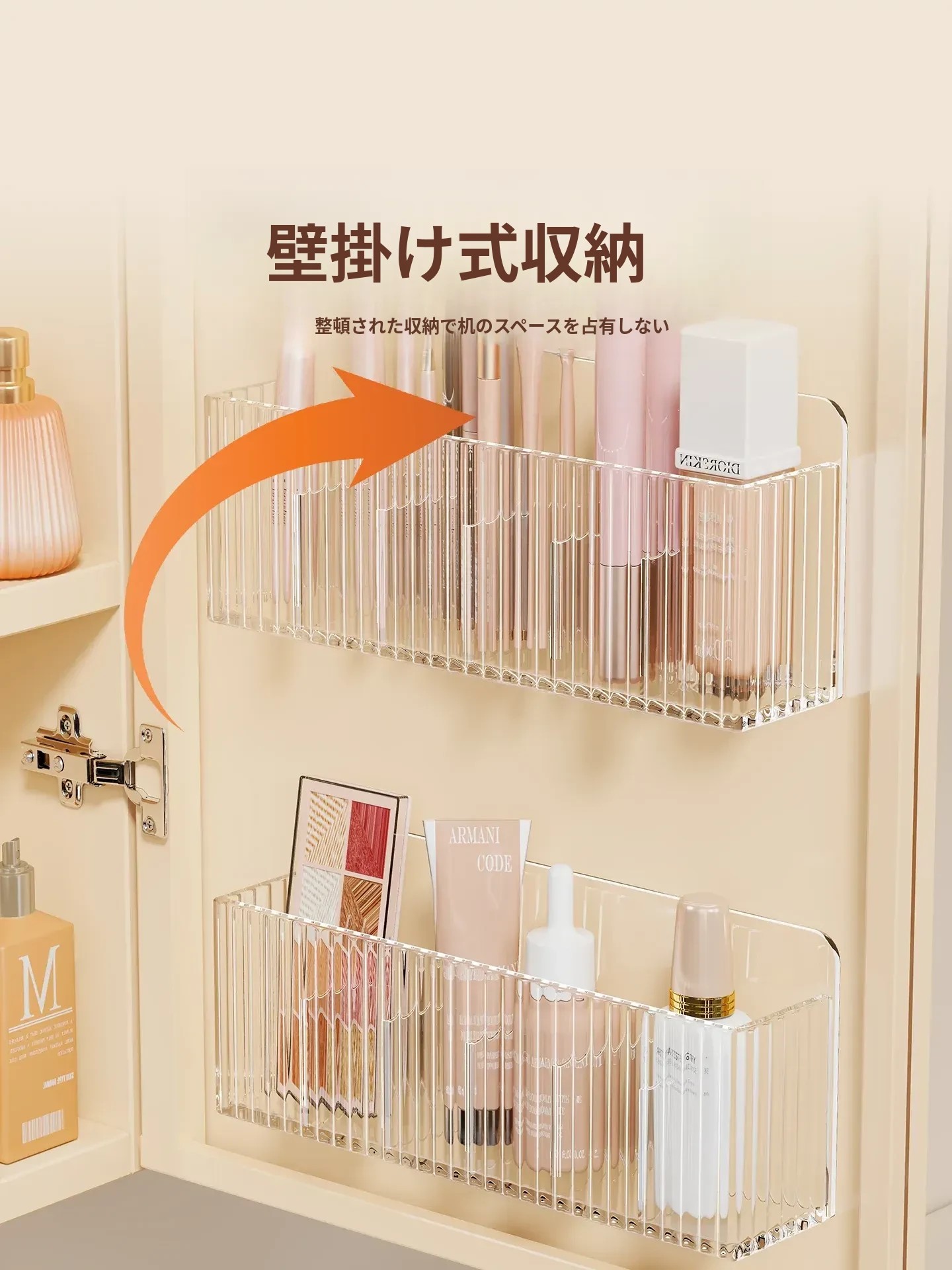 鏡台収納ボックス - アクリル製で水切れ抜群!化粧品やスキンケア用品を整理整頓。多機能で、壁掛け可能なデザインでバスルームをスッキリ!あなたの美容空間を華やかに演出します。