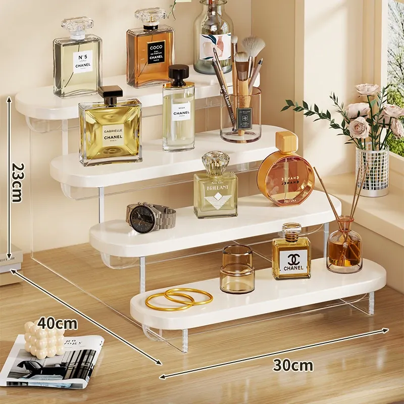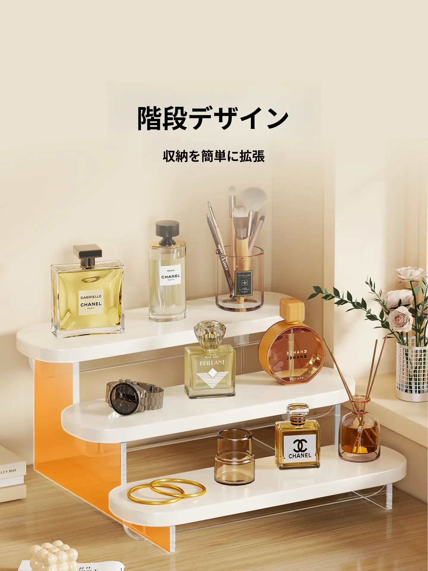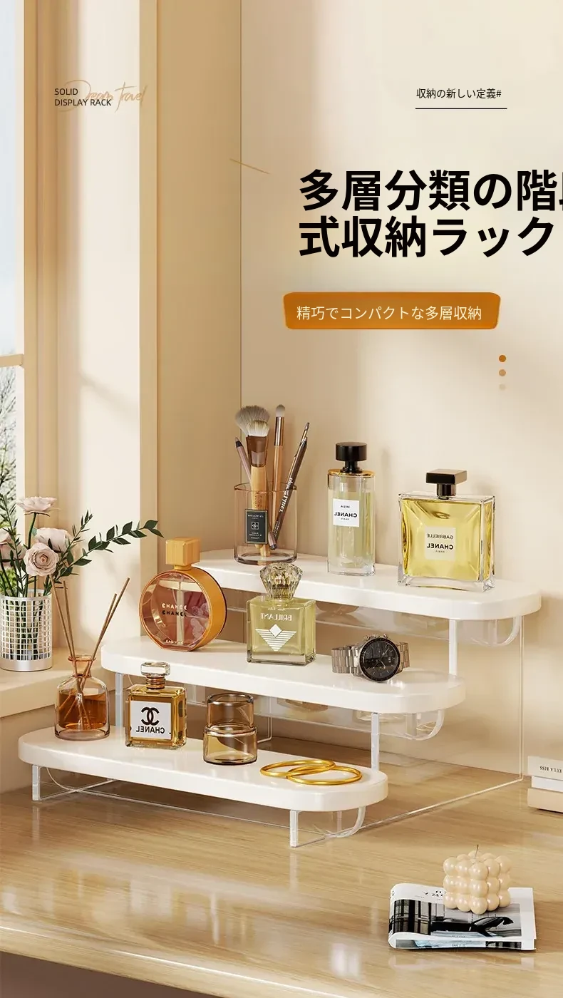 アクリル香水ディスプレイスタンド - 高級化粧品収納ラック!多層階段式デザインで、デスクや玄関を美しく彩り、スキンケア商品をスタイリッシュに整理。あなたの化粧品コレクションを引き立てる必需品!