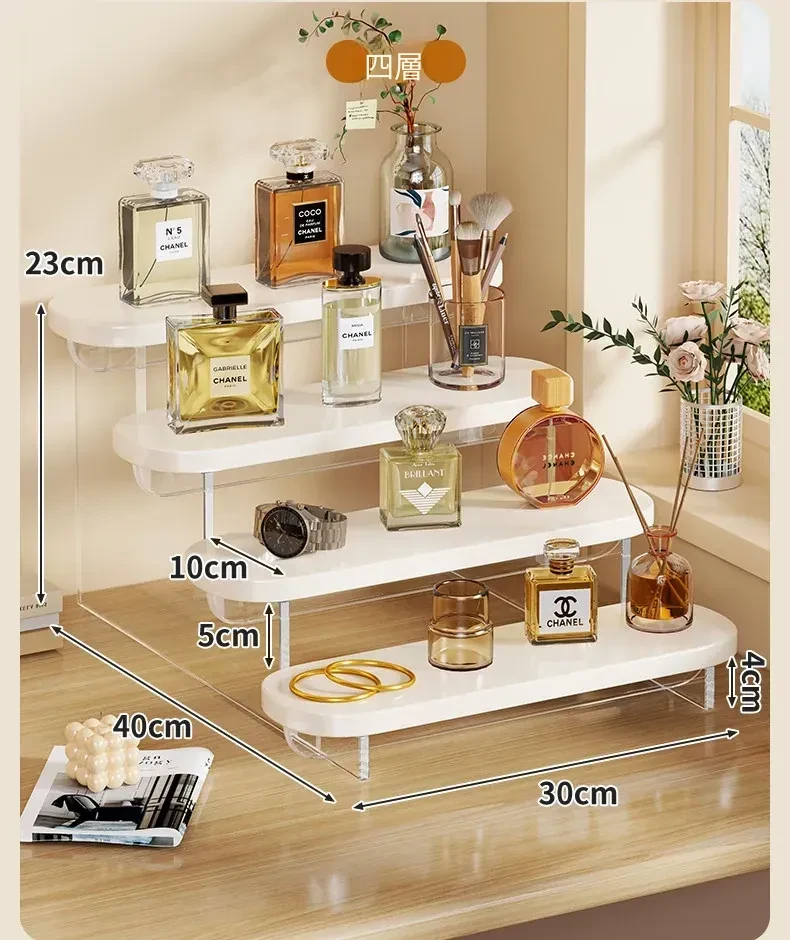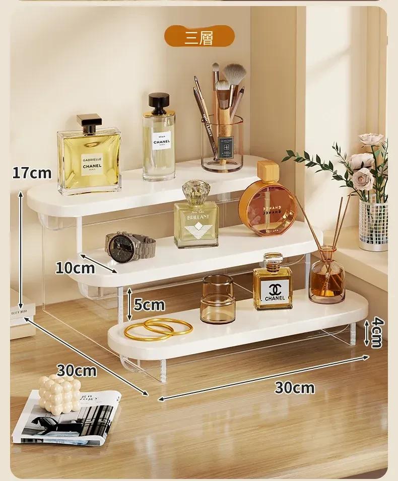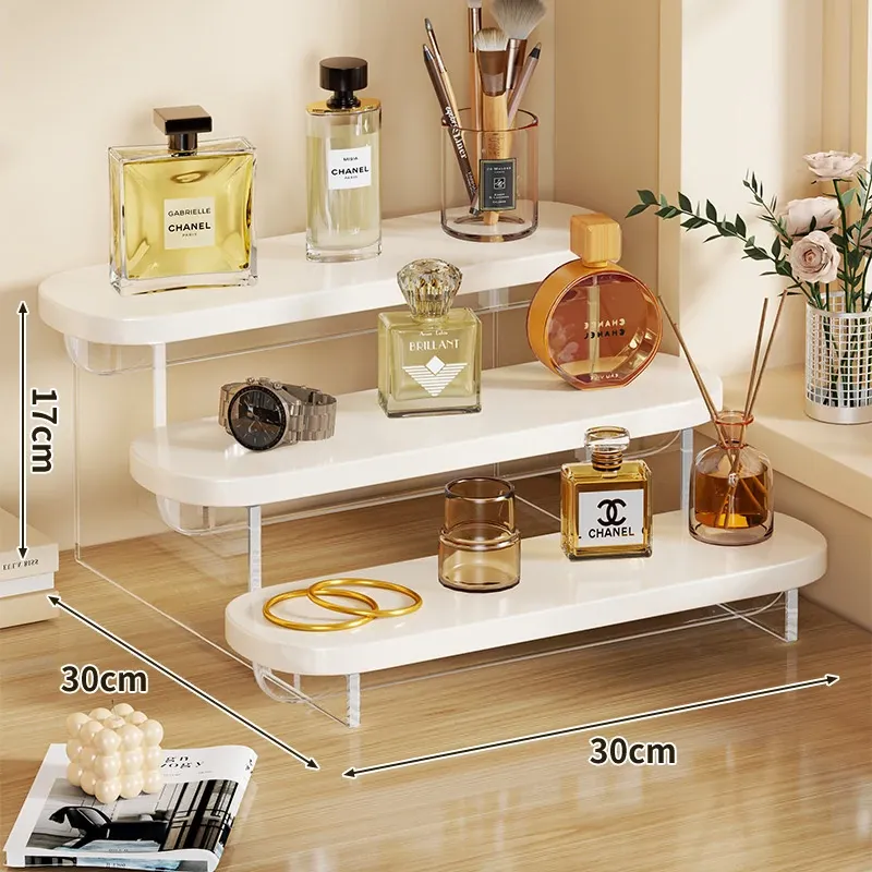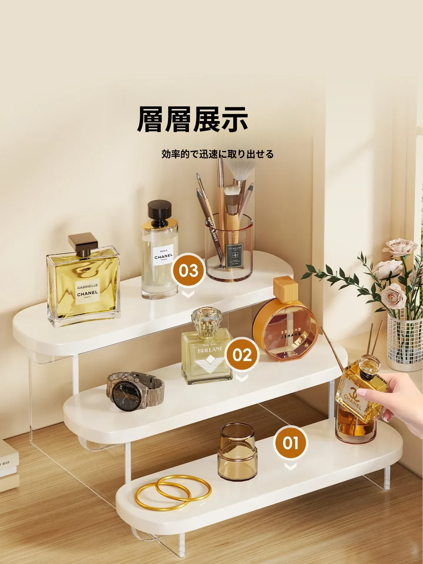 アクリル香水ディスプレイスタンド - 高級化粧品収納ラック!多層階段式デザインで、デスクや玄関を美しく彩り、スキンケア商品をスタイリッシュに整理。あなたの化粧品コレクションを引き立てる必需品!