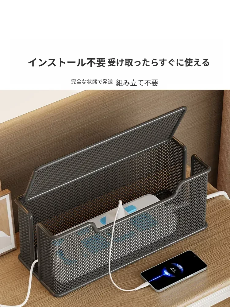 データケーブル収納ボックス 電源タップ 卓上固定器 スマホスタンド リビング用配線整理ラック おしゃれで便利なデザインで、お部屋をスッキリ整頓!