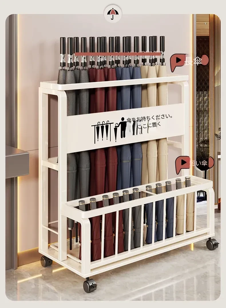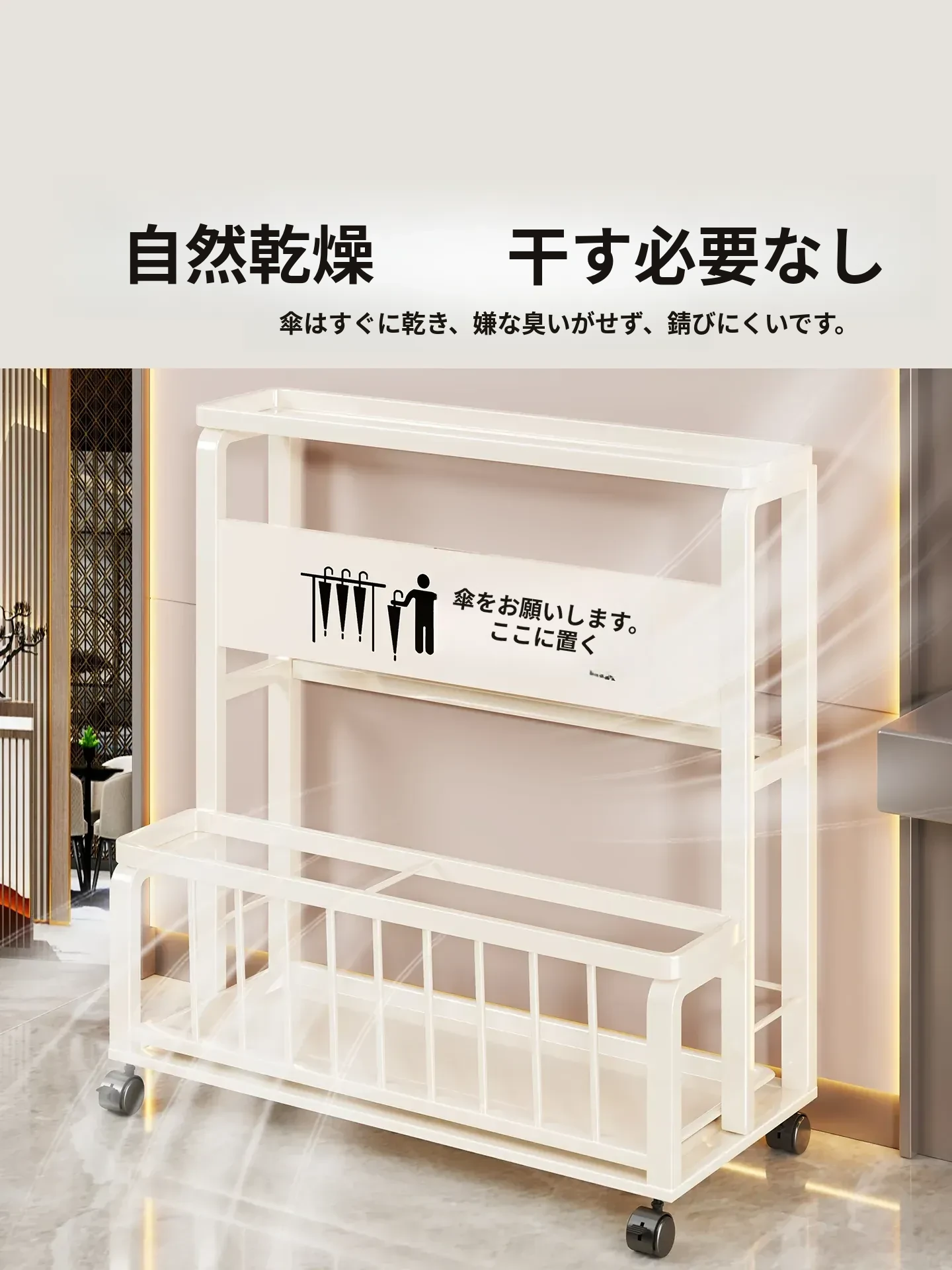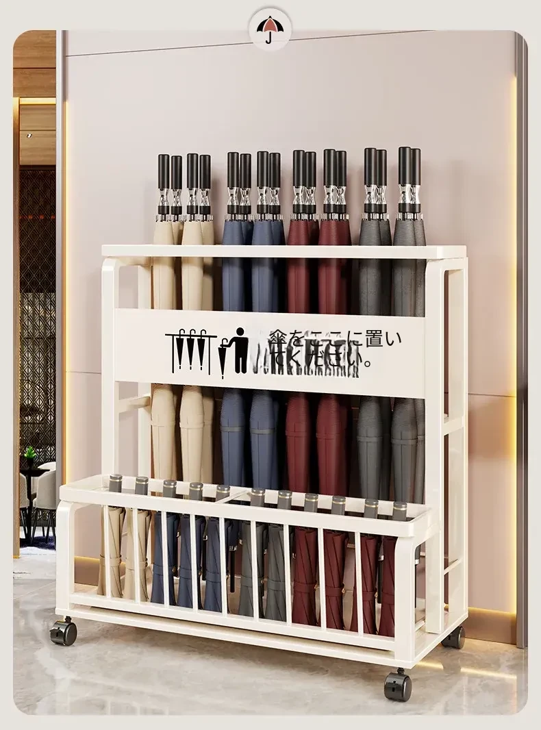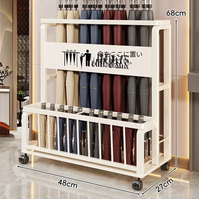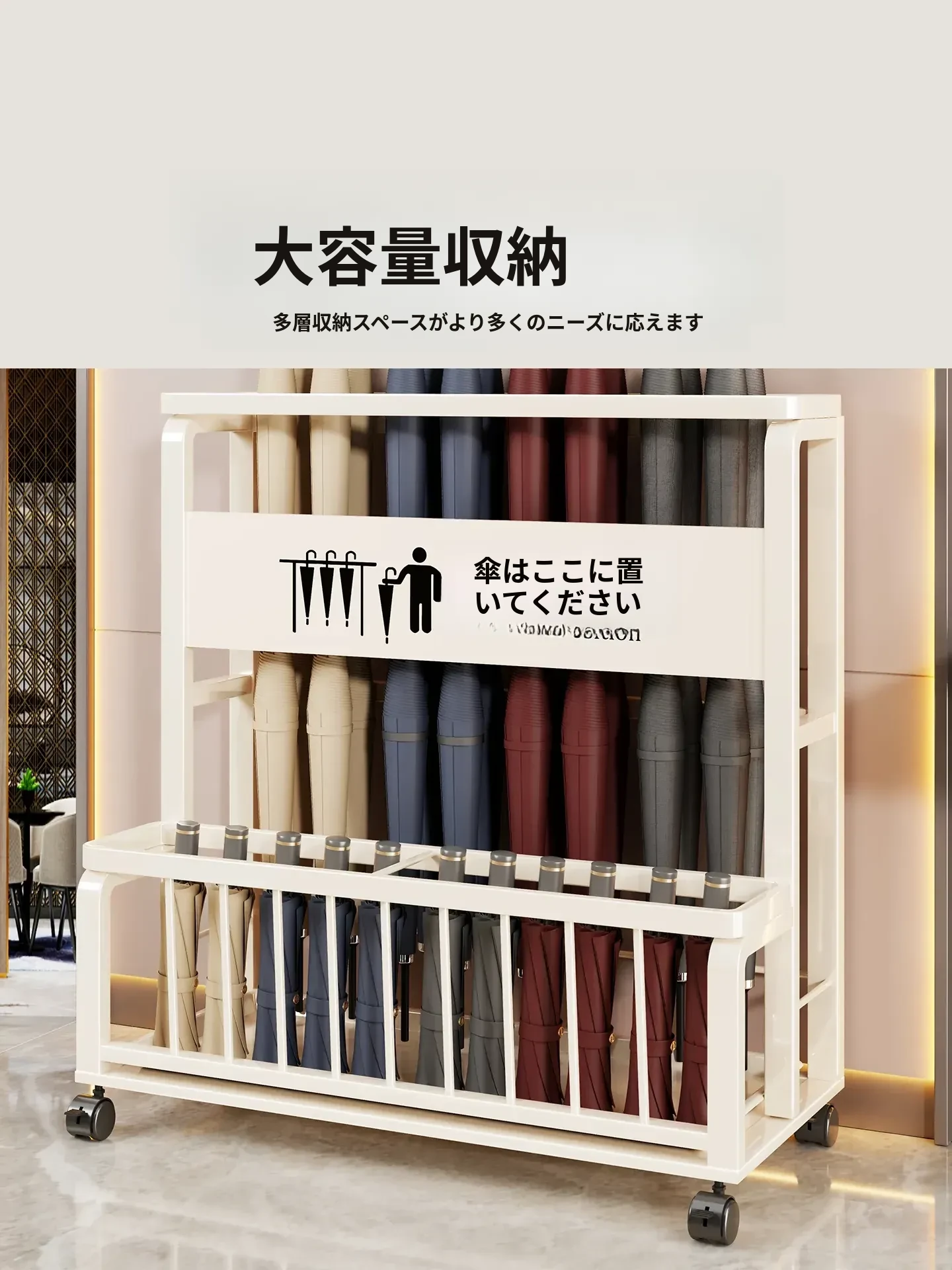 商用大容量雨伞収納ラック - 教育施設向け多層傘収納スタンド、雨水排水機能付きで清潔に保つ!