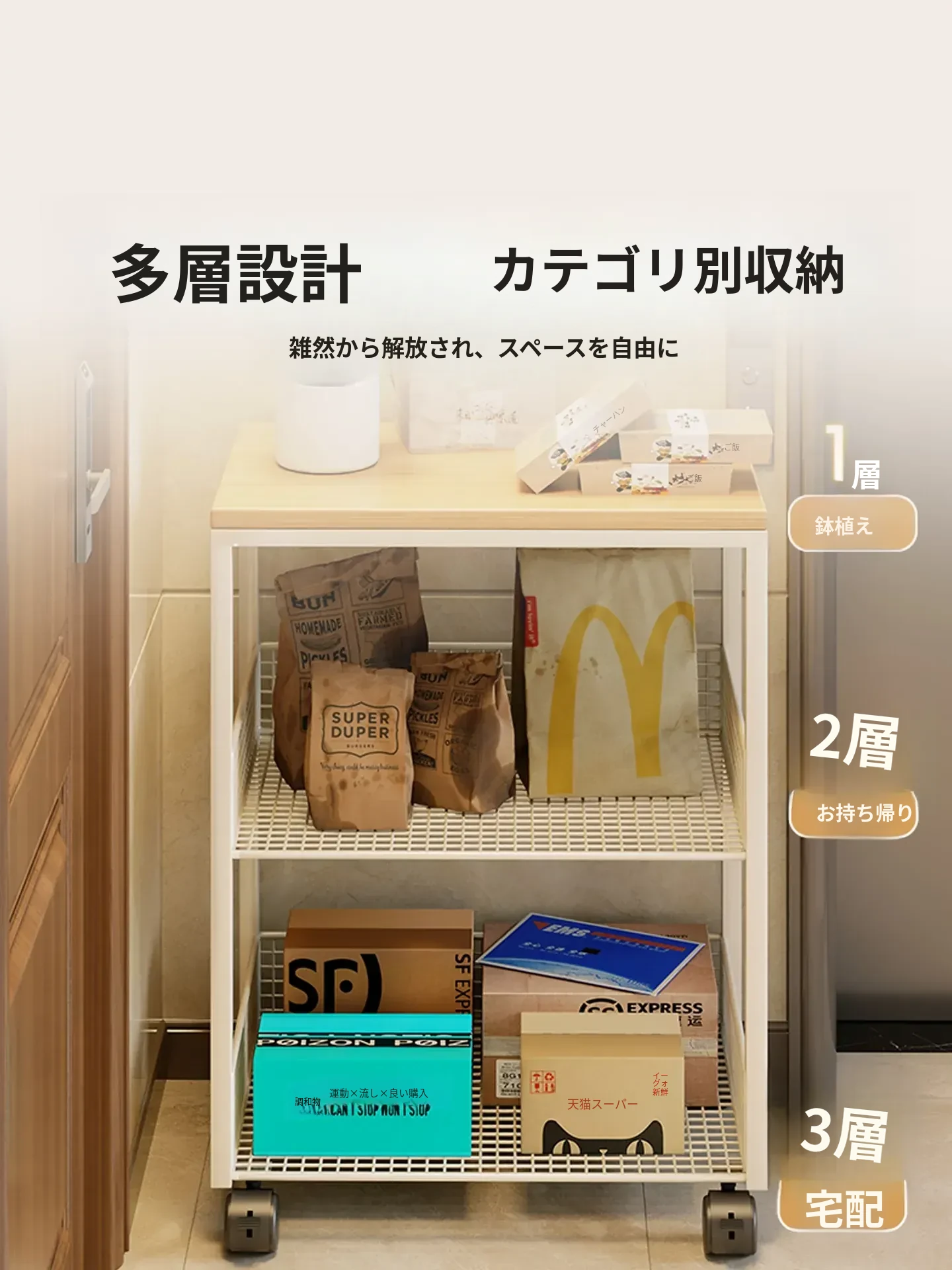 玄関にぴったり!多段式宅配ボックス&小物収納ラック - スリムな隙間にフィットし、便利な整理スペースを提供します。快適な生活空間を実現!