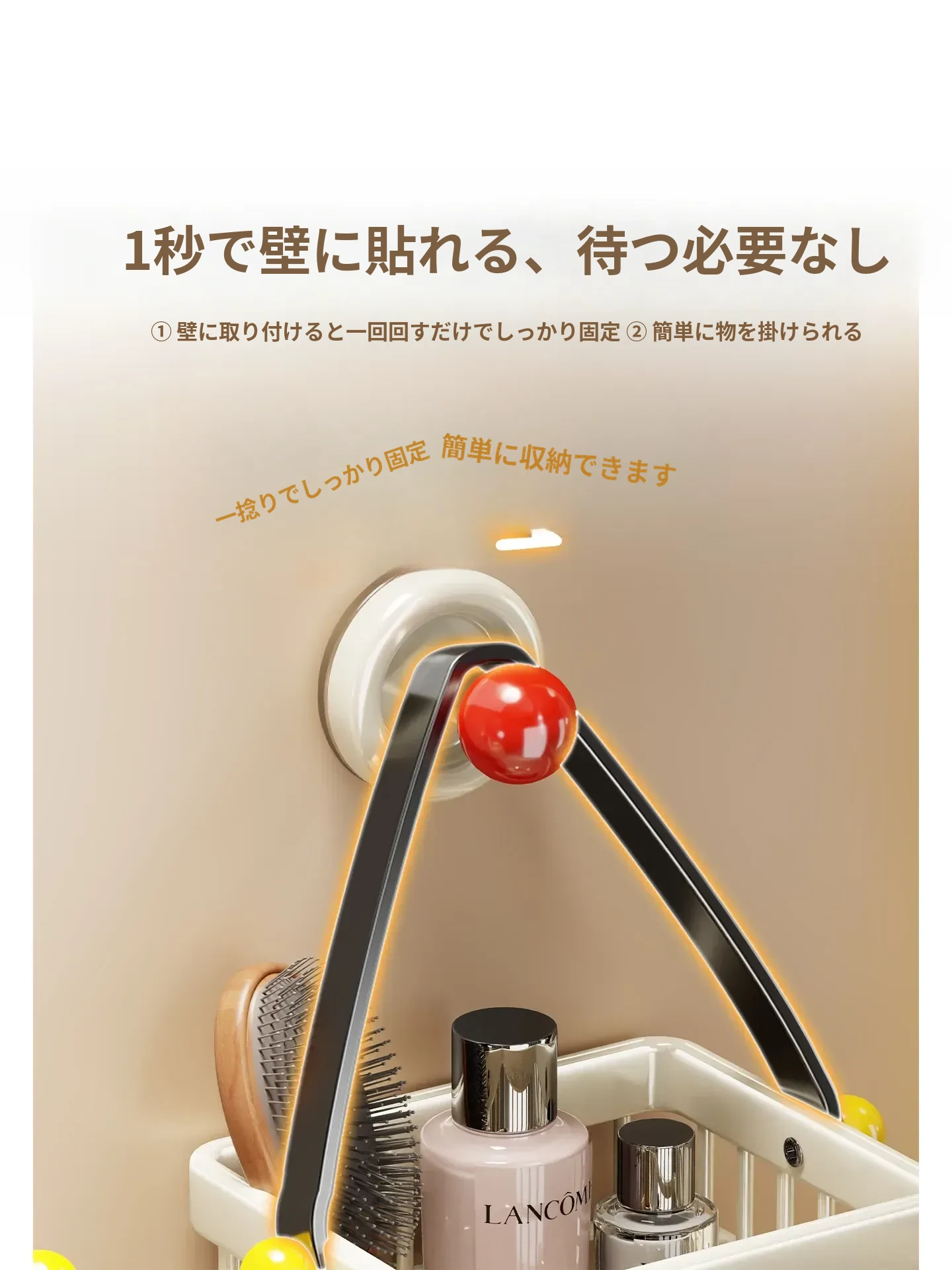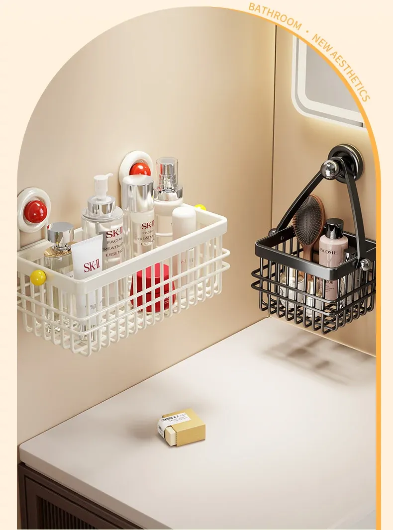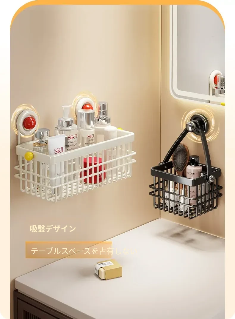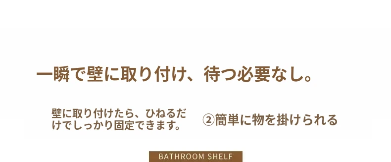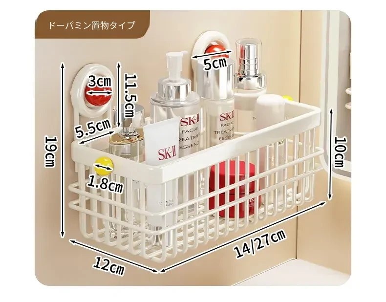 ドーパミン衛生間用収納ラック - ノーネイルで取り付け簡単!高級感あふれる壁掛け式化粧品ストレージ。バスルームをスッキリ整理し、スタイリッシュに演出!