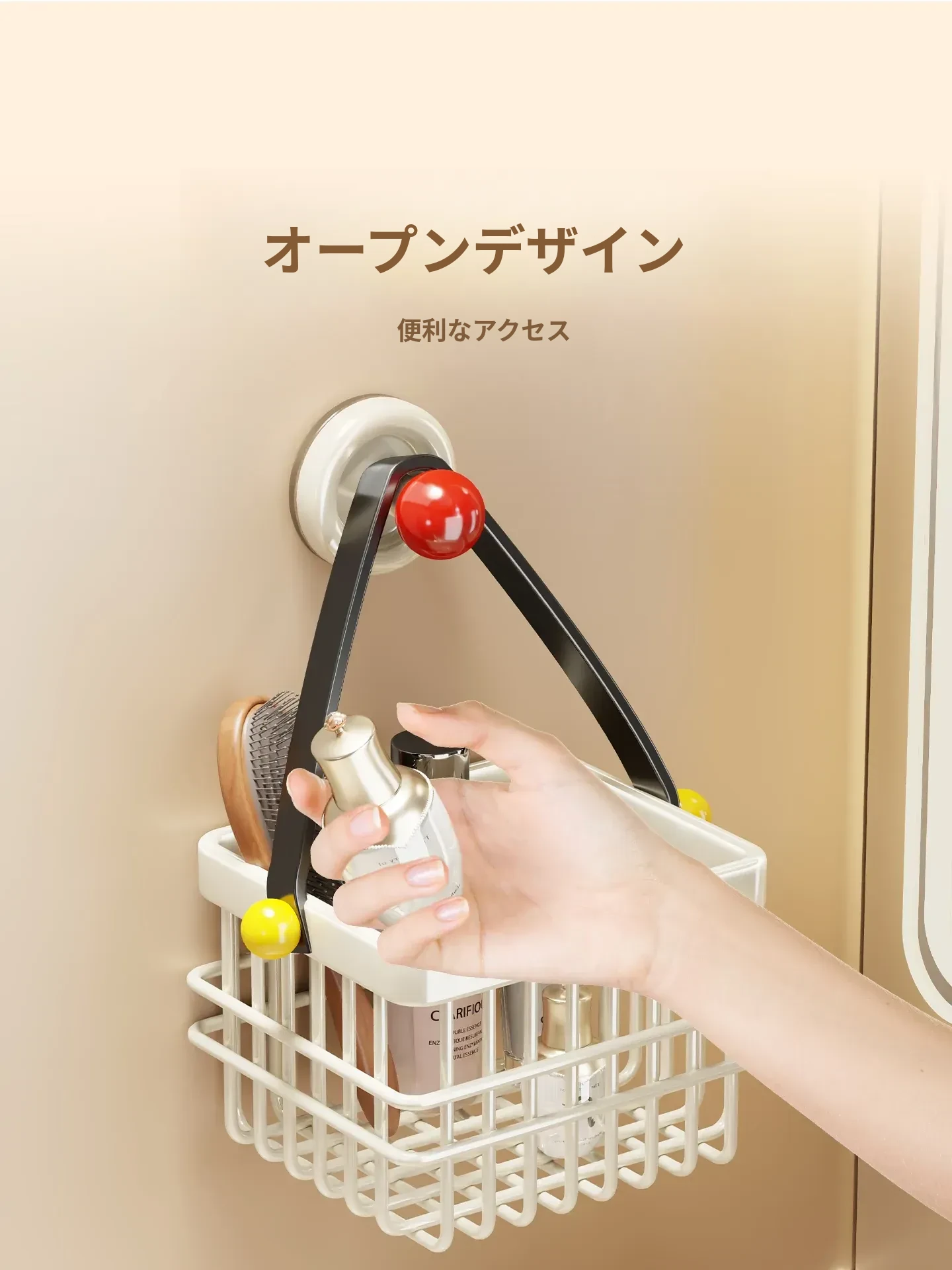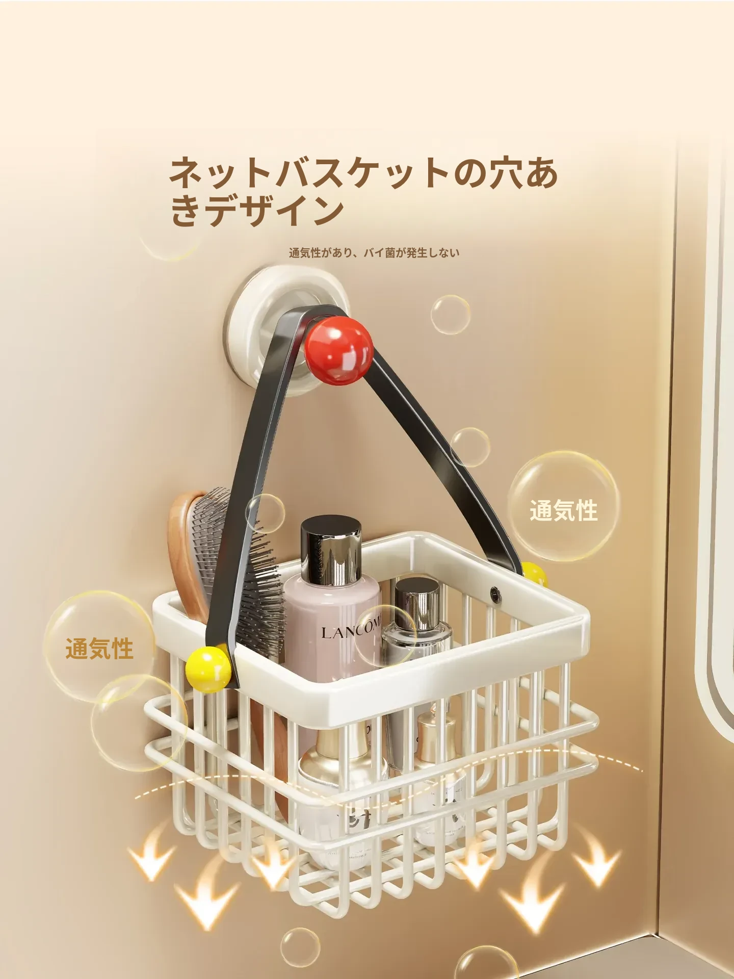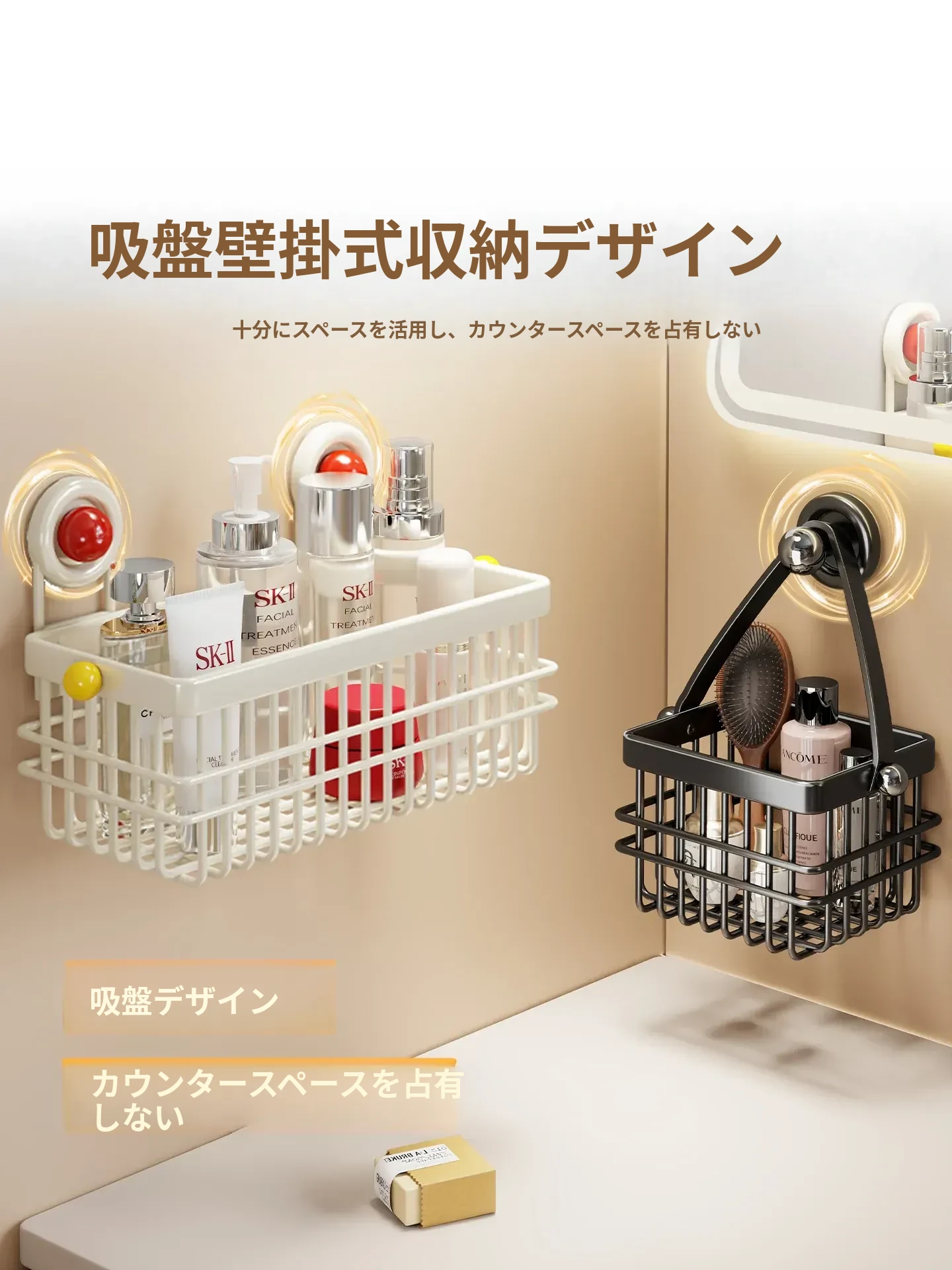 ドーパミン衛生間用収納ラック - ノーネイルで取り付け簡単!高級感あふれる壁掛け式化粧品ストレージ。バスルームをスッキリ整理し、スタイリッシュに演出!