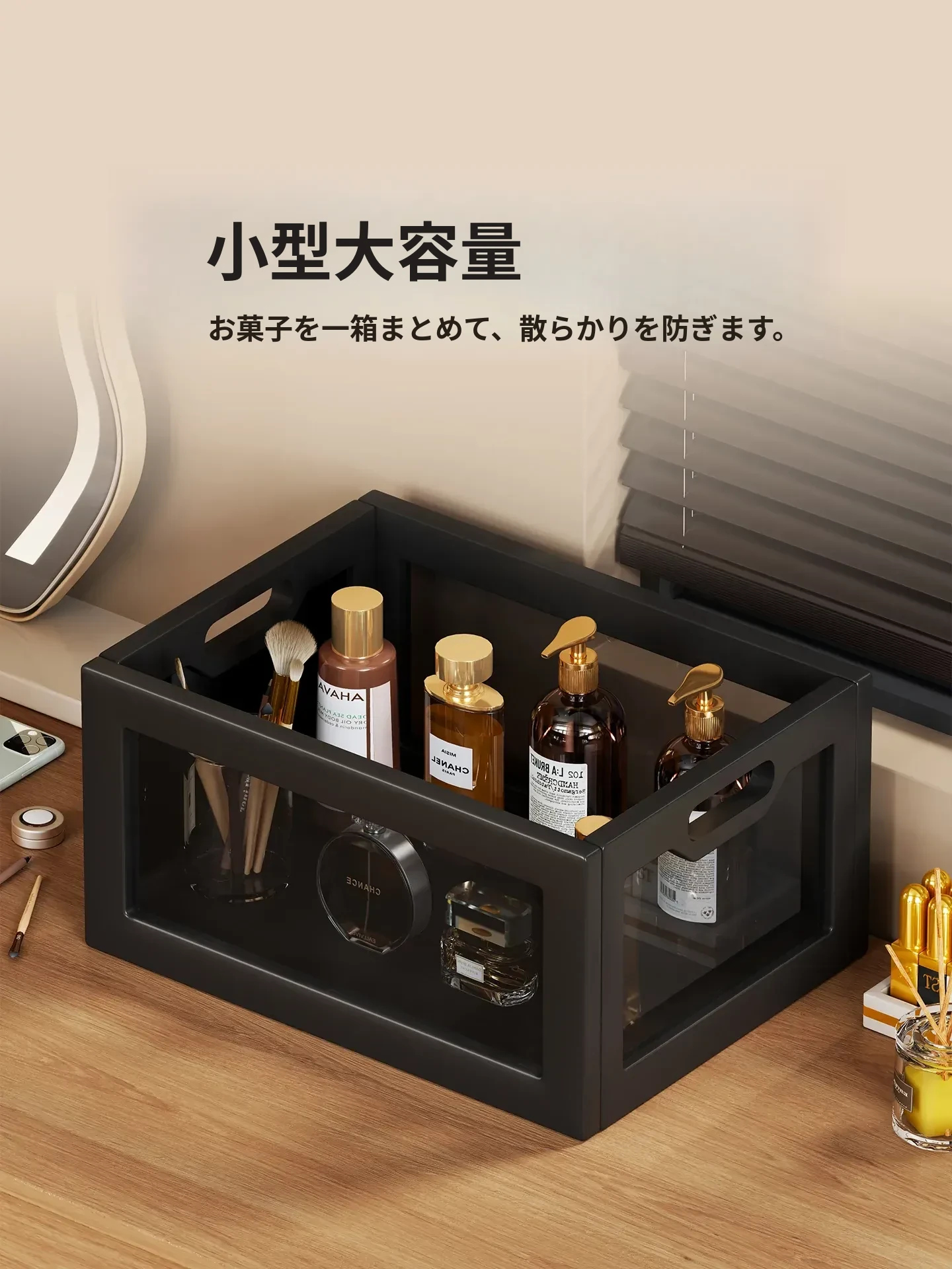 デスクトップ化粧品収納ラック - 高級感溢れるメイク台用香水ボックス!アクリル製のスキンケアアイテムやお菓子を美しく整理整頓できます。おしゃれで実用的な収納で、あなたのビューティータイムを格上げ!