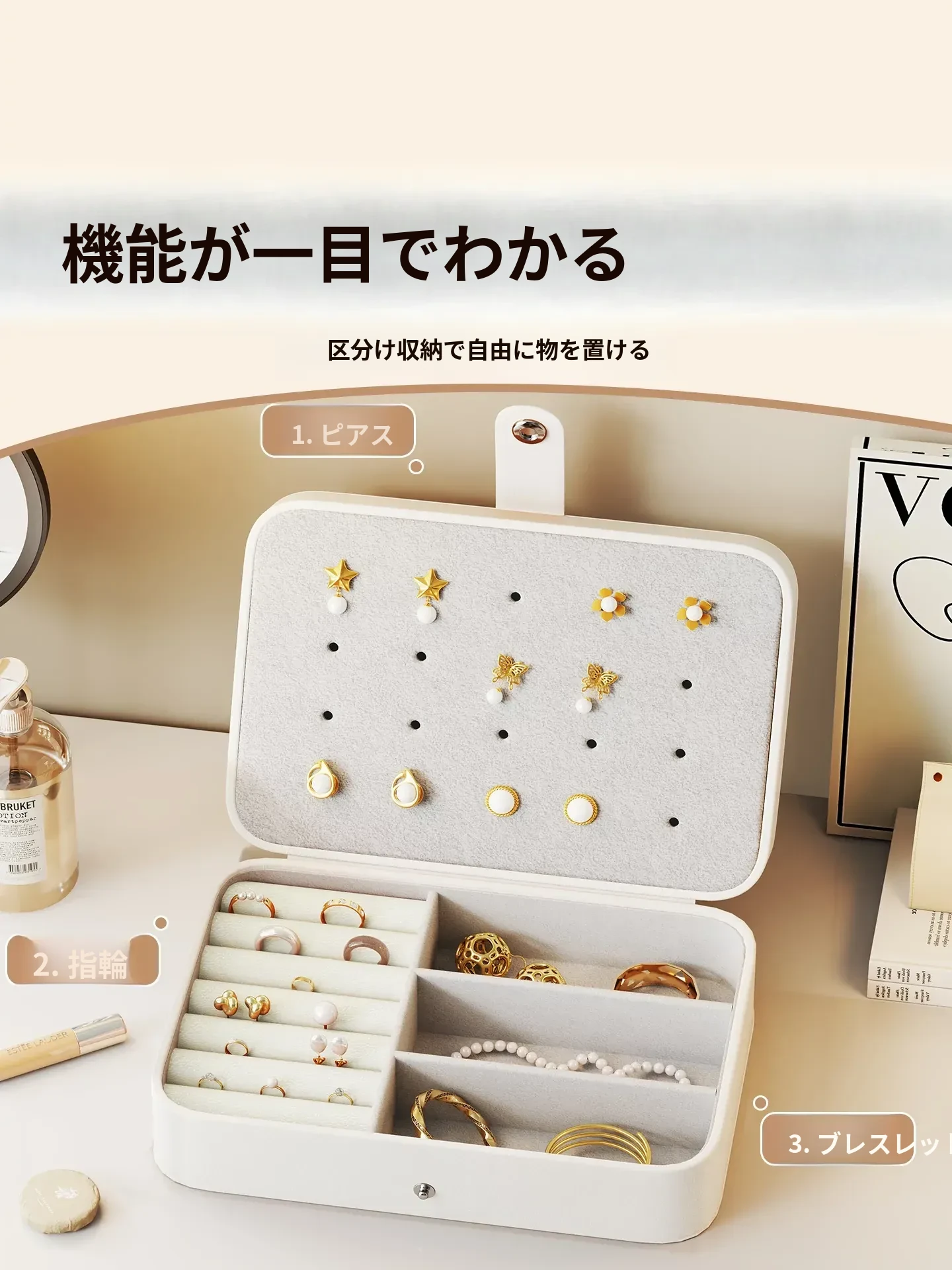 高級感溢れるジュエリーボックス - 繊細なイヤリング、ピアス、ネックレス、ブレスレット、リングを美しく収納!ゴールドジュエリーにもぴったりなデザインで、あなたの大切な宝物を守ります。