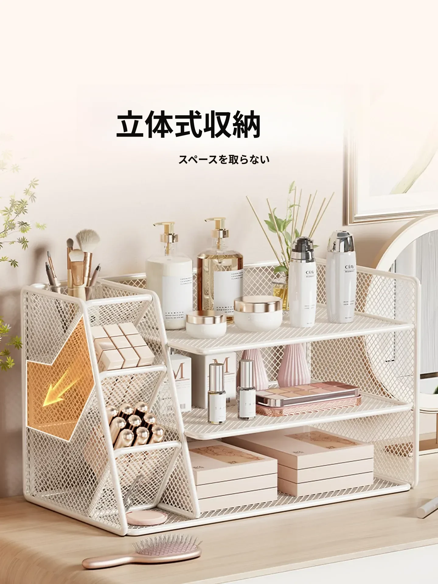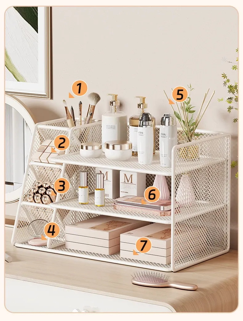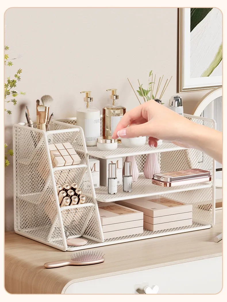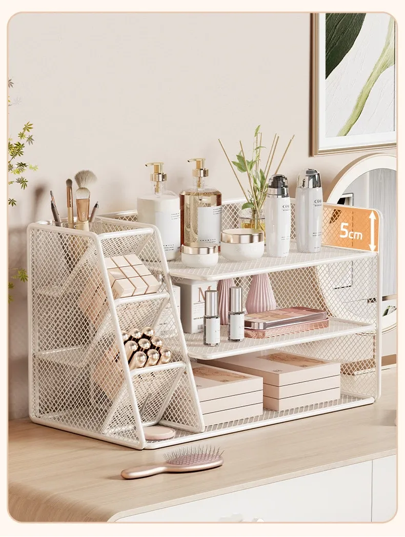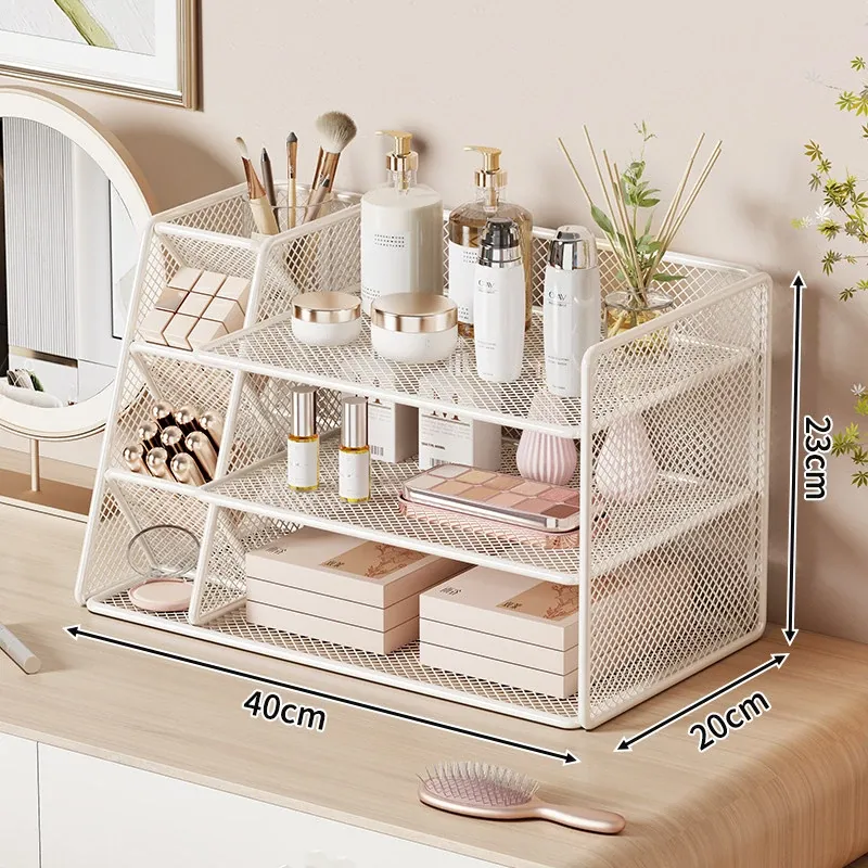 女子のための化粧品収納ラック - おしゃれなデザインのデスクトップ本棚!メイクアップテーブルに最適な多層収納ボックスで、整理整頓も簡単!あなたの寝室をスタイリッシュに演出します。