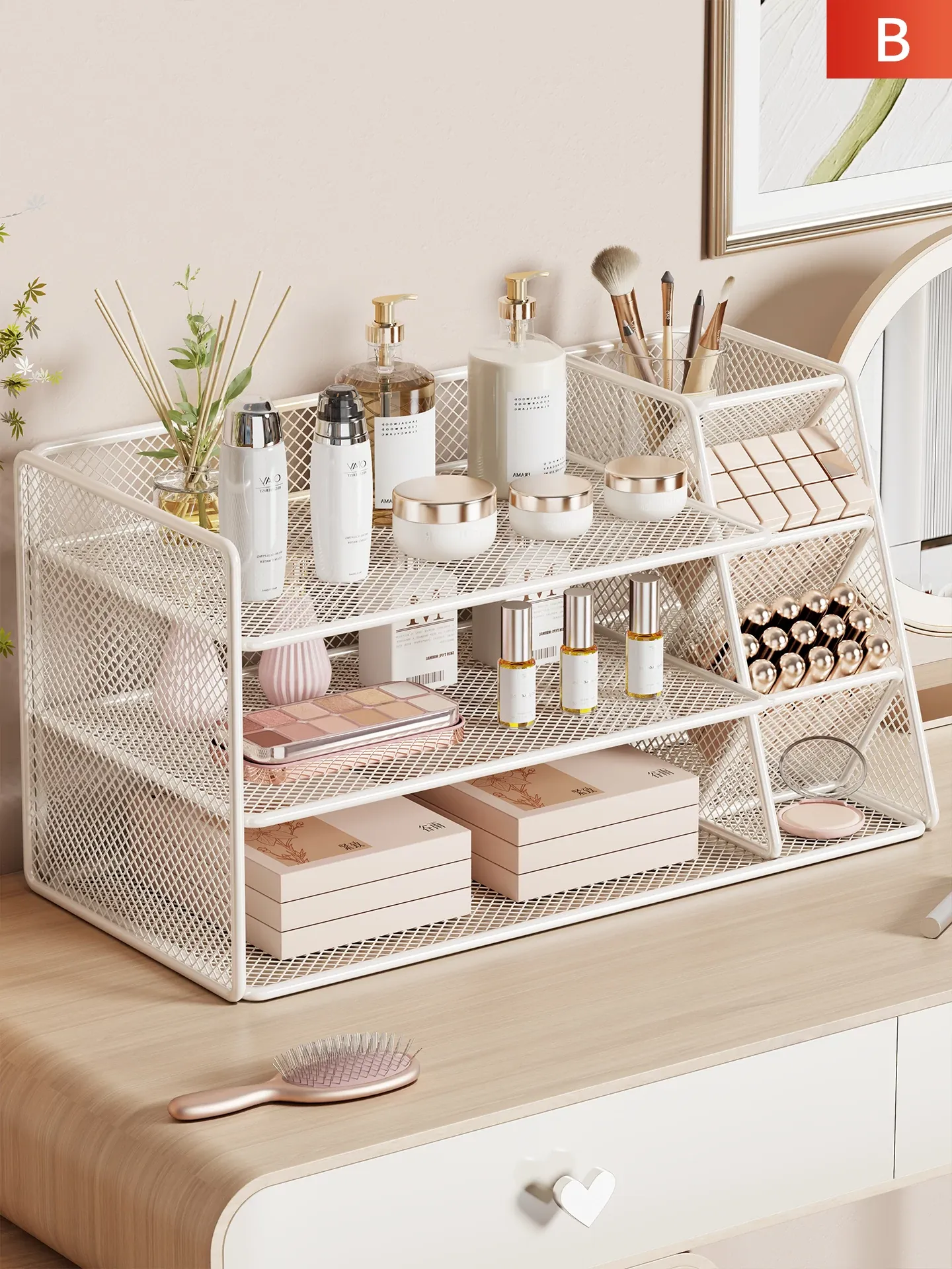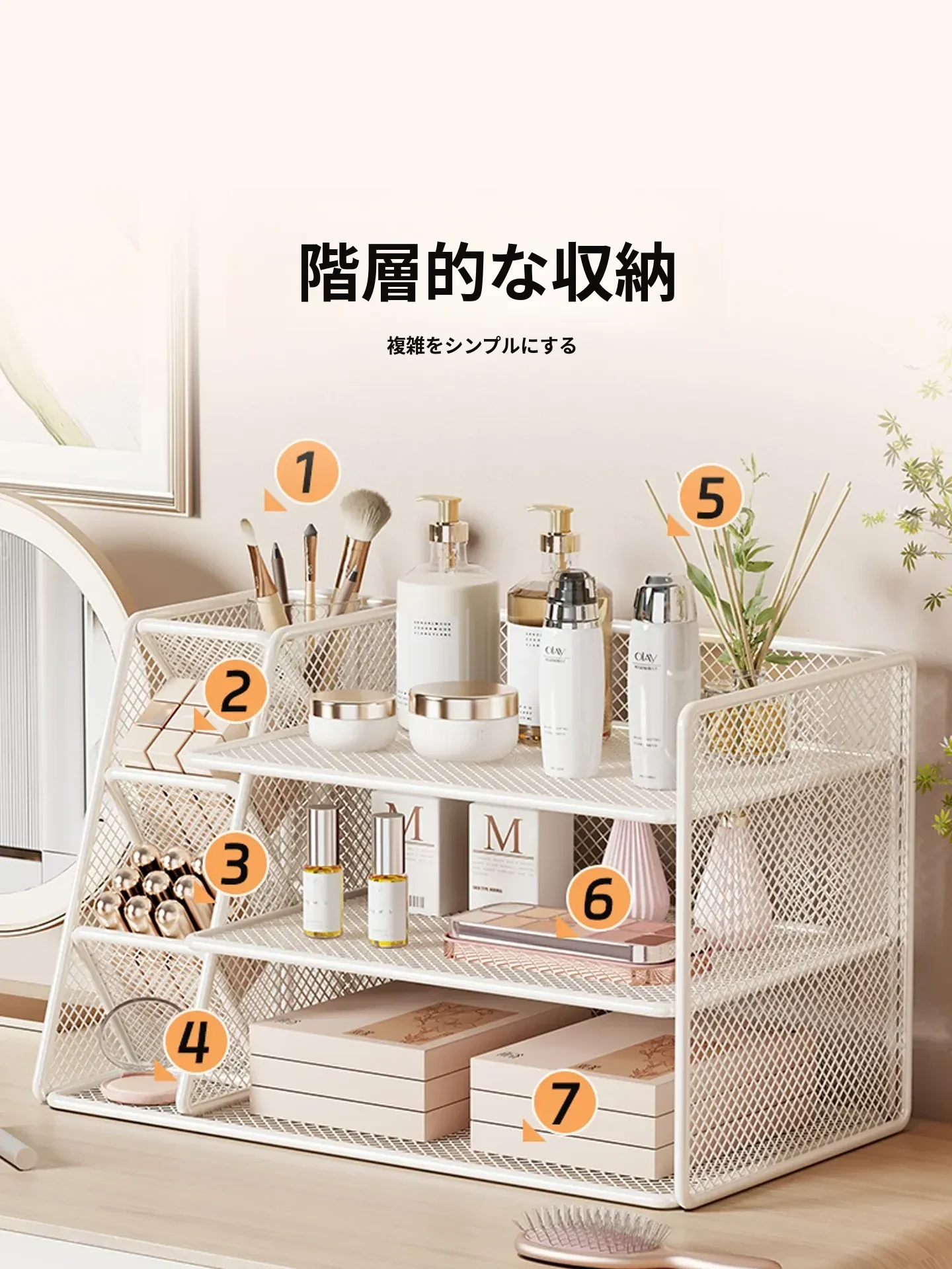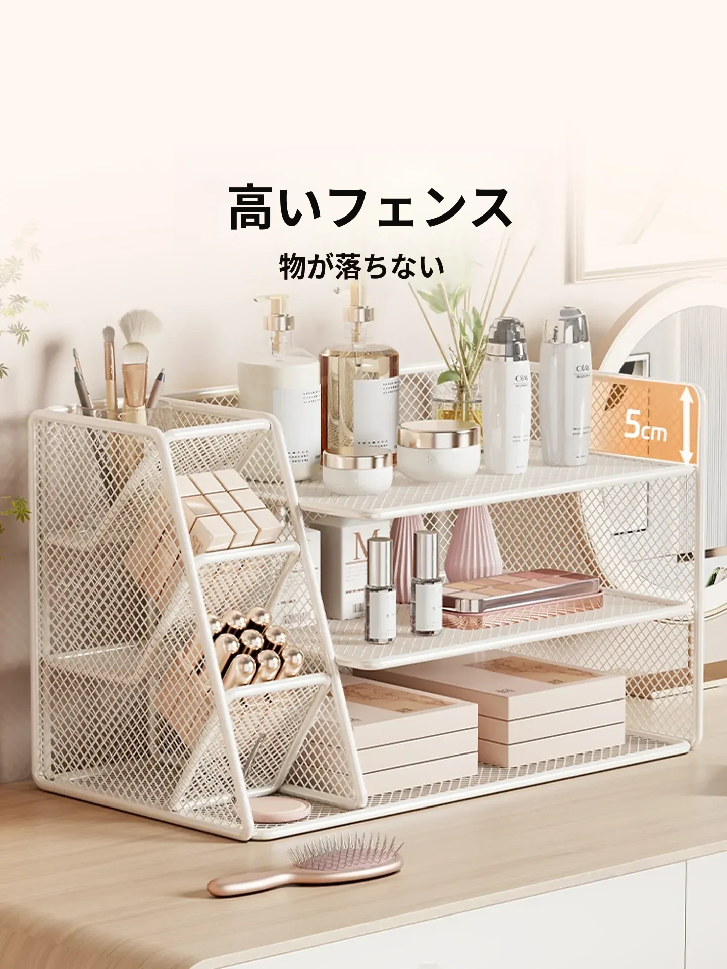 女子のための化粧品収納ラック - おしゃれなデザインのデスクトップ本棚!メイクアップテーブルに最適な多層収納ボックスで、整理整頓も簡単!あなたの寝室をスタイリッシュに演出します。