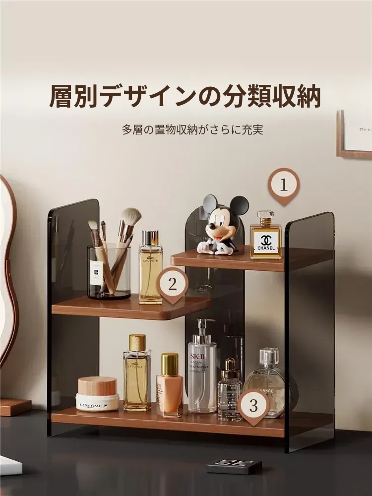 高級感溢れる多層化粧品収納ボックス - 洗面台に最適!スキンケアアイテムや水筒もすっきり整理できるおしゃれな収納ラック!