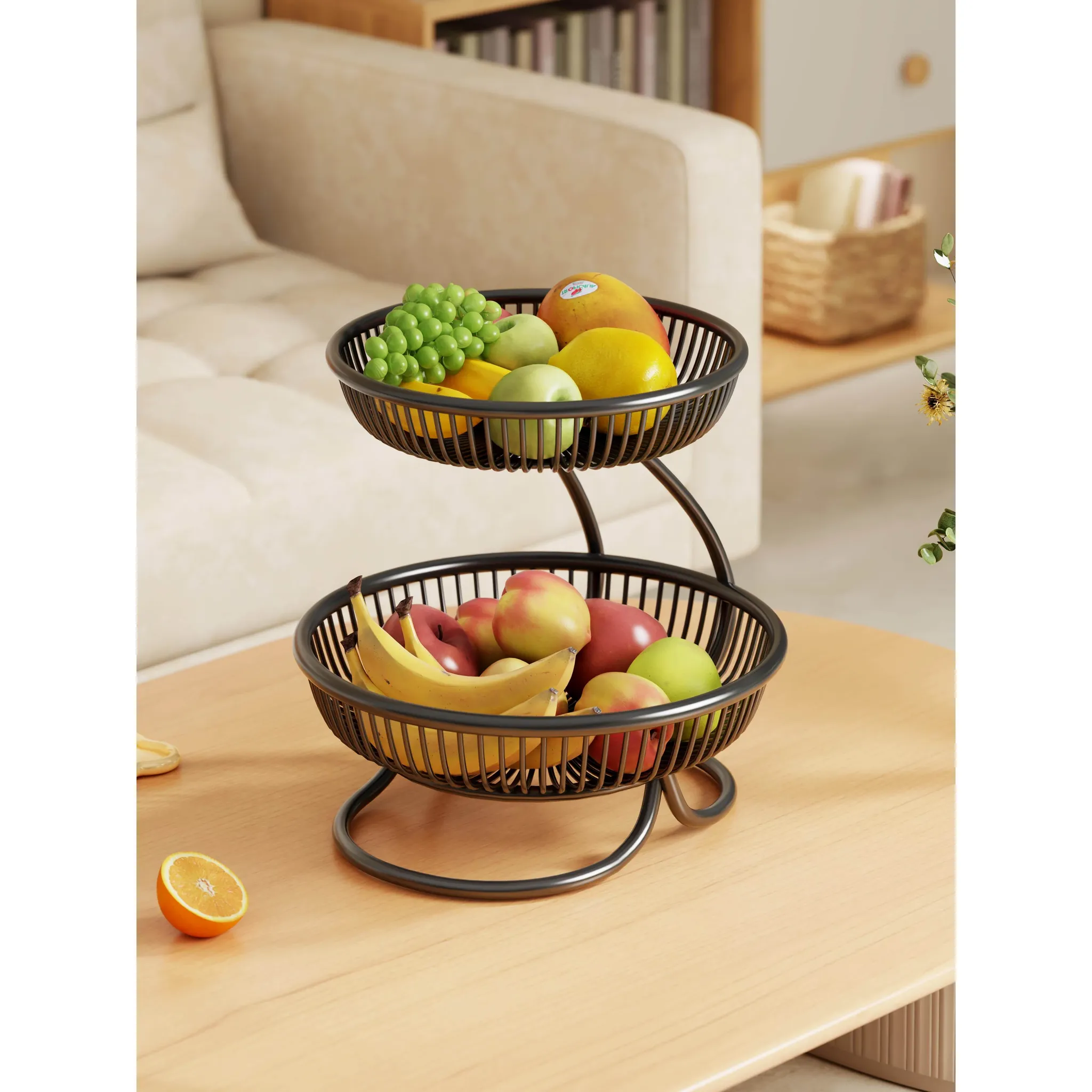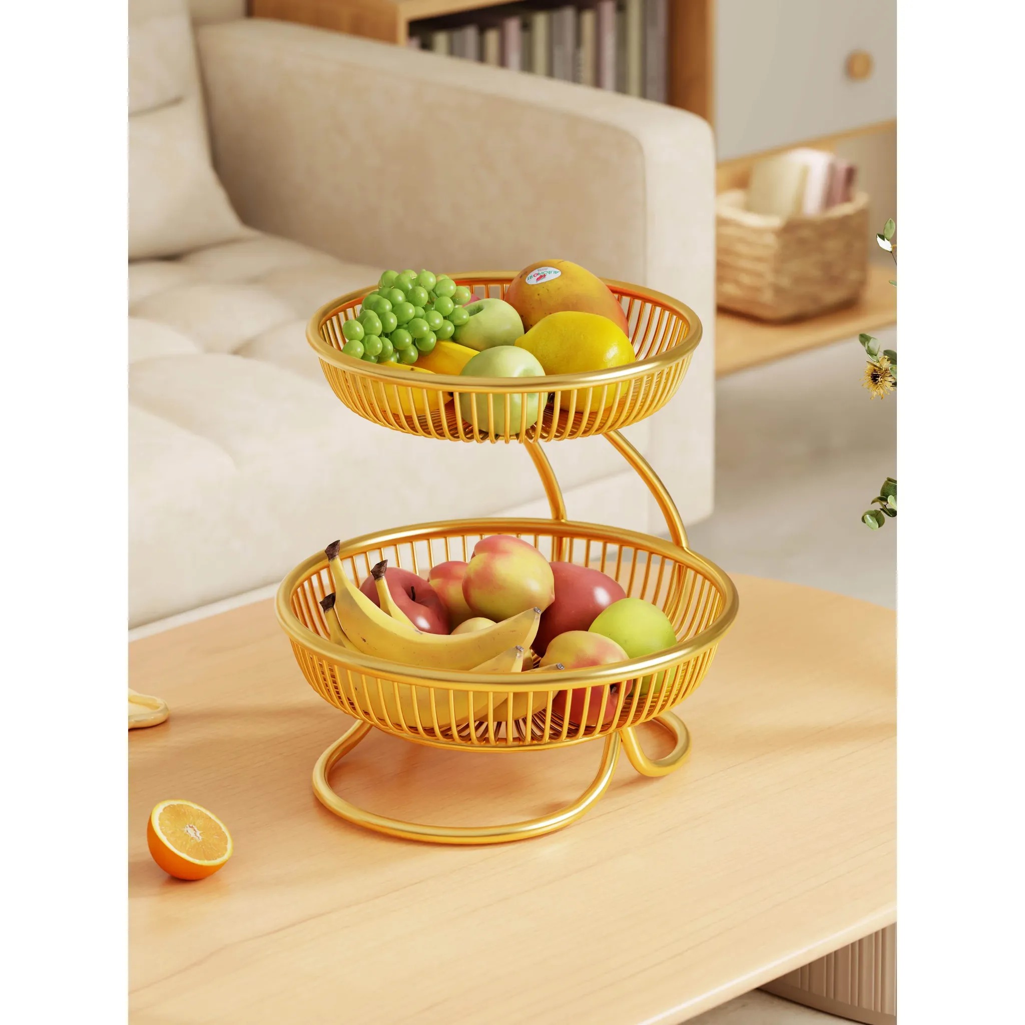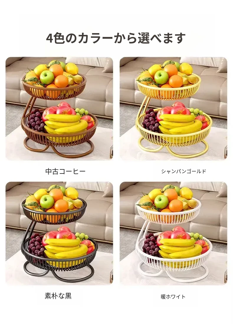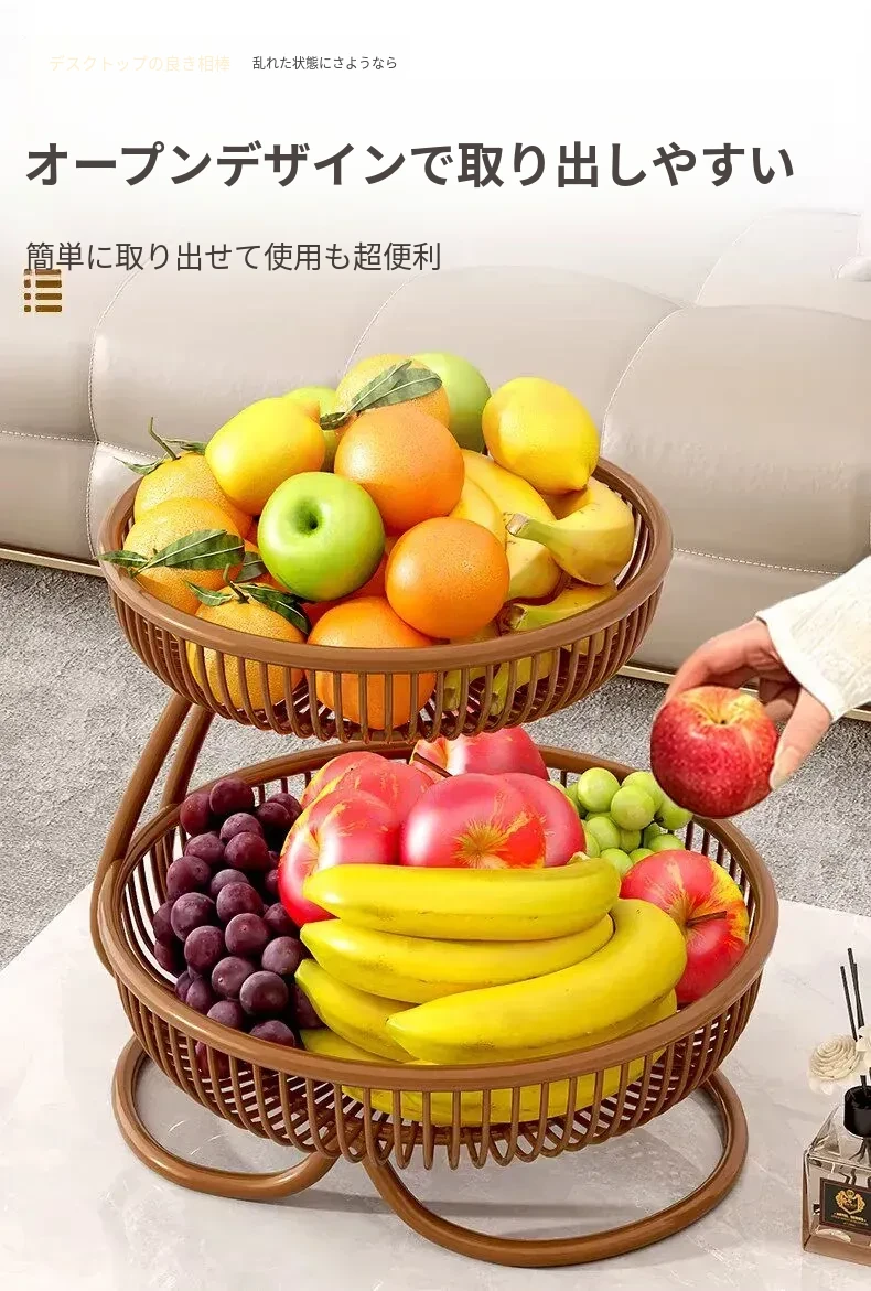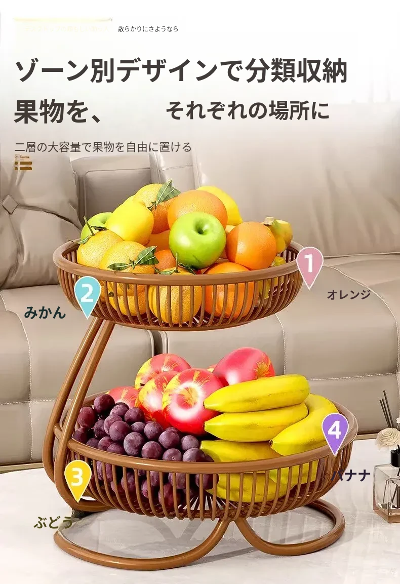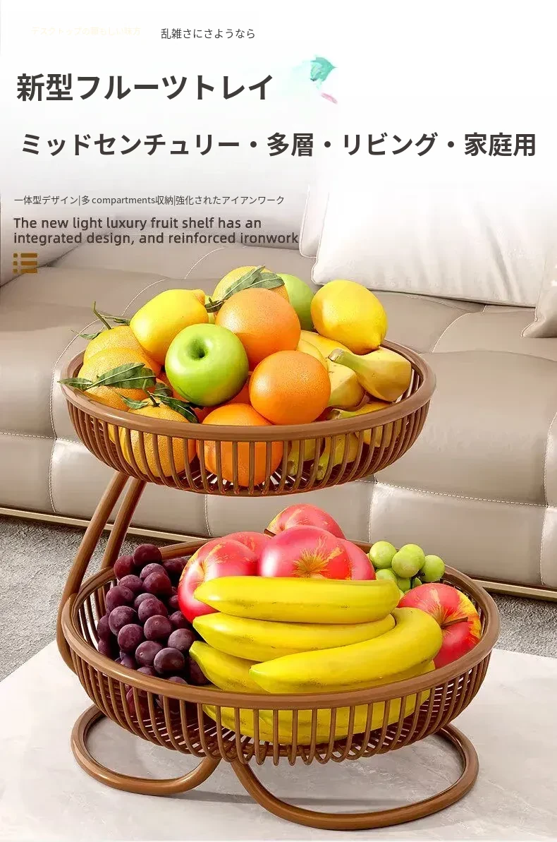 贅沢感溢れる多層フルーツバスケット - リビングルームにぴったりな高級おしゃれティーブレイク用スナック&ドライフルーツディスプレイラック!
