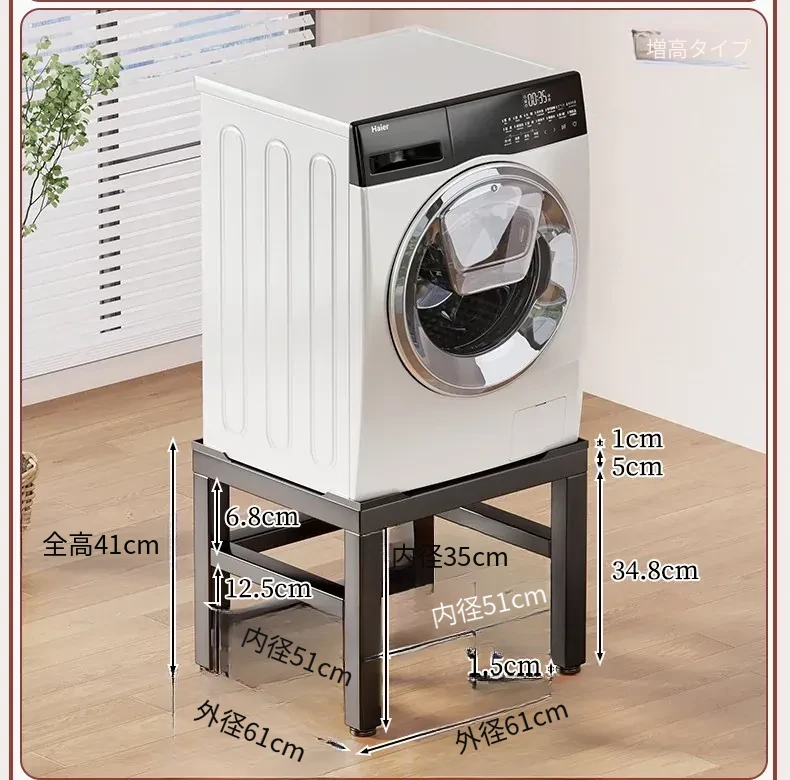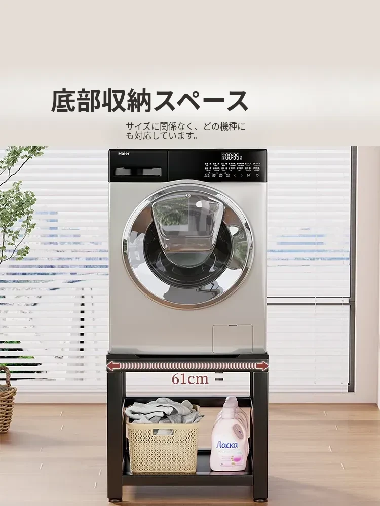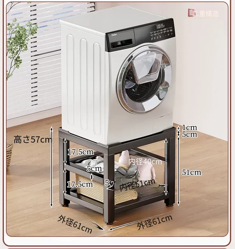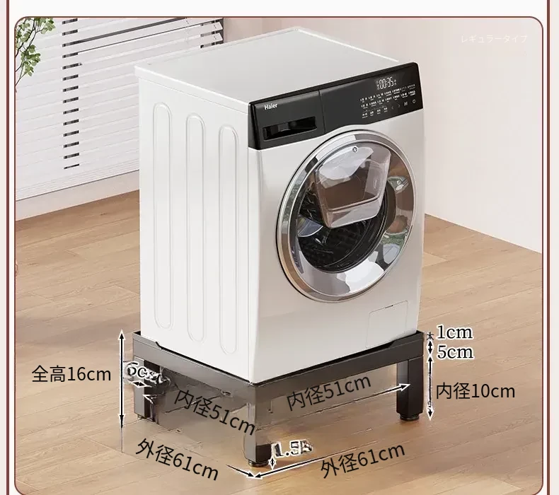 全自動洗濯機専用防振脚マット付き底座架高台 - ローリング冷蔵庫をしっかり支える実用的な収納スペース!安定性抜群で、家の中をスッキリ整理!