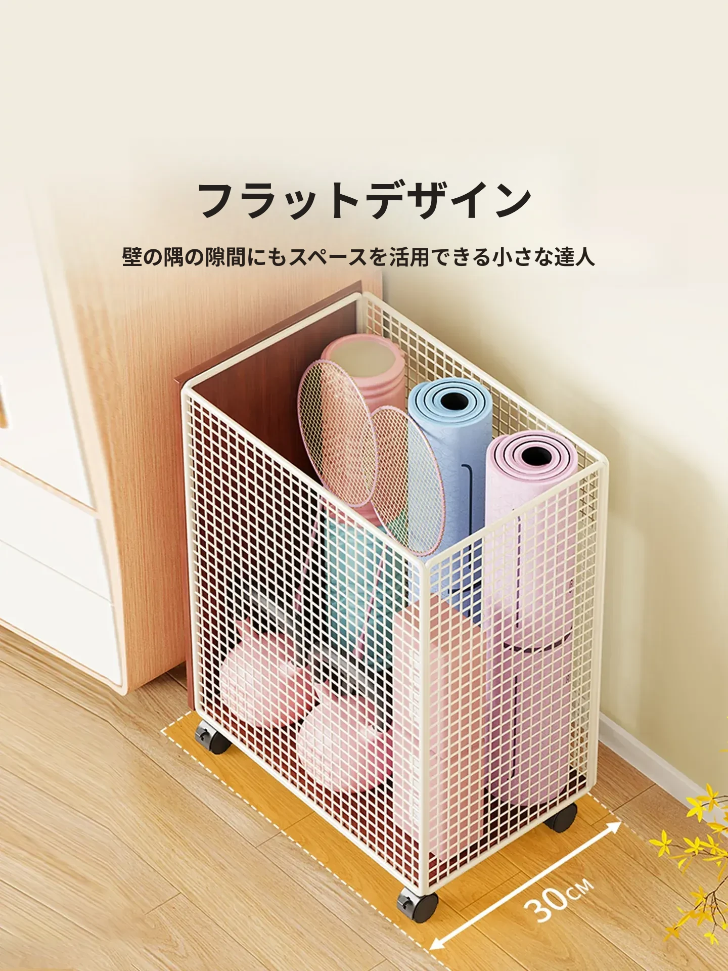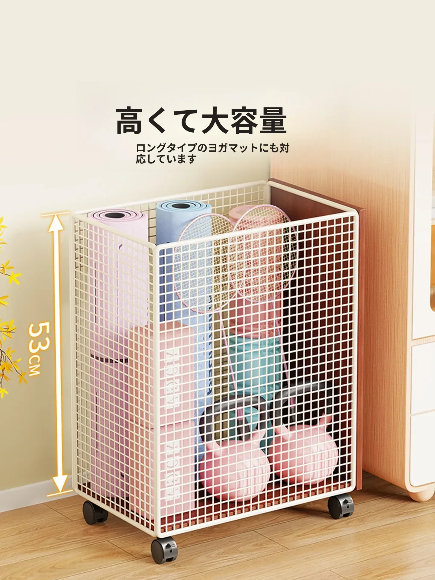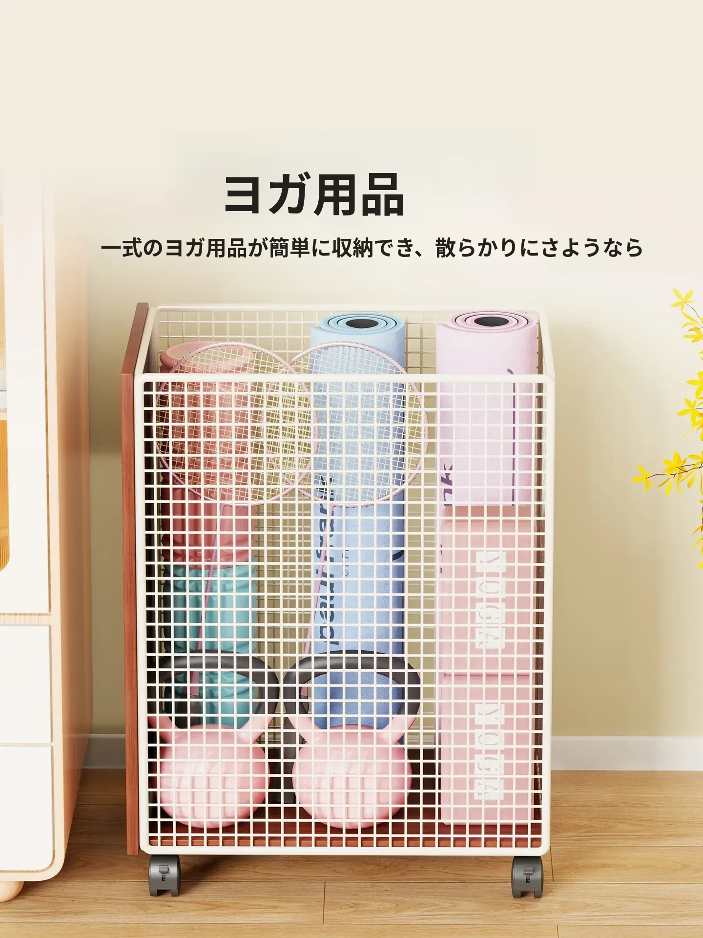 フィットネス器具収納便利カート!キャスター付き、ヨガマット収納バスケット、大容量スポーツツールラックで、あなたのトレーニングスペースをスッキリ整理!
