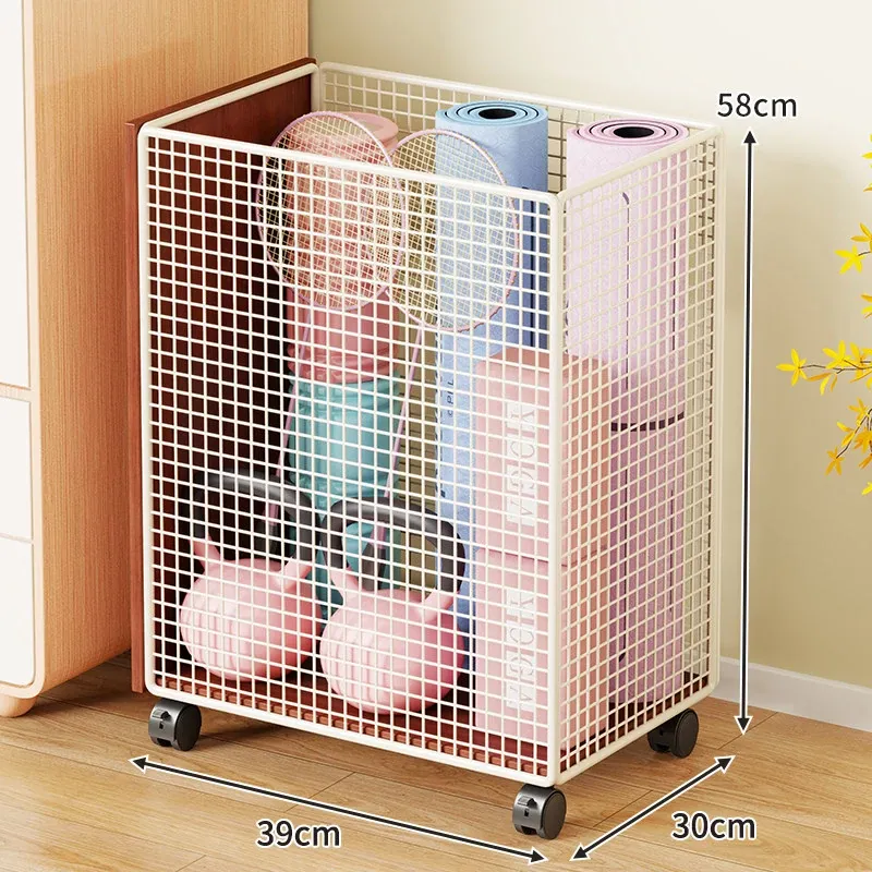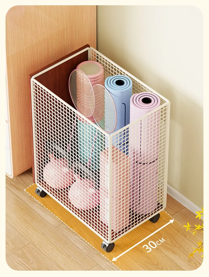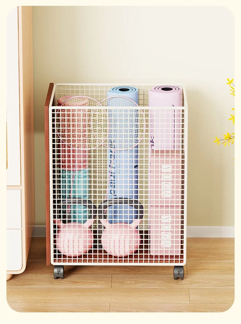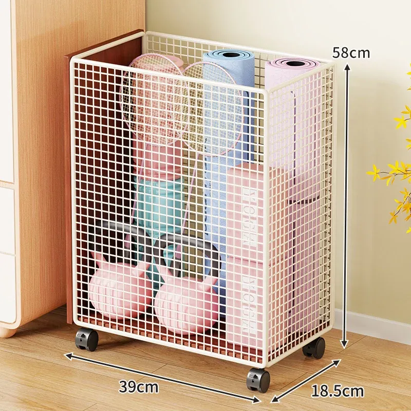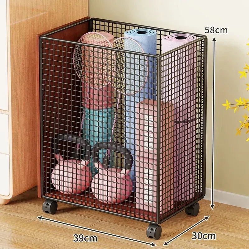 フィットネス器具収納便利カート!キャスター付き、ヨガマット収納バスケット、大容量スポーツツールラックで、あなたのトレーニングスペースをスッキリ整理!