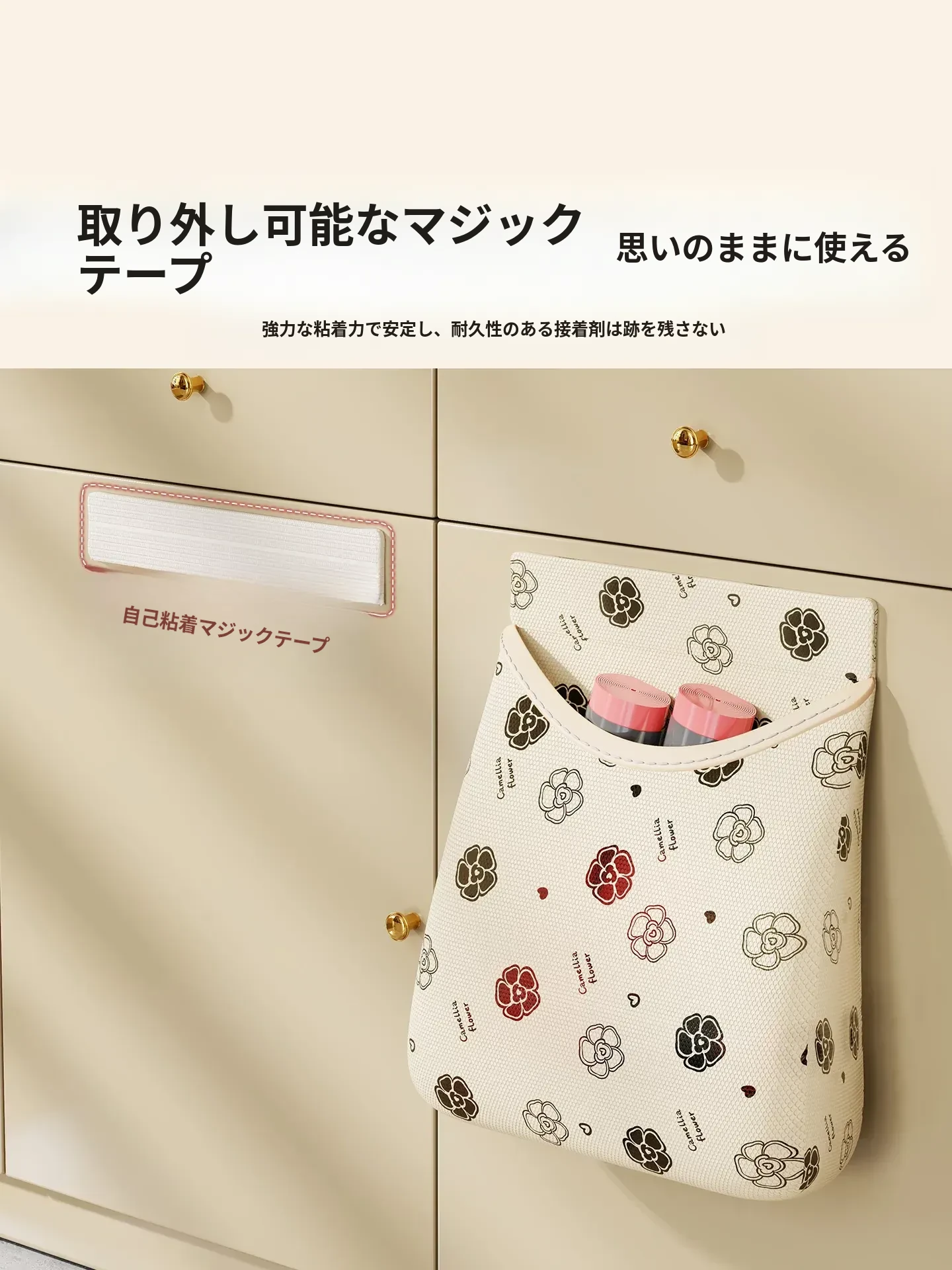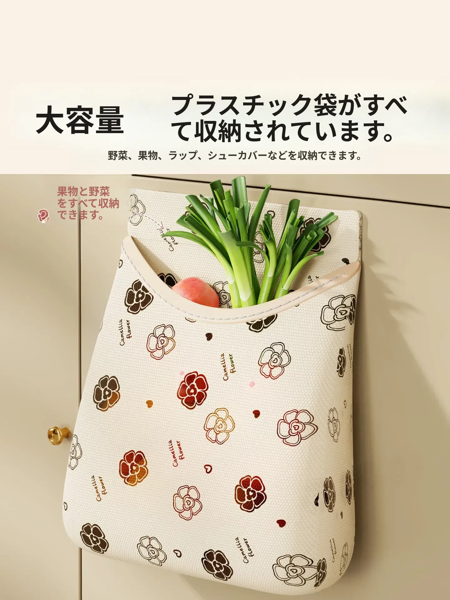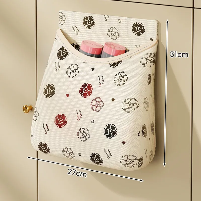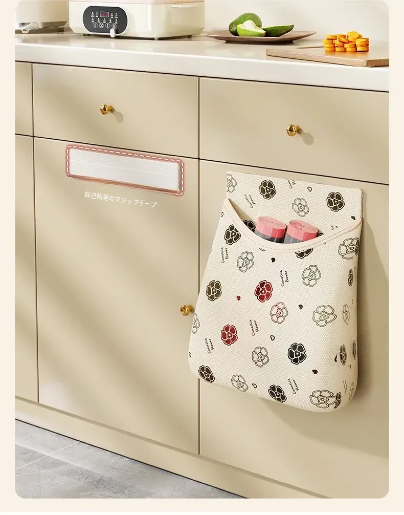 ゴミ袋収納ボックス マジックテープ付きネットポケット 壁掛けキッチンキャビネットドア用 大容量プラスチック袋ストレージ神アイテム!整理整頓を簡単にし、スペースを有効活用!