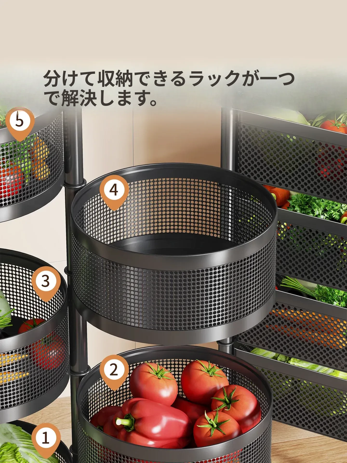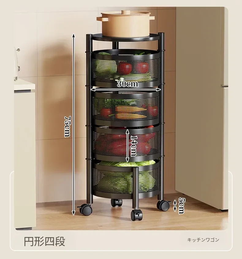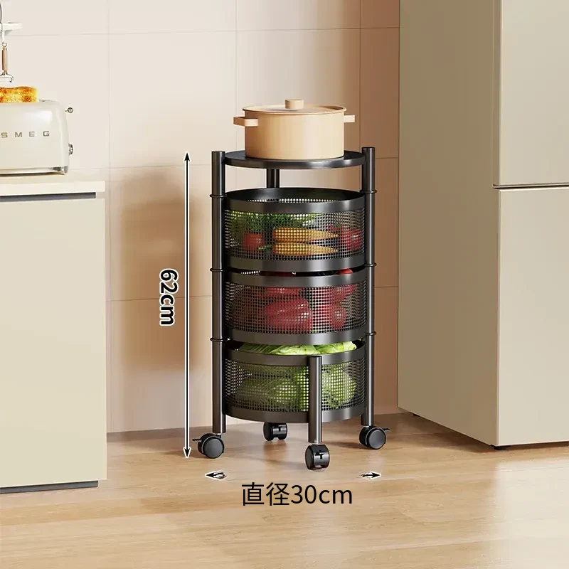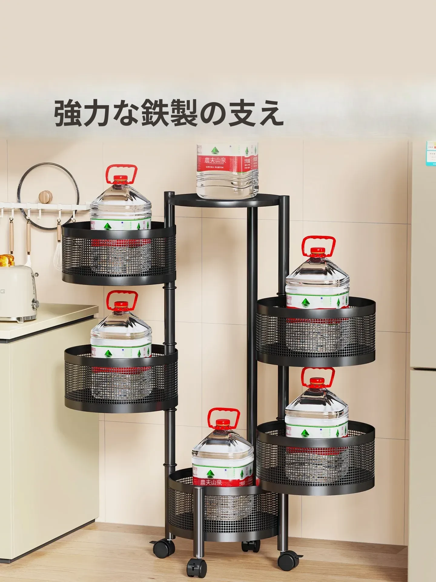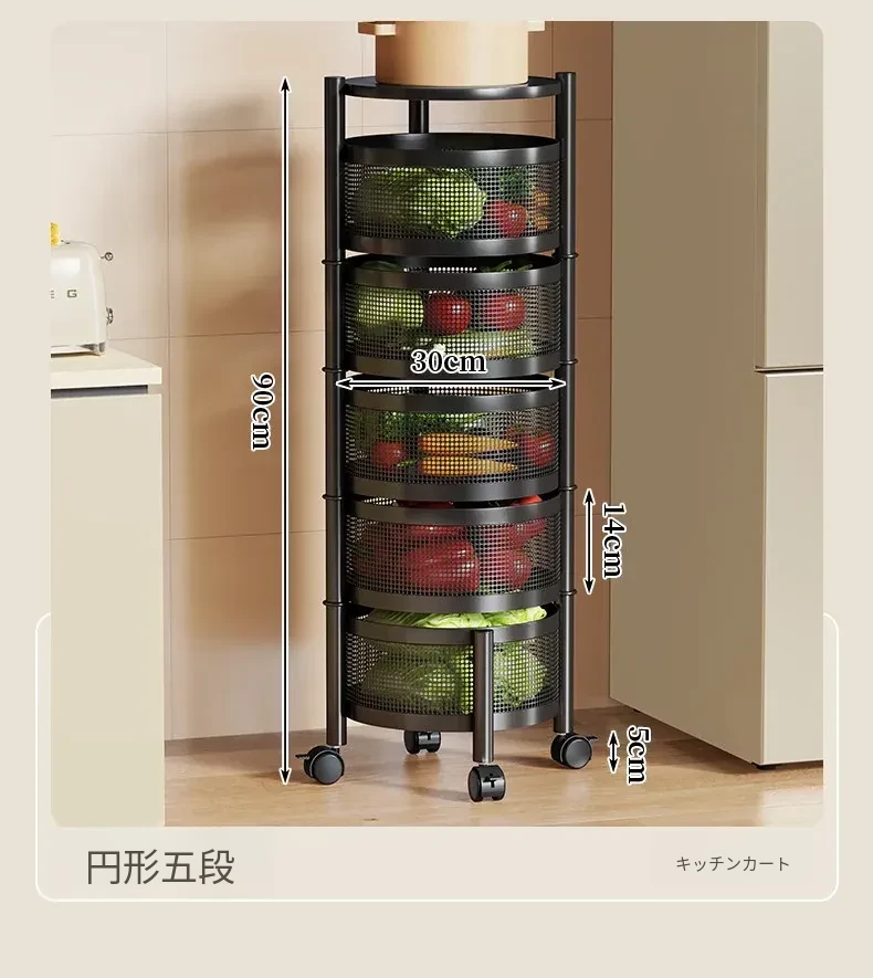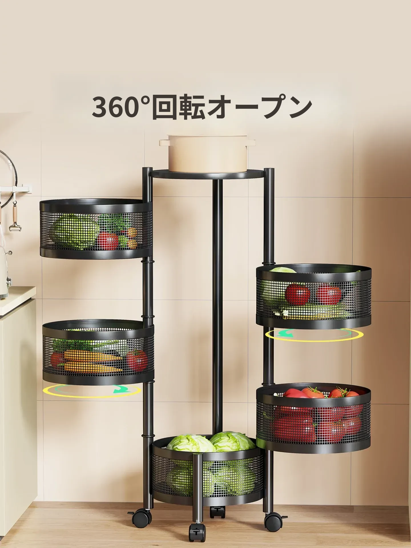 キッチン回転式収納ラック 移動可能な多層フルーツ・野菜トロリー 家庭用マルチ機能ストレージラックで、効率的にスペースを活用!