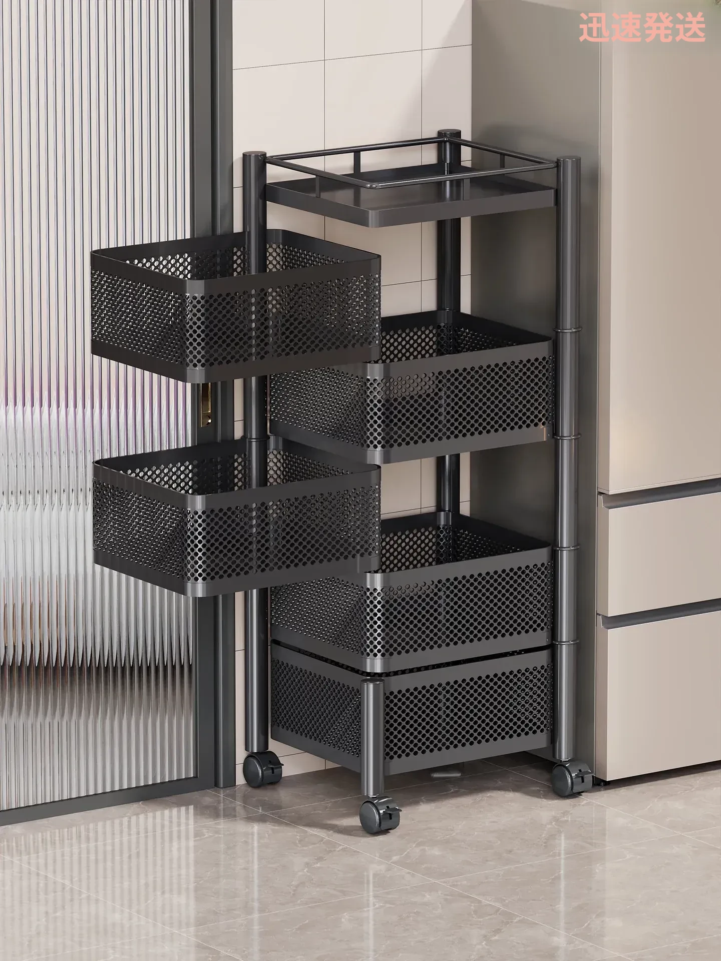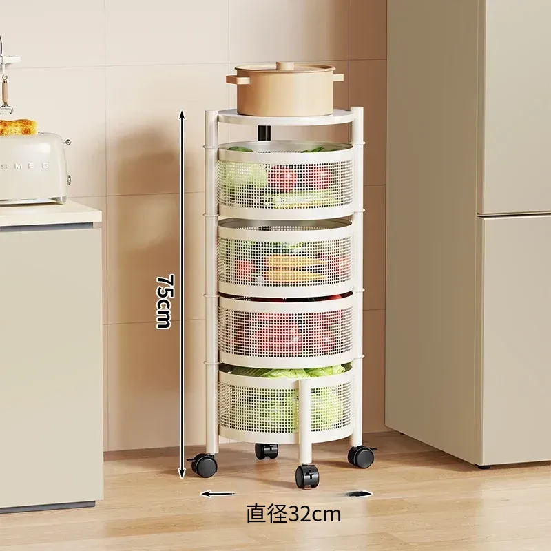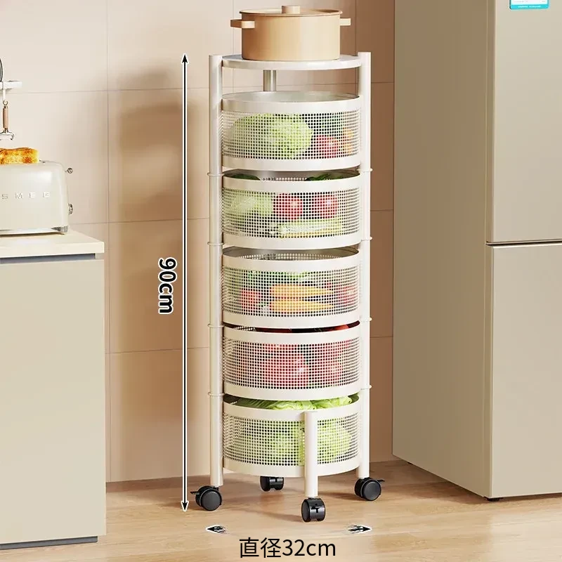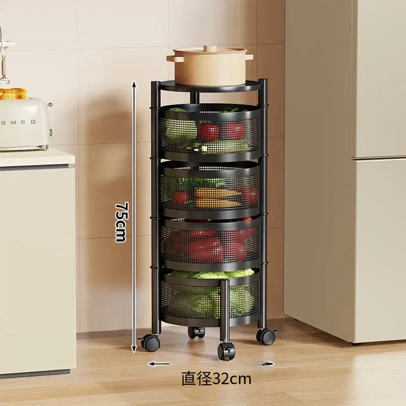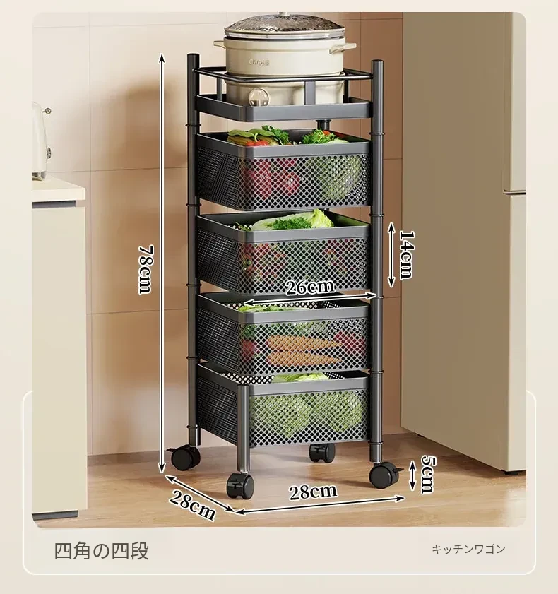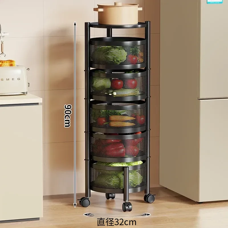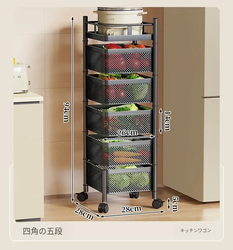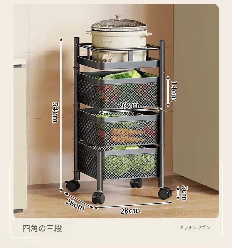 キッチン回転式収納ラック 移動可能な多層フルーツ・野菜トロリー 家庭用マルチ機能ストレージラックで、効率的にスペースを活用!