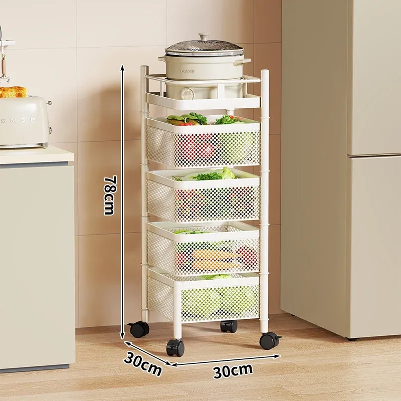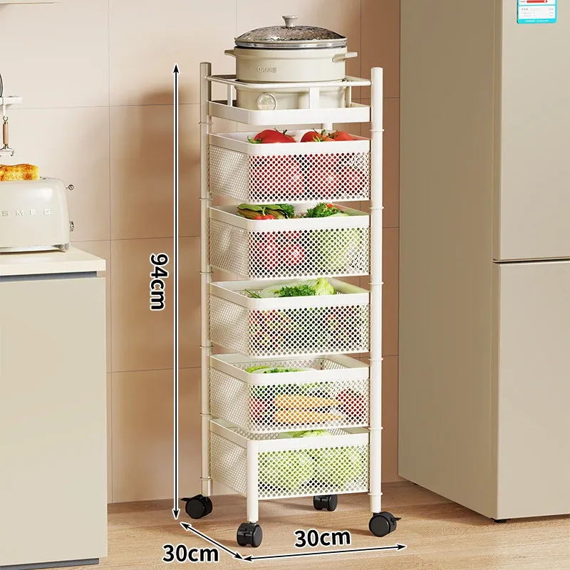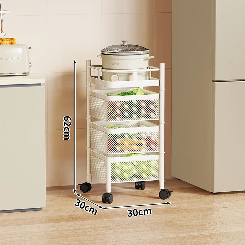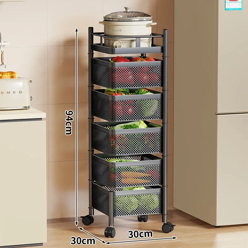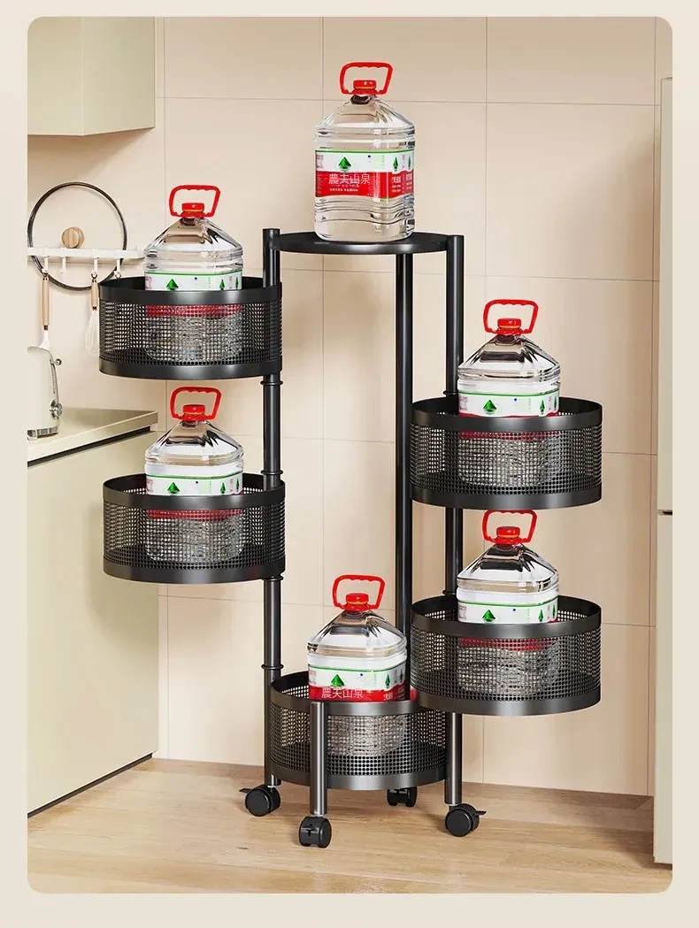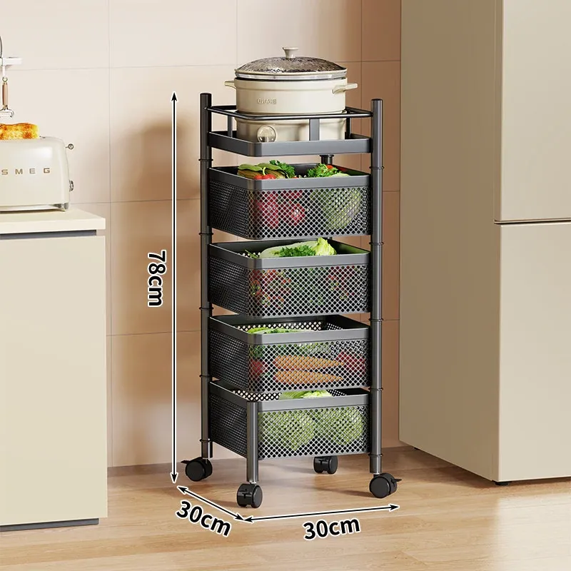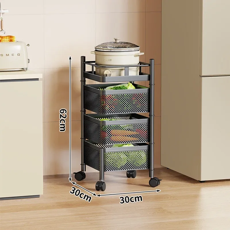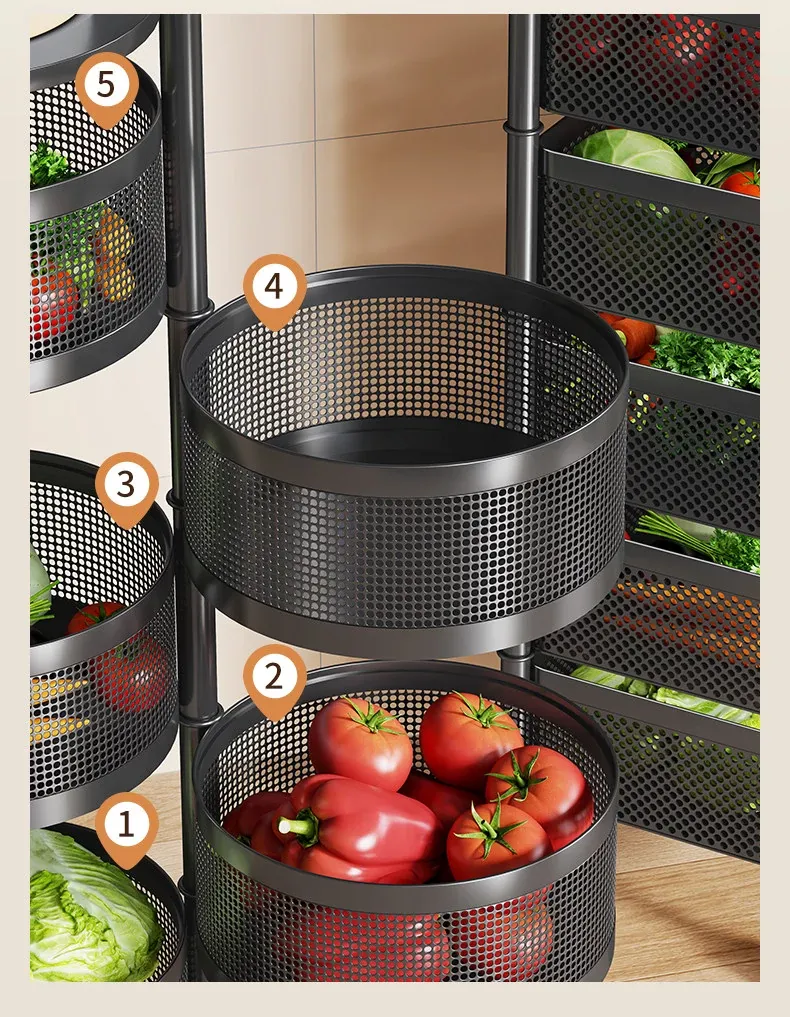 キッチン回転式収納ラック 移動可能な多層フルーツ・野菜トロリー 家庭用マルチ機能ストレージラックで、効率的にスペースを活用!